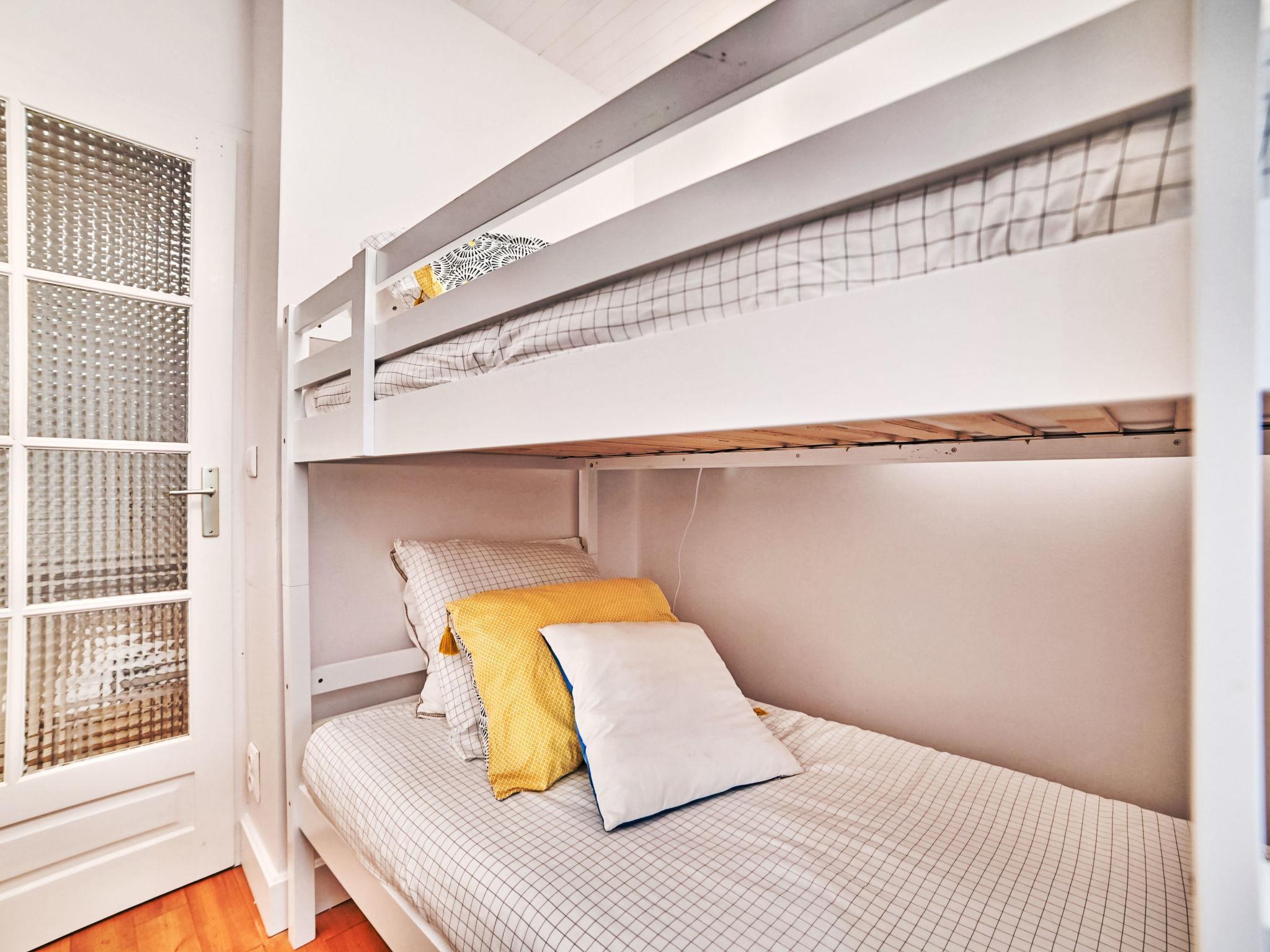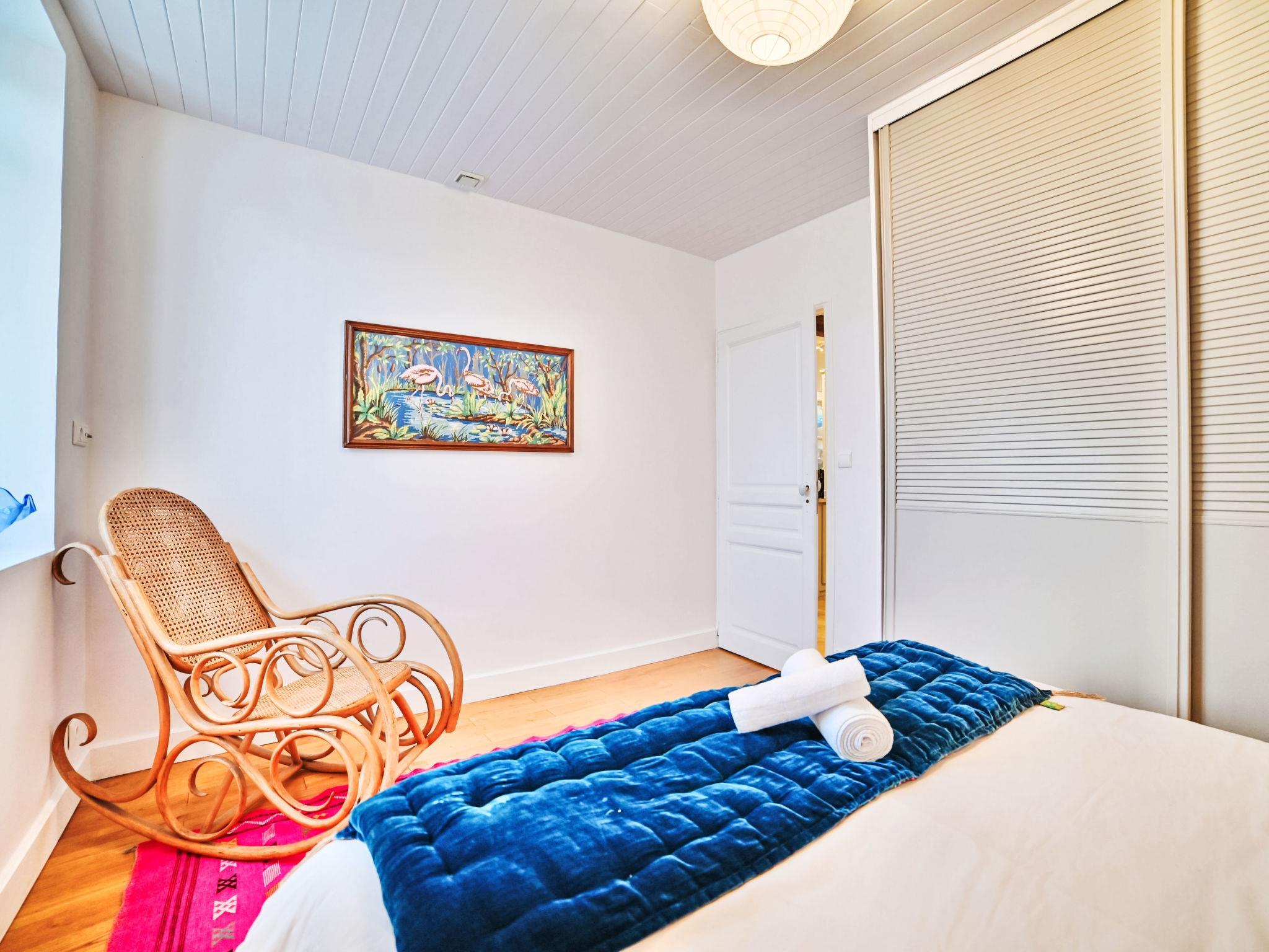 4-room terraced house. Comfortable and beautiful furnishings: living/dining room. Exit to the garden. 1 room with 1 french bed (160 cm, length 200 cm). 1 room with 1 french bed (140 cm, length 190 cm). 1 children's room with 1 x 1 bunk beds (80 cm, length 190 cm). Open kitchen (4 hot plates, oven, toaster, kettle, microwave, electric coffee machine, cooking island). Bathroom, sep. WC. Electric heating. Small terrace. Terrace furniture, barbecue, deck chairs. Facilities: washing machine, hair dryer. Internet (WiFi, free). Parking (roofed, 1 car). Please note: non-smoking house. Smoke alarm. Offer by a private individual according to Art. 155, IV of CGI. 173370010426B