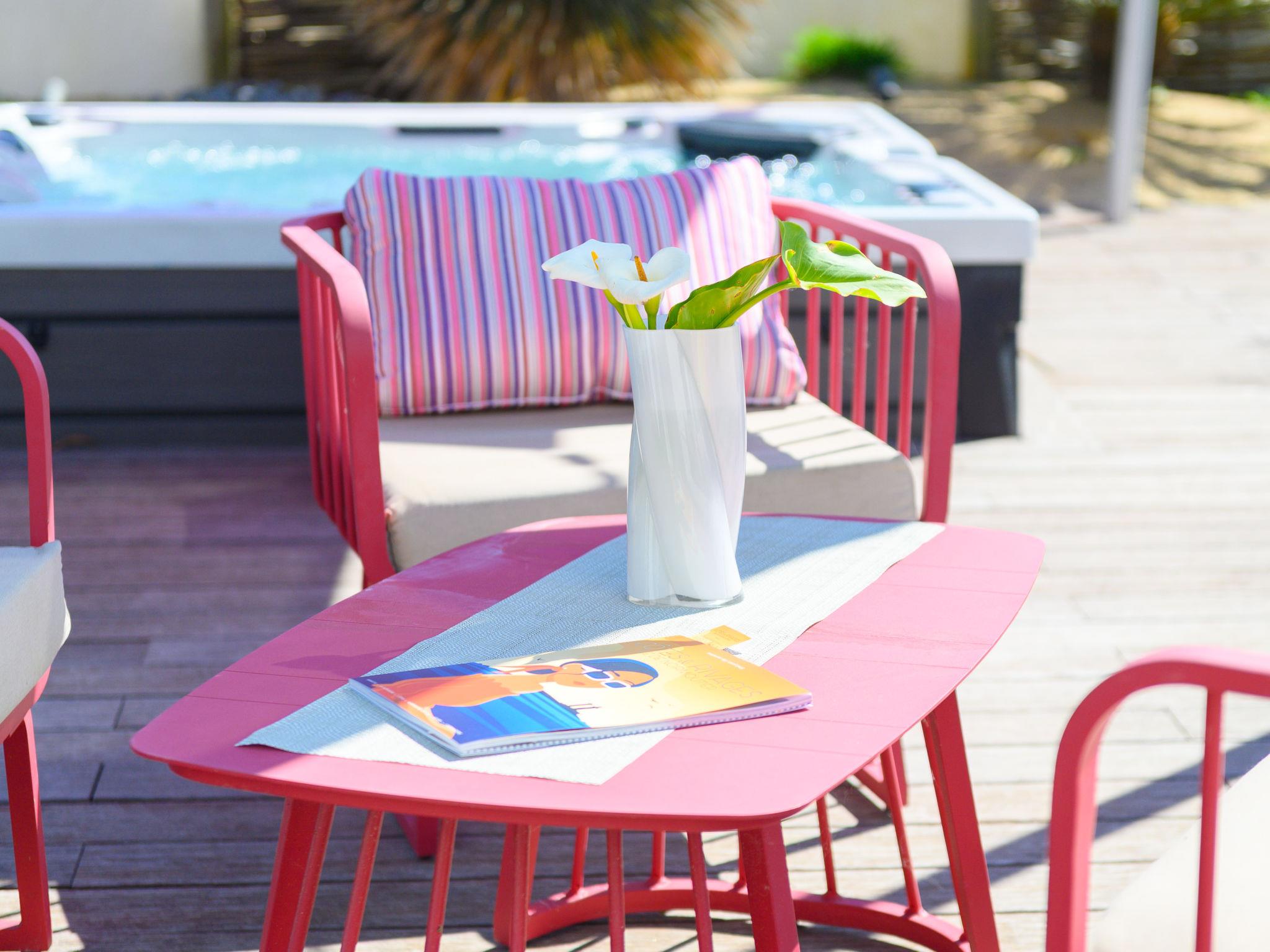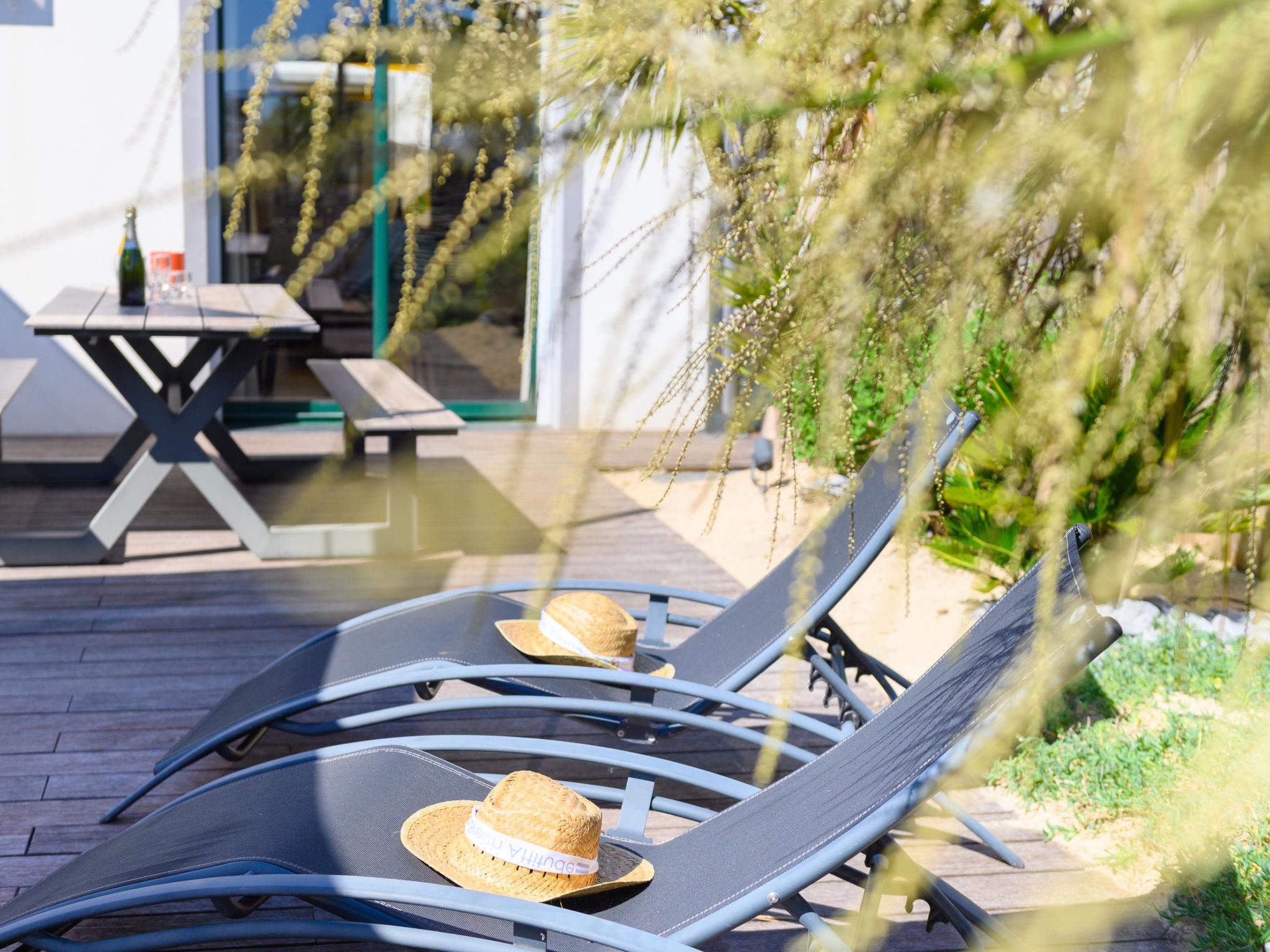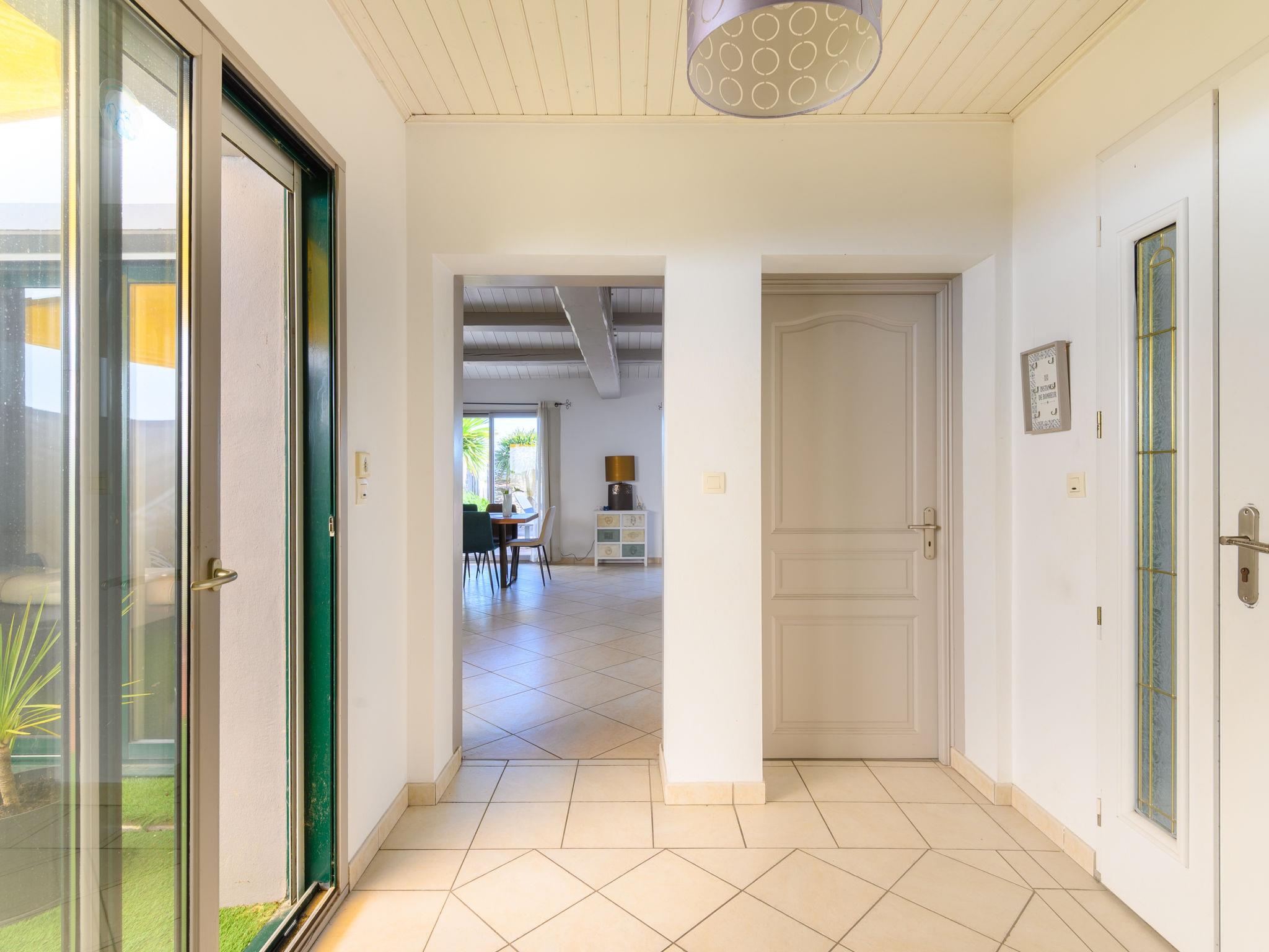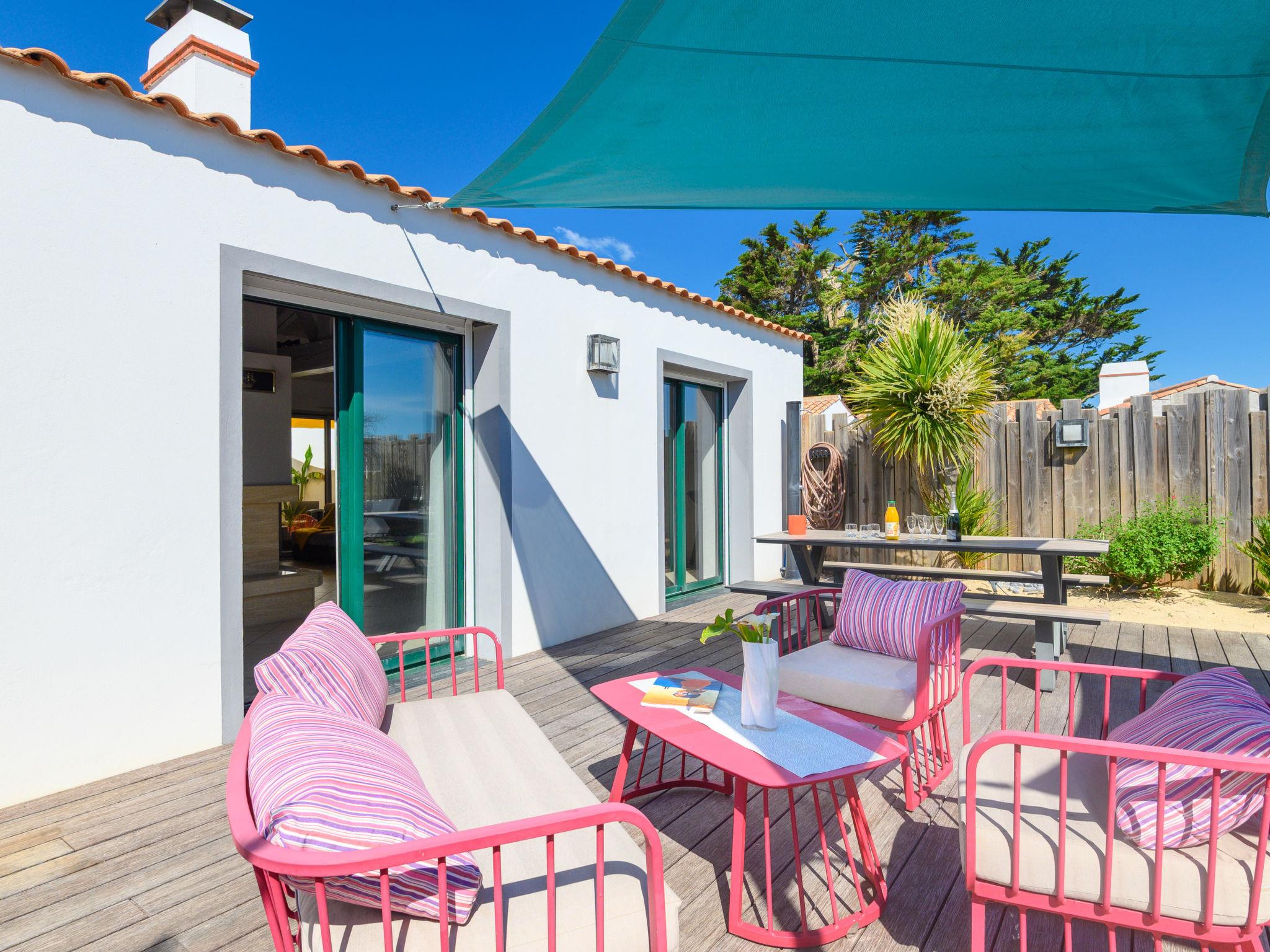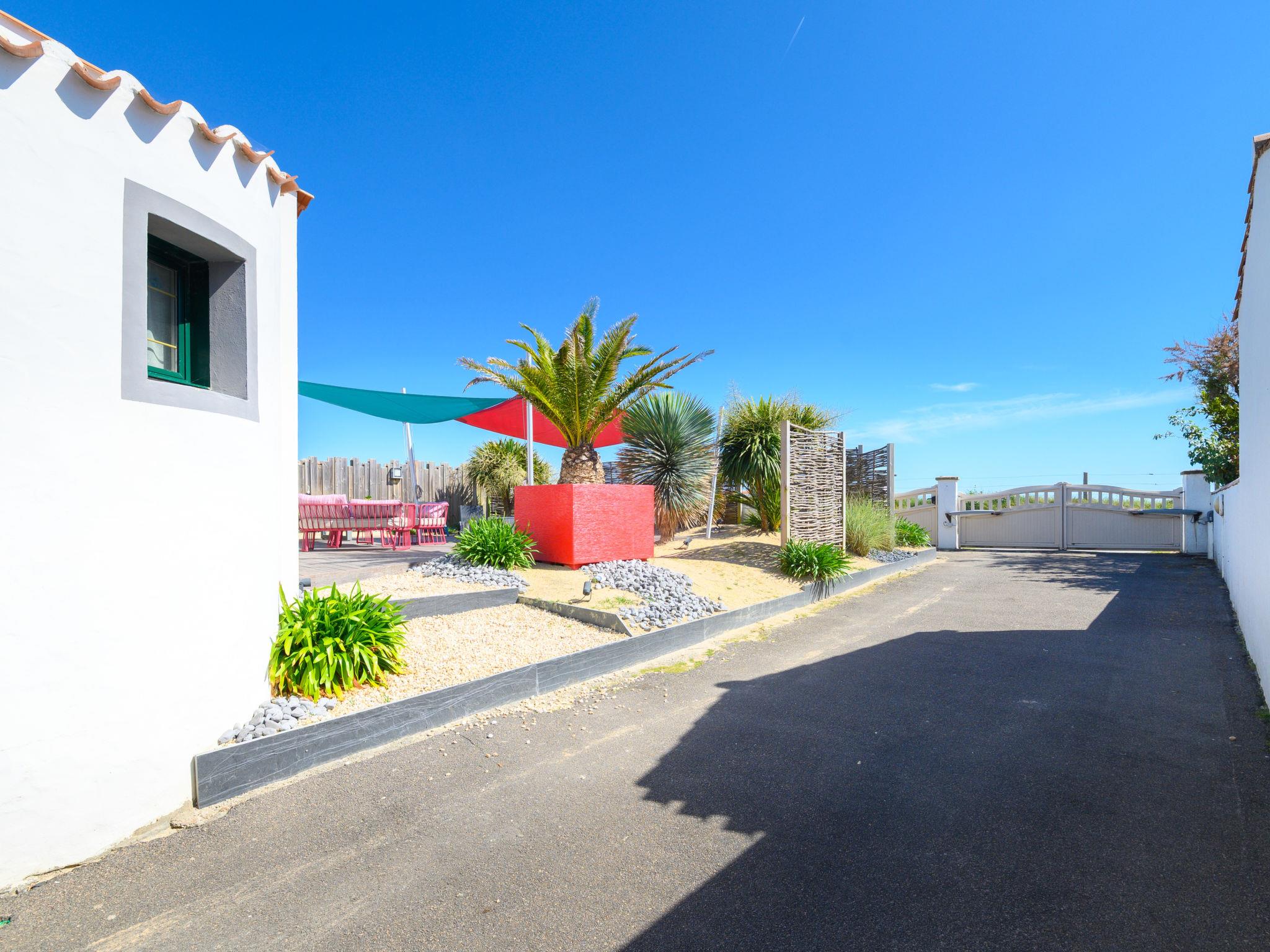 Large, modern house "Confort et Relax Ile de Noirmoutier". 200 m from the centre of La Guérinière, 5 km from the centre of Noirmoutier-en-L'Ile, 30 m from the sea, 10 m from the beach, in a cul-de-sac. Private: property 660 m2 (fenced). Outdoor shower, hot tub, planted inner courtyard parking (for 4 cars). E-charging station. Restaurant 400 m, bus stop "RP de l'Europe, La Guérinière" 1 km, sandy beach "Plage" 30 m. Sailing school 2 km, tennis 2 km. Nearby attractions: Les Moulins de la Cour 500 m, Marais Salants-Port Ostréicole 2 km, Port Morin 6 km, Bois de la Chaise 9 km, Port de l'Herbaudière 10 km, Le Gois 10 km. Hiking paths: sentiers balisés 10 m. Residence with electric gates.