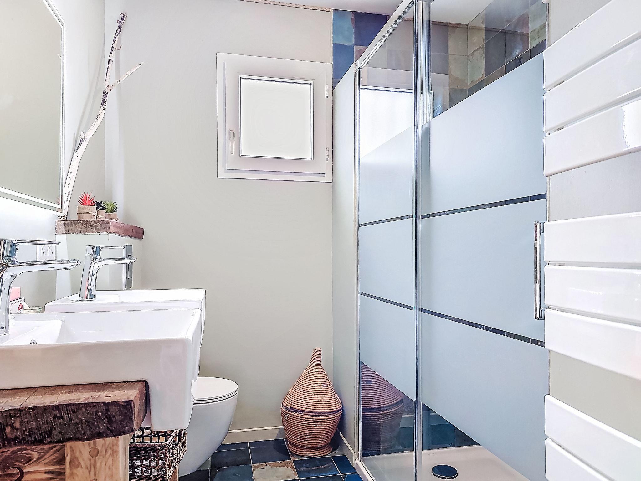 "La Bosse XL (Villa + Dépendance)", 6-room house 135 m2. Beautiful furnishings: large living/dining room with open-hearth fireplace and TV (flat screen). Exit to the terrace. Small living/sleeping room, window onto the courtyard with 1 sofabed (140 cm, length 190 cm), kitchen corner and TV (flat screen). Exit to the terrace. 1 room with 1 french bed (160 cm, length 200 cm) with 2 x 2 bunk beds (90 cm, length 190 cm). 1 room, window onto the courtyard with 2 beds (80 cm, length 200 cm). Open kitchen (oven, dishwasher, 4 induction hot plates, toaster, kettle, microwave, electric coffee machine). Shower, shower/WC, 2 sep. WC's. Upper floor: (steep stair), 1 open room with sloping ceilings with 2 beds (90 cm, length 190 cm). Electric heating. Terrace, south facing position terrace, north facing position. Terrace furniture, barbecue. Facilities: washing machine, baby cot for up to 2 year olds. Internet (WiFi, free). Please note: non-smoking house. Maximum 3 pets/ dogs allowed. Smoke alarm. No internal connecting door between the separated properties. Description of outbuilding (rooms overlooking courtyard): living room, kitchen, bedroom, shower, WC. Bed layout is flexible. There are more sleeping options available than the maximum number of people allowed which may, however, not be exceeded. Offer by a private individual according to Art. 155, IV of CGI. 85083000193AD