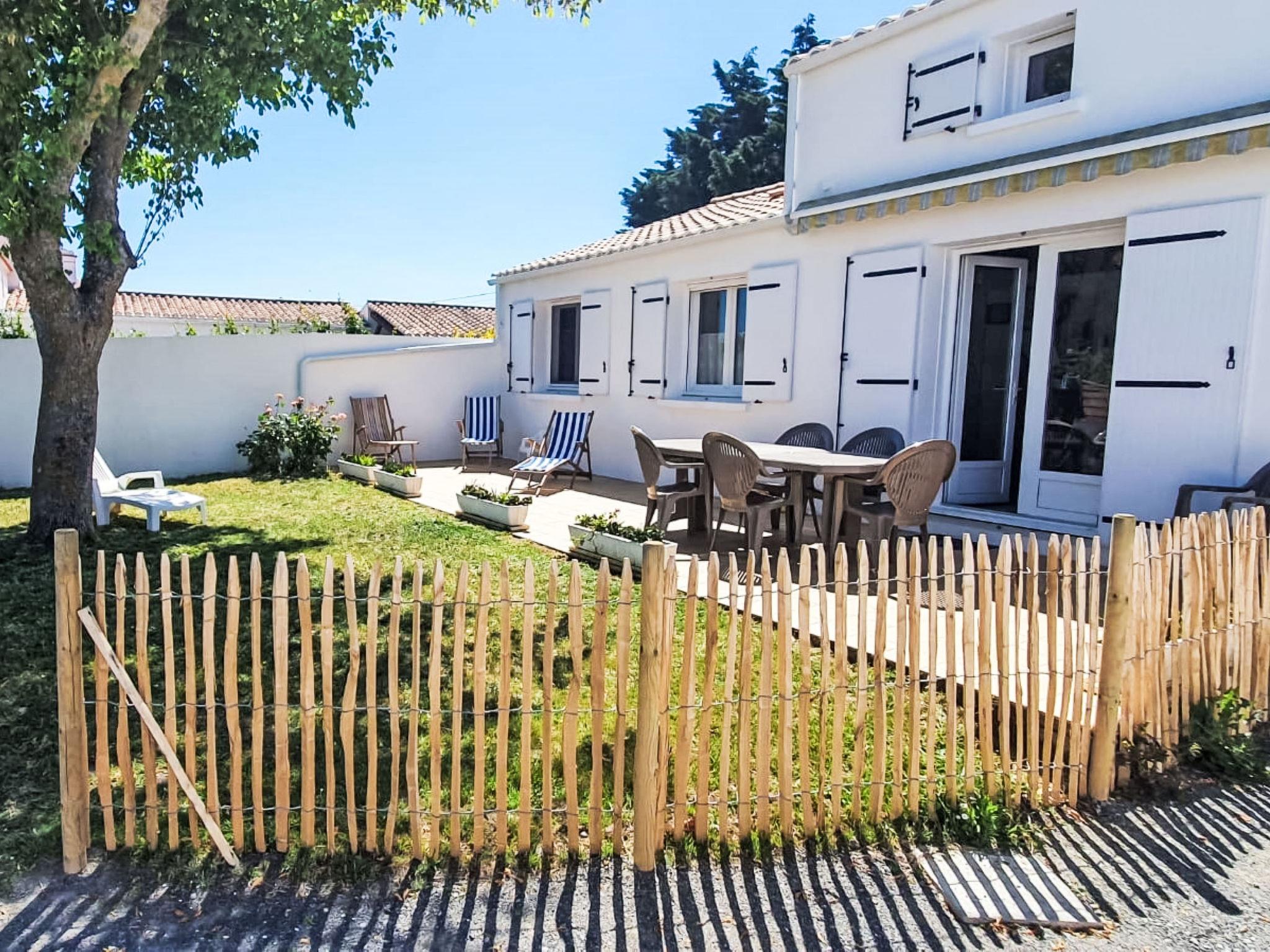 L'Epine-Noirmoutier: House "La Bosse (Villa + Dépendance)". 1.7 km from the centre of L'Epine, 5 km from the centre of Noirmoutier-en-L'Ile, 400 m from the edge of the forest, 630 m from the sea, 630 m from the beach, in a cul-de-sac. Private: property 870 m2 (fenced) with lawn, beautiful garden to relax. Terrace (60 m2), parking (for 3 cars). Shop 1.7 km, bar 200 m, bus stop "RP de l'Europe, La Guérinière" 4.8 km, sandy beach "de la Bosse" 630 m. Sports harbour, sailing school 800 m. Nearby attractions: Marais Salants de l'île de Noirmoutier 500 m, La Guérinière 5 km, Port de l'Herbaudière 6 km, Bois de la Chaize 8 km, Le Gois 13 km, Challans 40 km.