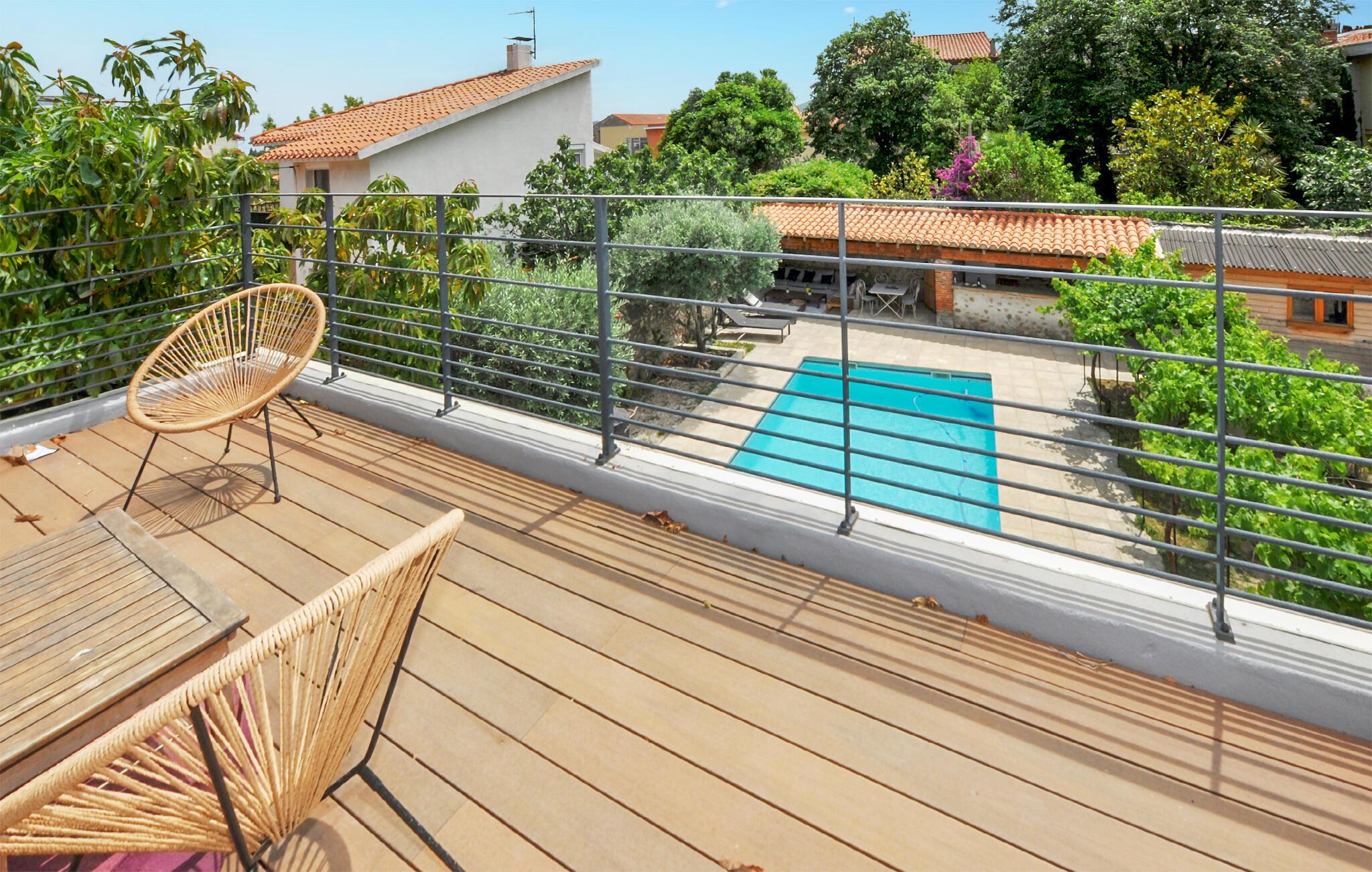 Lad jer inspirere af dette moderne, stilfulde feriehus i Ille-sur-Tet. Feriehuset er det optimale sted til et afslappende ophold med familie eller venner. Slap af ved den private pool, som er omgivet af en smuk have og nyd solen på de komfortable liggestole. Det rummelige udendørsområde byder også på en overdækket terrasse, hvor I kan sidde med jeres måltider under åben himmel. Tag plads ved spisebordet og lad blikket vandre over det velholdte poolområde. Tilbring hyggelige grillaftener her på varme dage.