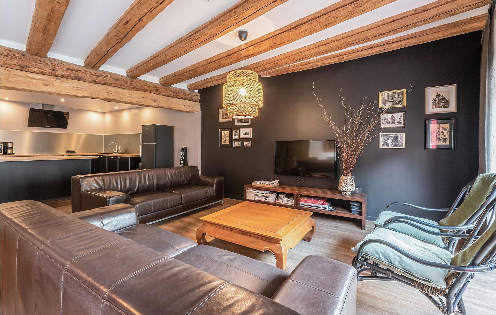 Denne feriebolig i Ingersheim, Alsace, er et charmerende vinbondehus fra det 16. århundrede. Fordelt på tre niveauer udstråler det karakter med stenvægge og synlige bjælker suppleret med moderne møbler. Stueetagen har et veludstyret åbent køkken med en central ø, en spiseplads med et stort træbord og et komfortabelt opholdsområde med udgang til terrassen med en privat swimmingpool. På første sal er der to soveværelser, mens det tredje soveværelse er på anden sal. Faciliteterne inkluderer gulvvarme i stueetagen, radiatorer på de øverste etager, en privat terrasse med spisemøbler, liggestole, en lille sikret swimmingpool, en gasgrill/plancha, en garage og en gårdhave med parkering. Huset kan prale af moderne bekvemmeligheder i rolige boligområder, men alligevel er det bekvemt tæt på byens centrum og butikker. Den lille private swimmingpool er sikret af et alarmsystem for sikkerhed. Huset ligger i et fredeligt boligområde i byen Ingersheim, i centrum af Alsace, tæt på Colmar og den berømte vinrute.