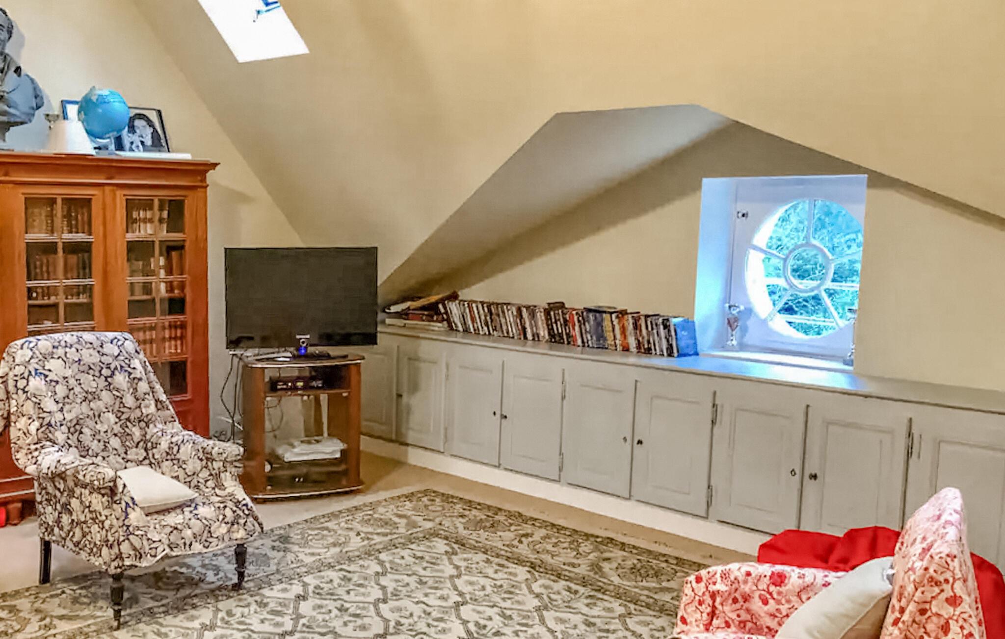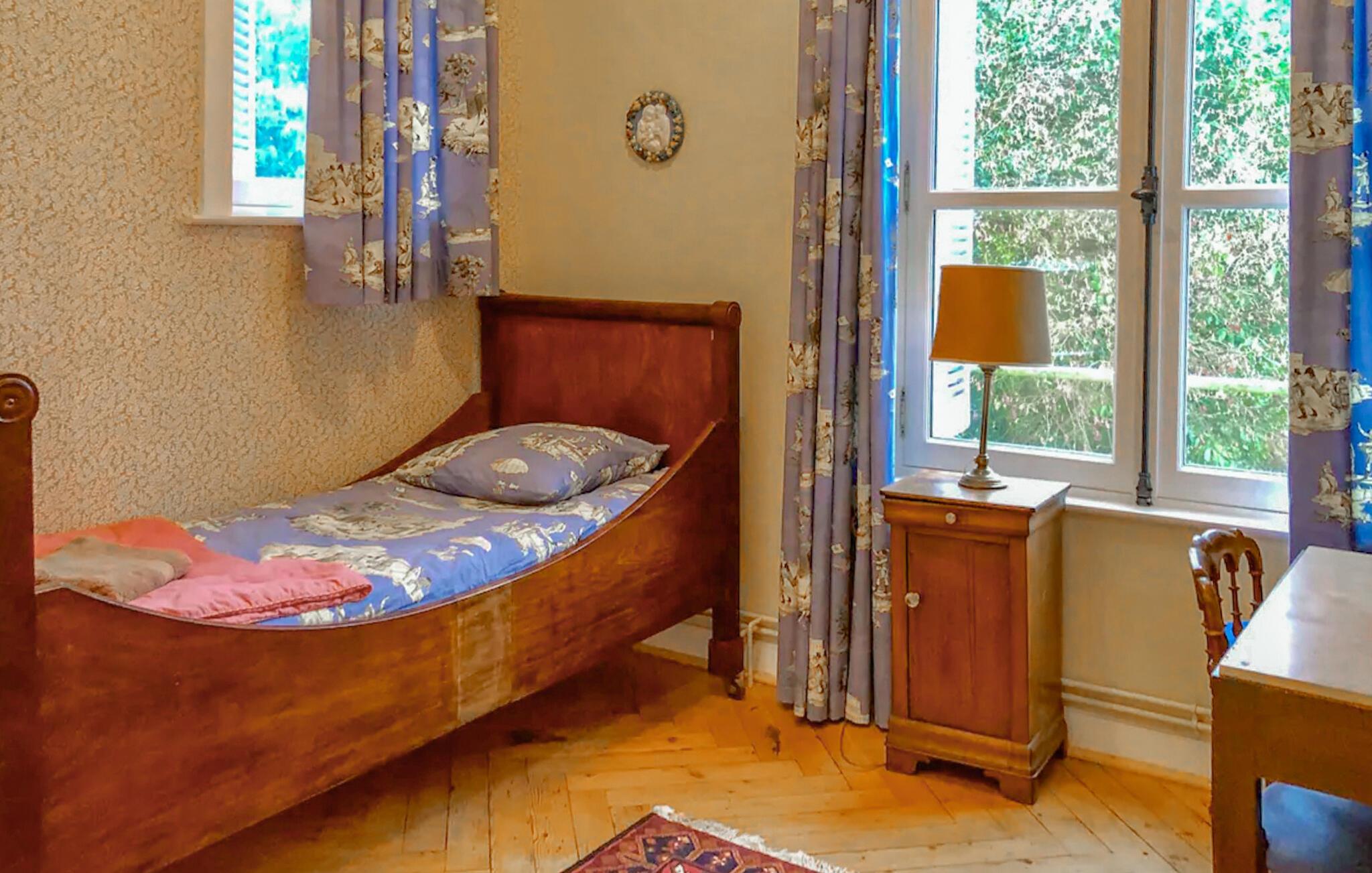 Lad jer fortrylle af det historiske miljø i denne kærligt restaurerede ejendom fra det 17. århundrede. Træd indenfor og mærk den unikke atmosfære, skabt af elegante træpaneler, kunstfærdigt dekorerede vægge og den storslåede pejs. Nyd hyggelige aftener i den stilfulde stue, prøv kræfter med franske opskrifter i det rummelige landkøkken, og afslut dagen med et glas vin i den imponerende spisestue.