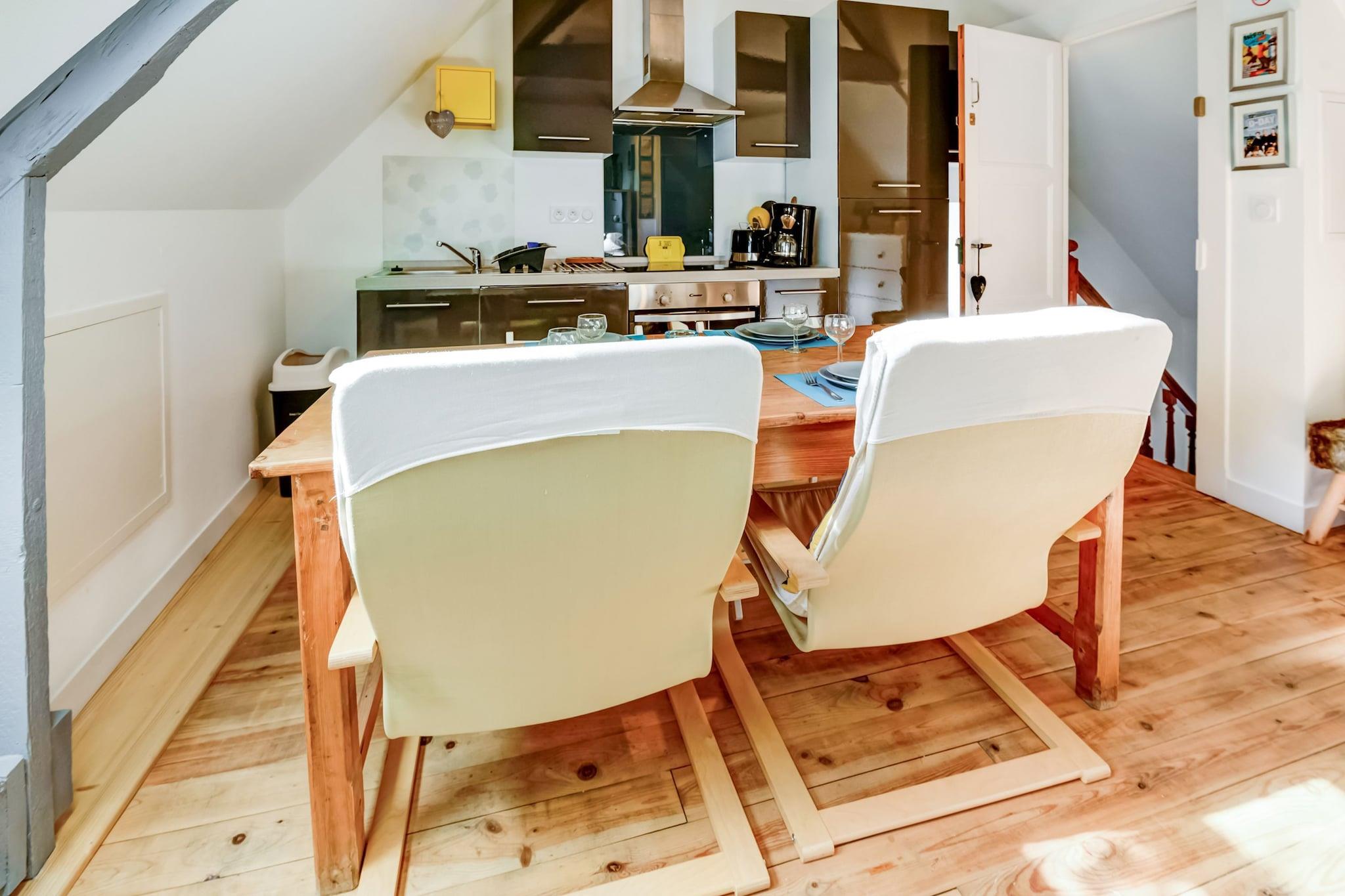 Forkæl dig selv og din partner med et fredeligt tilflugtssted i denne charmerende lejlighed for to i Isigny-sur-Mer. Beliggende nær havet og parken Cotentin og Bessin Marshes, tilbyder det rolige omgivelser, hvor morgenen begynder med fuglesang og bløde brise. Det smagfuldt indrettede interiør sikrer privatliv og komfort, mens terrassen indbyder til romantiske grillmiddage under stjernerne. Beliggende kun 300 meter fra lokale restauranter og ud mod havnen, er denne lejlighed en perfekt base for at udforske Normandiets rige historie og naturlige skønhed. Besøg den berømte karamelfabrik, slentre til søstranden for en picnic, eller oplev de nærliggende D-Day-landingssteder og Parc des Marais. Ridning og en offentlig pool er også inden for rækkevidde. Indenfor finder du et hyggeligt opholdsrum med et veludstyret køkken og fredelige sovepladser. Der er gratis parkering på gaden, og der kræves et depositum på 200 EURO på stedet. Gæster bedes venligst fjerne sengetøj og bortskaffe affald inden afgang. Caen - Carpiquet Lufthavn ligger kun 57,4 km væk, hvilket gør denne romantiske ferie let tilgængelig.