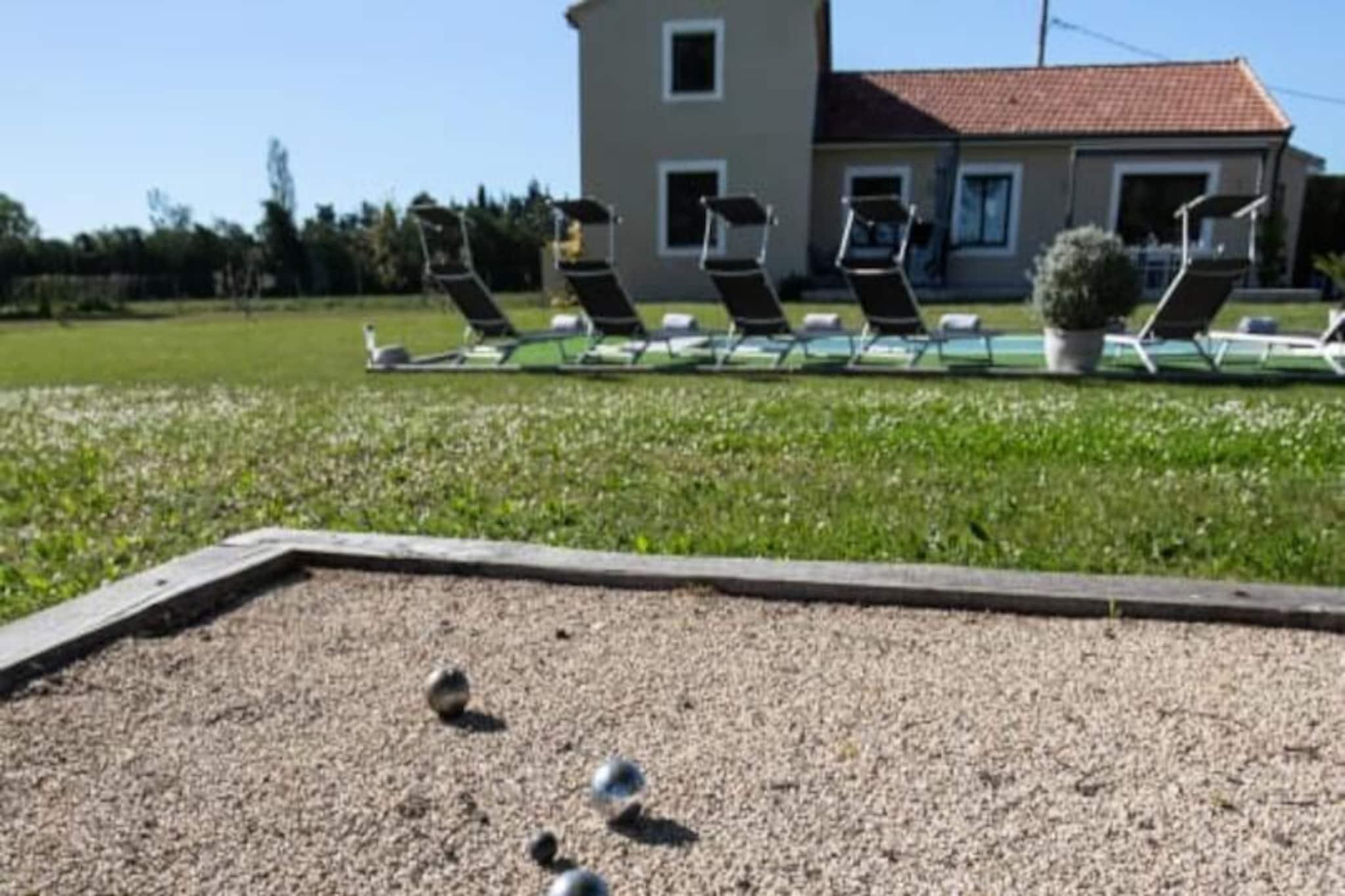 Dette renoverede moderne feriehus tilbyder et afslappende ophold i Provence, perfekt for op til otte g?ster. Ejendommen p? 150 m² omfatter fire sovev?relser og tre badev?relser, med to sovev?relser og to badev?relser bekvemt placeret i stueetagen for tilg?ngelighed. Et fuldt udstyret k?kken og en rummelig spise-/opholdsstue g?r den ideel til familie- eller gruppeophold. Hjemmet har en privat swimmingpool, grill, liggestole, et bordtennisbord og en bowlingbane, hvilket sikrer masser af udend?rs sjov. Sm? k?ledyr er velkomne. Ejendommen har en fredelig beliggenhed p? landet og kan prale af en fantastisk udsigt over ving?rdene og er en kort k?retur fra Provences must-see attraktioner. Isle-sur-la-Sorgue med dets livlige provencalske markeder og antikvitetsbutikker ligger kun f? minutter v?k, mens Fontaine-de-Vaucluse og de charmerende landsbyer p? en bakketop i Luberon ligger inden for 15 minutter. Alpilles-regionen og strandene ved den bl? kyst er let tilg?ngelige. Aktiviteter som kanosejlads, vinsmagning, vandreture og udforskning af Colorado Proven?al er i n?rheden. Yderligere faciliteter omfatter en 18-hullers golfbane og nem adgang til Isle-sur-la-Sorgues SNCF-station. Sene ankomster er tilg?ngelige mod et gebyr, og swimmingpoolen er ?ben fra maj til september. Et depositum p? EURO1.000 kr?ves 10 dage f?r ankomst via en sikker platform.