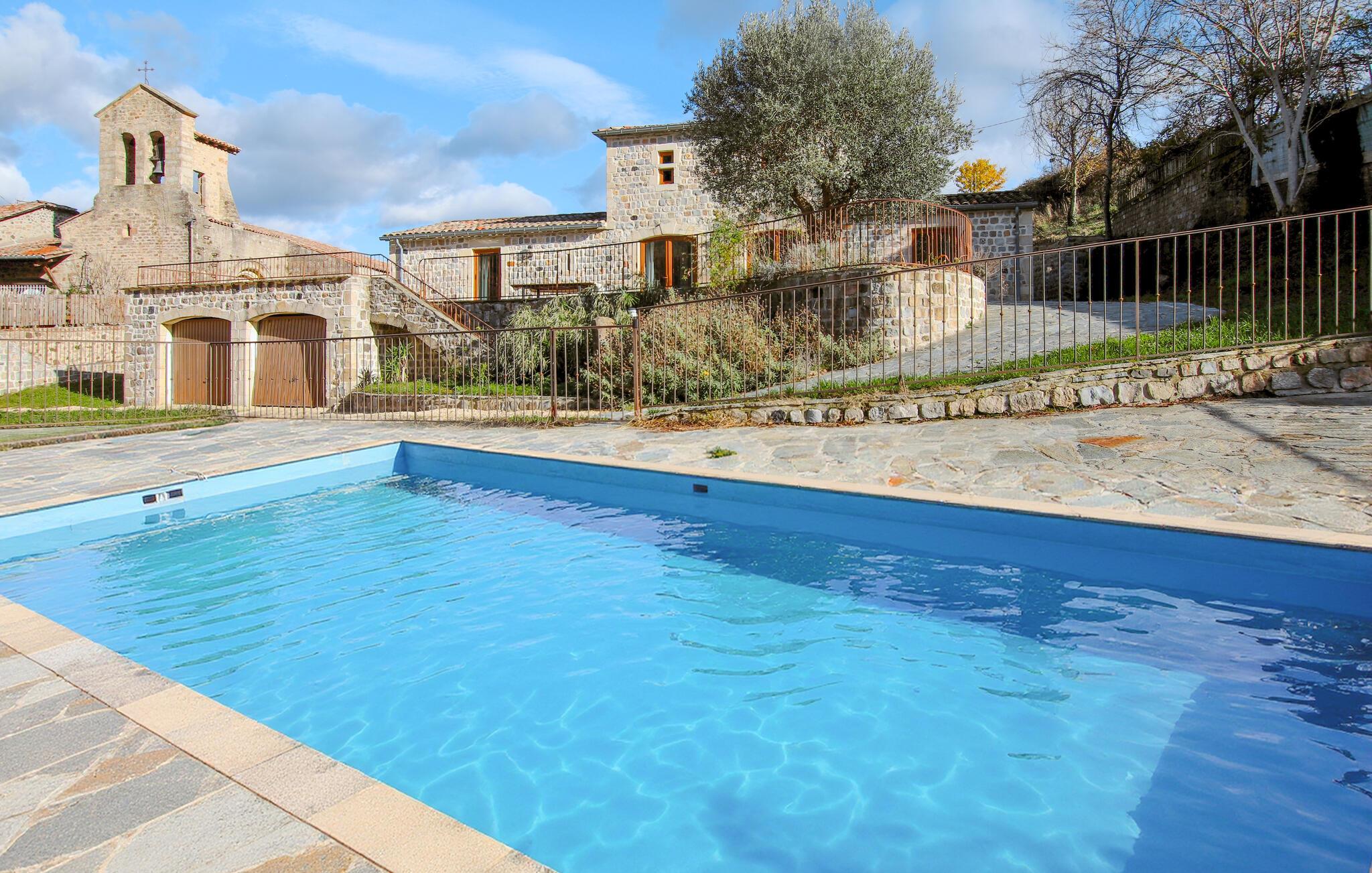 Forkæl jer selv med en uforglemmelig ferie i dette charmerende feriehus med pool, omgivet af naturen. Dette rummelige landsted byder jer velkommen med en rolig og behagelig atmosfære, hvor moderne elementer og et strejf af provencalsk stil smelter harmonisk sammen. Elegante materialer og omhyggeligt udvalgte detaljer giver huset en varm og sofistikeret atmosfære, der øjeblikkeligt skaber en følelse af velvære. Slap af med en espresso, lyt til jeres yndlingsmusik, og sæt jer blot i ferietilstand. Slap af ved poolen, eller svøm et par baner, inden I slapper af på en af liggestolene. Nyd morgenmaden i solskinnet, mens I kigger ud over skovene og de bølgende bakker. Om aftenen inviterer terrassen med den indbyggede grill jer til at nyde regionale specialiteter. Og når natten falder på, kan I fredeligt reflektere over dagen under den klare stjernehimmel. Udforsk regionen med de syv søer, hvis kastanjeskove og de imponerende Ardèche-kløfter er perfekte til vandreture og cykling. Oplev de nærliggende romanske kirker, de charmerende landsbyer Jaujac og Thueyts og de beroligende termiske bade i Neyrac-les-Bains og Vals-les-Bains. Ved foden af Tanargue-massivet venter et paradis for eventyrlystne, der lover uforglemmelige ferier med vandreture, klatring, kanosejlads og mange andre aktiviteter.