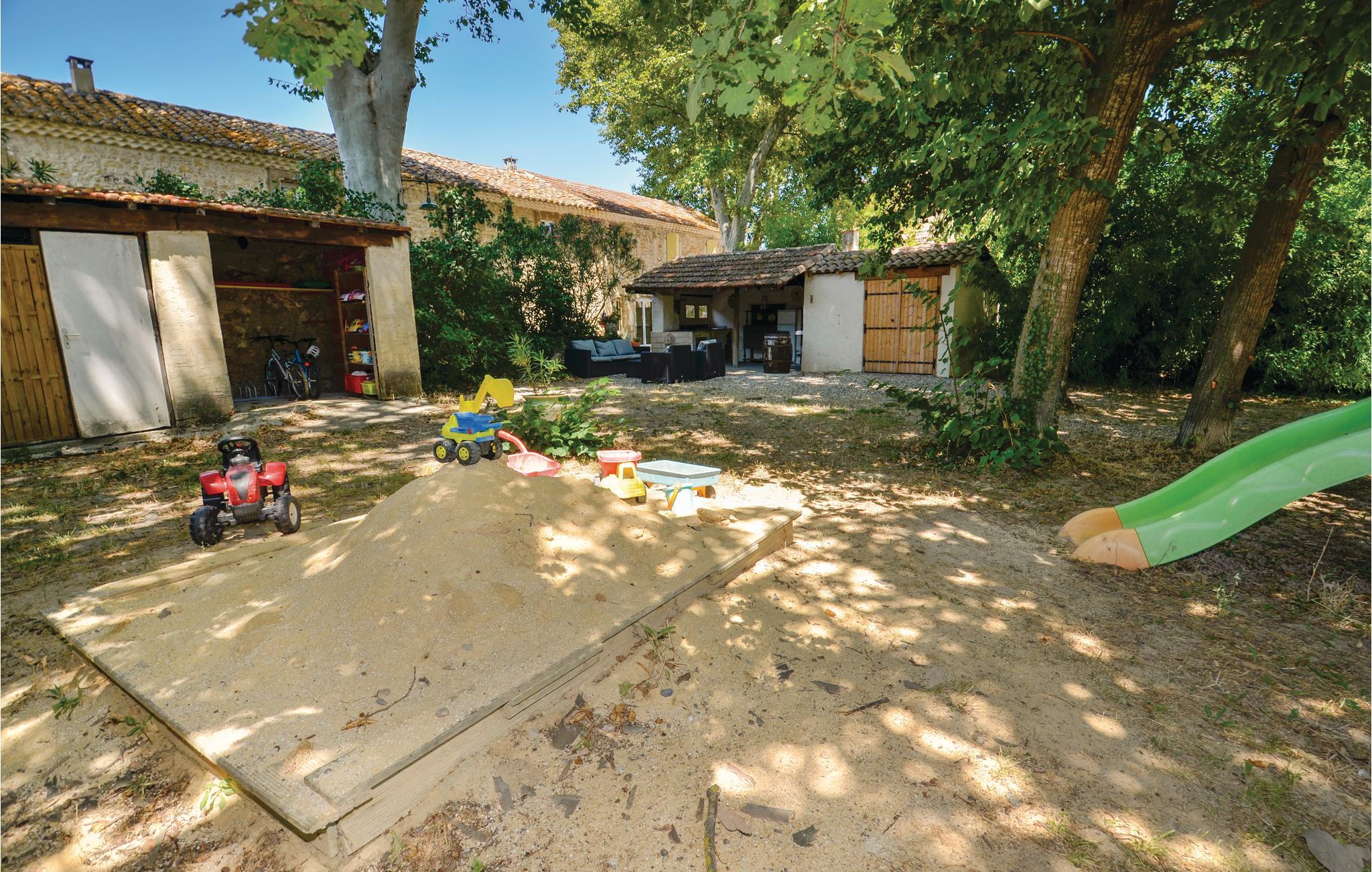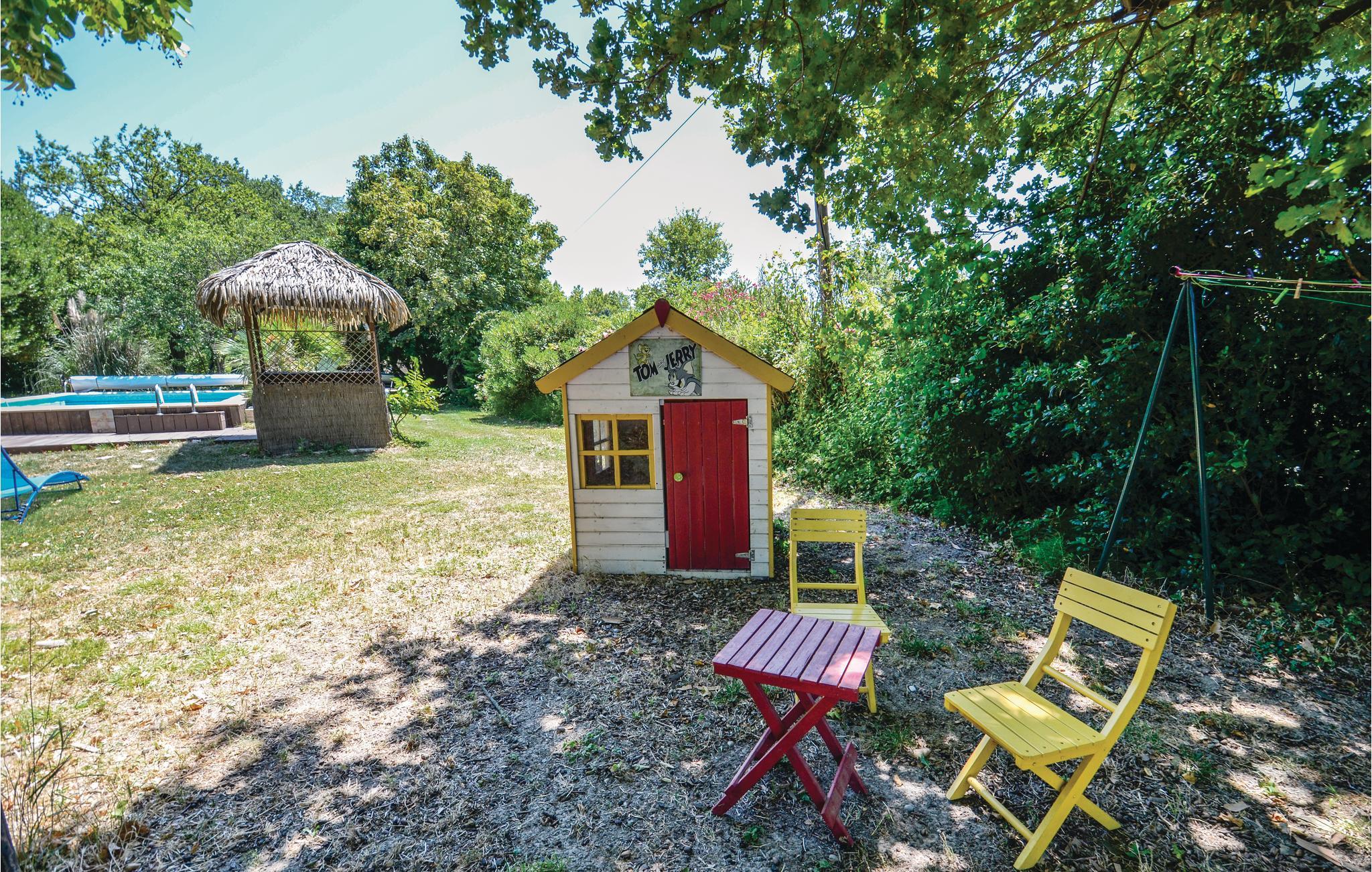 Feriehuset tilbyder også optimale betingelser for dejlige timer udendørs. Slap af med en bog ved poolen, nyd solen eller skyggen, som I ønsker, mens børnene (til hvem der også er cykler) leger sprudlende på den store grund ved floden og afslut dagen med kolde drikkevarer under åben himmel.