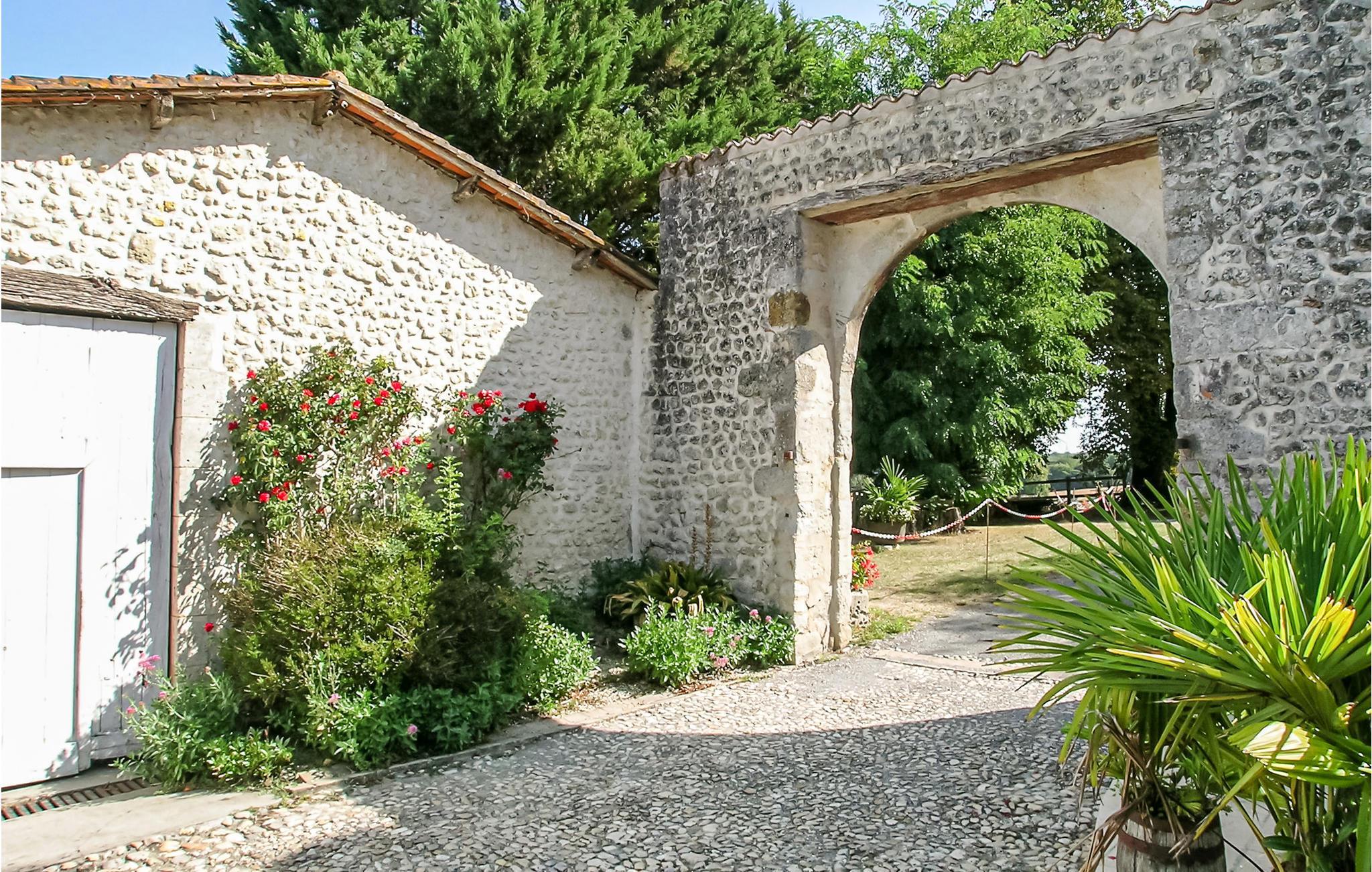 Et typisk bondehus med store rum og højt til loftet, fordelt på tre etager, med pyntepejs og mange frilagte loftsbjælker. Foran huset ligger en gård, bagved er en lukket have med græsplæner, med pool og patio og indbygget grill. I kan gå til en fiskesø på en kort sti. Monmoreau er kendt for sine bilvæddeløb, men har også et stort udvalg af butikker og en offentlig svømmehal: 4 km. Slottet Villebois, landsbyen Aubeterre og markedsbyen Ribérac ligger inden for en afstand af 20 km. Tag på dagsture til Bordeaux og Atlanterhavet. Lufthavn i Bergerac og Bordeaux.
