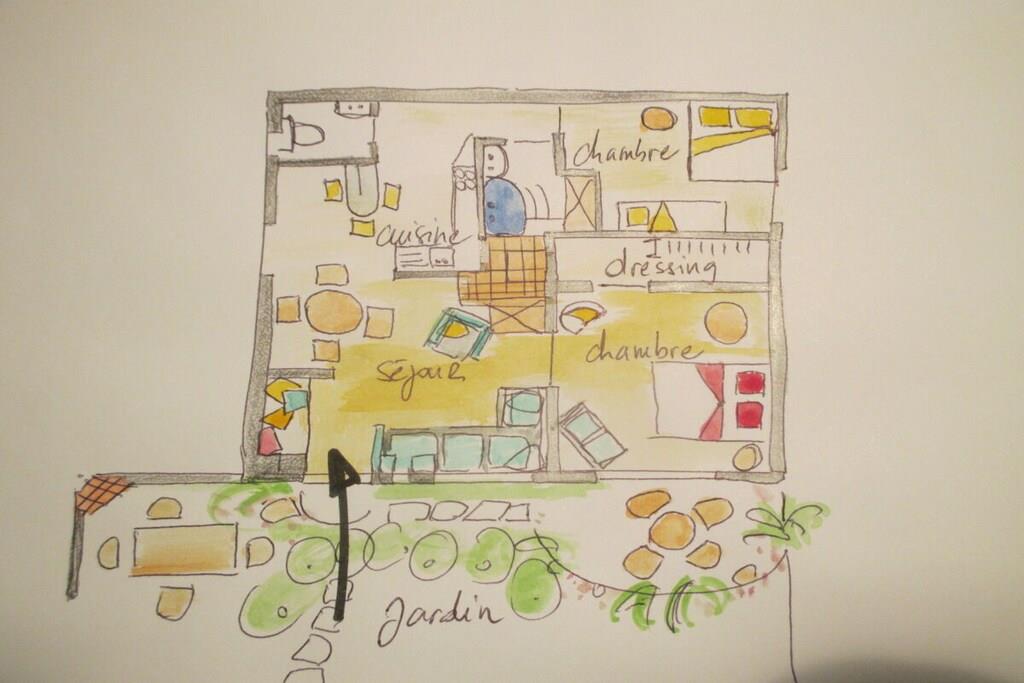 Feriehuset vender ud mod haven, som kan prale af et par romantiske, naturlige terrasser. Der er parkering for enden af den lille sti, der fører til havehegnet. Der er en udendørs pejs til grill eller bål. Det er meget tæt på Colmar, men stadig meget roligt. Feriehuset har to soveværelser, et med en dobbeltseng og et med en enkeltseng. Der er også køkken, badeværelse, separat toilet og en lys opholdsstue.