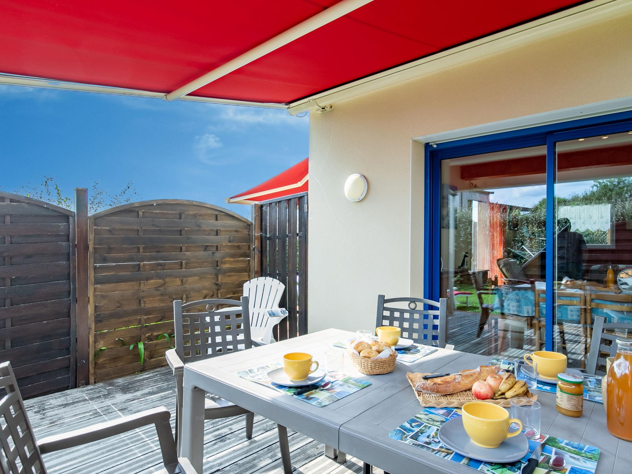 "L'appel du Large", 4-room house 80 m2 on 2 levels. Beautiful and tasteful furnishings: living/dining room 40 m2 with dining table and satellite TV. Exit to the terrace. Open kitchen (oven, dishwasher, 4 ceramic glass hob hotplates, toaster, kettle, microwave, electric coffee machine). Sep. WC. Upper floor: 2 rooms with sloping ceilings, each room with 1 french bed (140 cm, length 190 cm). 1 room with sloping ceilings with 2 beds (90 cm, length 190 cm). Shower, sep. WC. Electric heating. Parquet floors. 2 terraces. Terrace furniture, barbecue (portable), deck chairs (4). Facilities: washing machine, iron. Internet (WiFi, free). Please note: non-smoking house. Smoke alarm. The shower on the ground floor is located in the garage. Offer by a commercial proprietor according to Art. 155, IV, CGI