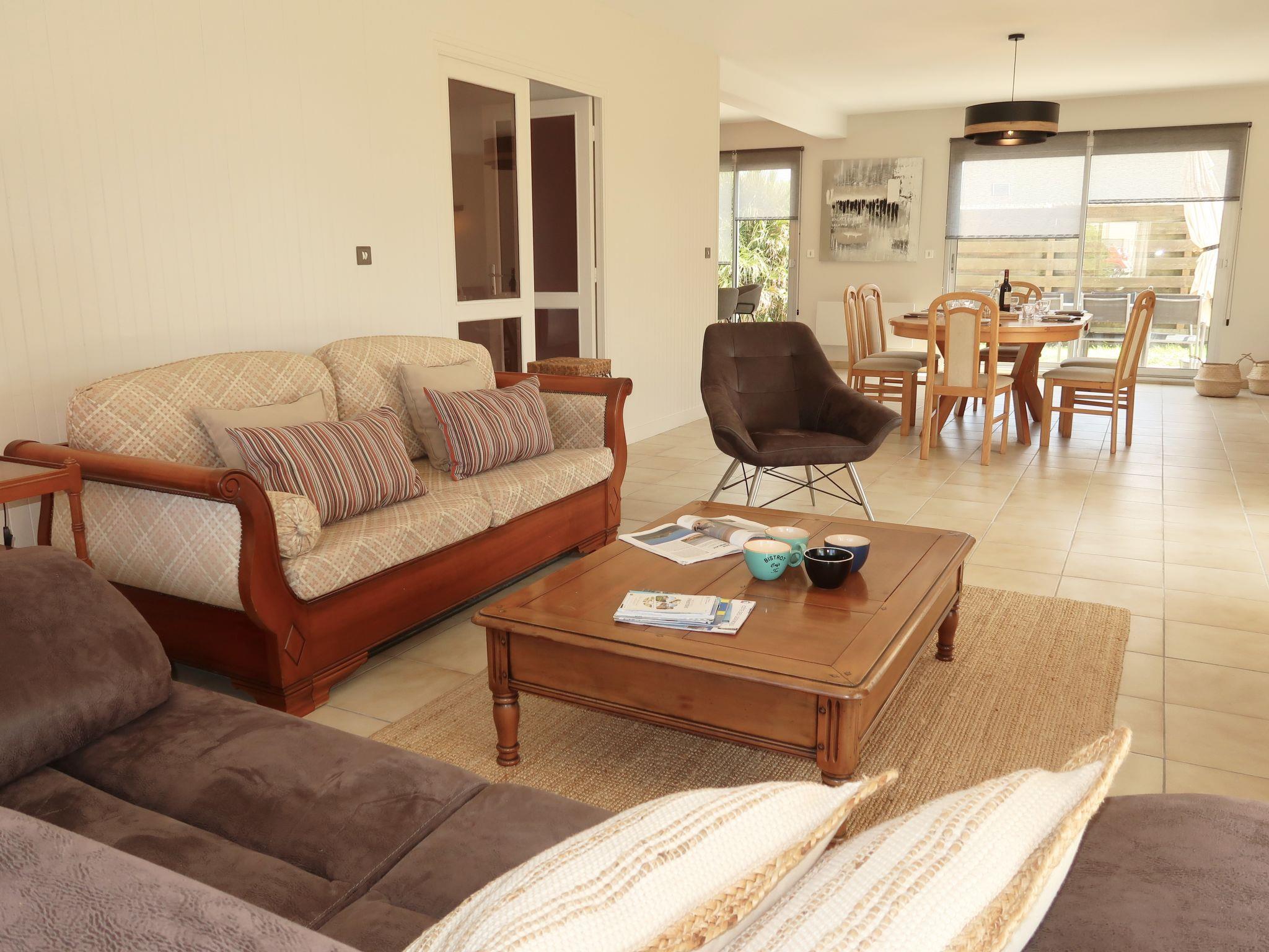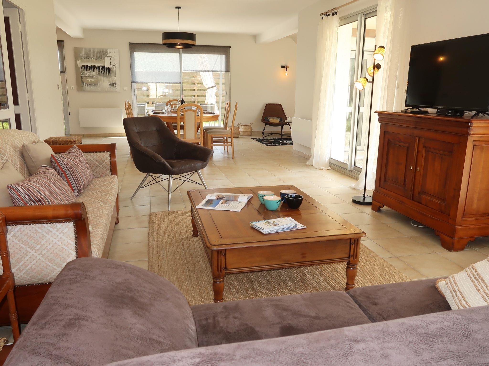 "Cremiou Beach", 5-room house 140 m2 on 2 levels. Comfortable and tasteful furnishings: large living/dining room 40 m2 with dining table and TV (flat screen). Exit to the garden, to the terrace. Open kitchen (oven, dishwasher, 4 ceramic glass hob hotplates, toaster, kettle, microwave, freezer, electric coffee machine, Capsules for coffee machine (Nespresso) extra) with bar. Shower, sep. WC. Upper floor: 3 rooms with sloping ceilings, each room with 1 french bed (140 cm, length 190 cm). 1 room with sloping ceilings with 1 double bed (180 cm, length 190 cm). Bath/WC. Electric heating. Parquet floors. Terrace 20 m2, south-west facing position. Terrace furniture, barbecue (portable), deck chairs (2). Facilities: washing machine, iron. Internet (WiFi, free). Please note: non-smoking house. Smoke alarm. When there are less than the maximum number of guests staying at the property, not all of the bedrooms will be available for use.