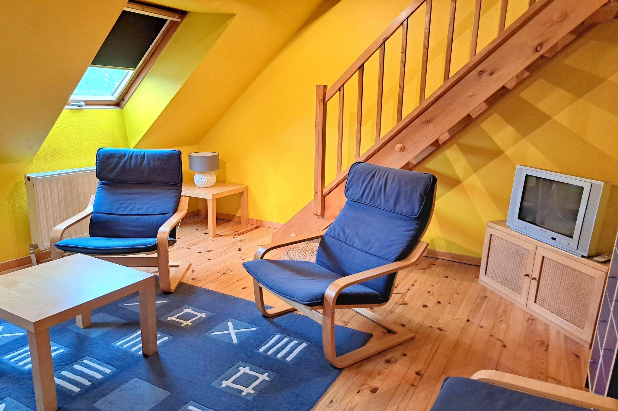 Langt væk fra al travlheden finder du et lille ferieparadis her på grunden af et tidligere savværk. På den 10000 kvadratmeter store smukt anlagte ejendom deler tre ferielejligheder et fantastisk udbud af fritidsaktiviteter. Din boligenhed byder på en hyggelig stue, køkken, badeværelse, 2 soveværelser og en privat terrasse. Den ekspansive park ligger naturskønt langs Red River, hvis farve afspejler områdets terræn. Længe efter sommeren kan du nyde badning og afslapning i den smukt anlagte fælles indendørs pool. Haven byder på adskillige små pladser til enhver familie. Der tilbydes sociale grillaftener i grillhytten, som byder på plads til 15 personer. Perfekt til familier og aktive feriegæster: kanoer, kajakker og cykler er gratis tilgængelige, og den venlige udlejer vil med glæde tilbyde dig en introduktion til bueskydning. Du kan også spille bordtennis, slå et par bolde på gårdens 7-hullers golfbane eller fiske i dammen. Højdepunkter: Julespecial - festligt dekorerede lokaler og et juletræ til ankomst i december