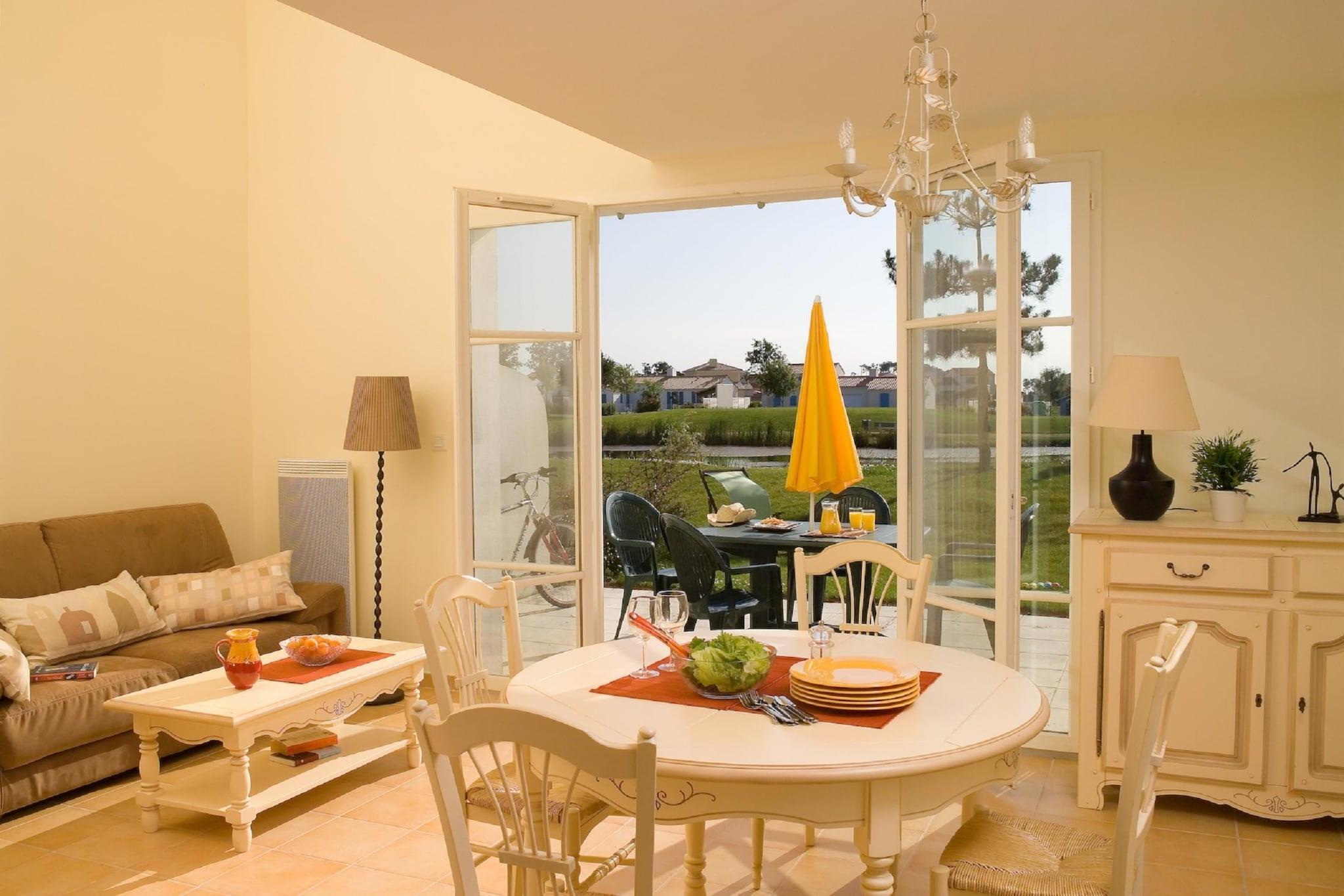Komfort, karakter og fransk charme Flygt til Atlanterhavskystens fredfyldte skønhed i dette lyse, indbydende feriehus beliggende i frodige grønne områder nær L'Aiguillon-sur-Vie. Med et hyggeligt køkken i åbent plan, solbelyst stue og franske døre, der fører til din private have eller terrasse, er det perfekt til afslappede morgener eller aftener under stjernerne. Mezzaninen tilføjer ekstra soveplads, ideel til familier eller venner. Stilfulde detaljer, moderne bekvemmeligheder og adgang til en fælles sæsonbestemt pool afrunder det perfekte tilflugtssted. Idyllisk beliggenhed nær kyst og landskab Gemt mellem fyrreskove og fairways, er du kun en kort køretur fra sandstrandene i Brétignolles-sur-Mer og de naturskønne vandrestier i Pays de la Loire. Udforsk maleriske nærliggende landsbyer, lokale markeder, eller tag et slag på den tilstødende golfbane. Tag også din firbenede ven med – kæledyr er hjerteligt velkomne, og nærliggende kæledyrsvenlige strande som Plage de la Parée og Parc des Genêts tilbyder plads til at strejfe og lege sammen. Spisning og lokale lækkerier Forkæl dig selv med regionens kulinariske perler - fra afslappede bistroer ved havet, der serverer friske østers, til charmerende crêperier i det nærliggende Coëx. Prøv lokale vine eller tag en kort køretur til Saint-Gilles-Croix-de-Vie for at spise middag ved vandet med havudsigt. Uanset om du er her for at slappe af eller udforske, er dette hjem din nøgle til en mindeværdig flugt på Frankrigs fantastiske Atlanterhavskyst.