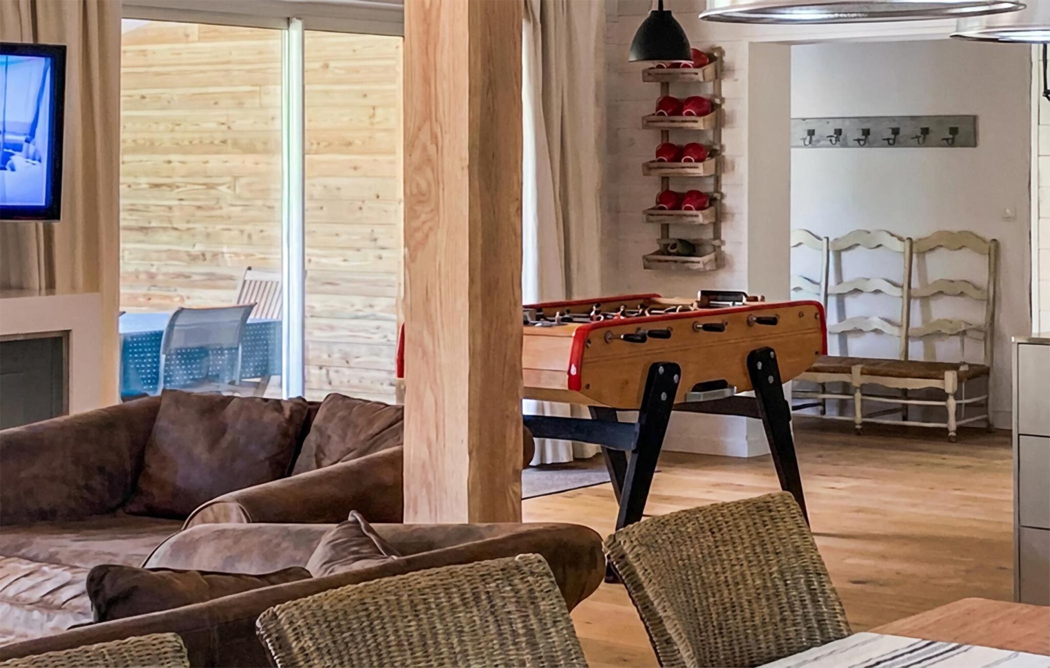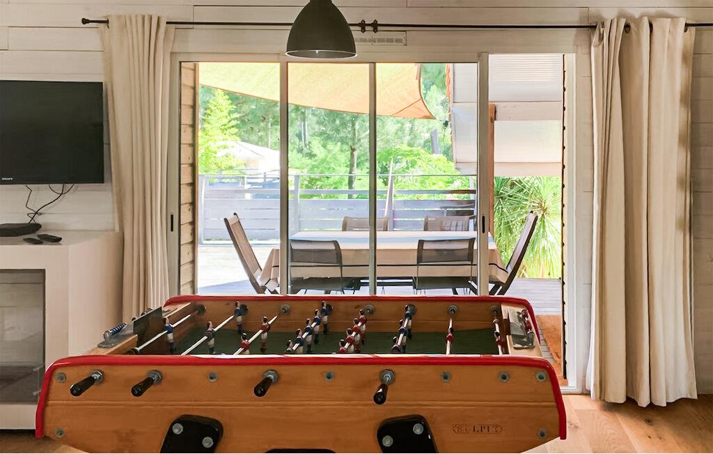Højt oppe på en bakke, ud til en stor, frodig have ligger dette rummelige og indbydende feriehus. Her kan I se frem til sjove aftener med madlavning og måltider med familien. Snup et sjovt spil ved bordfodboldbordet, snak over et glas vin i den hyggelige stue og find sammen til harmoniske spilleaftener.