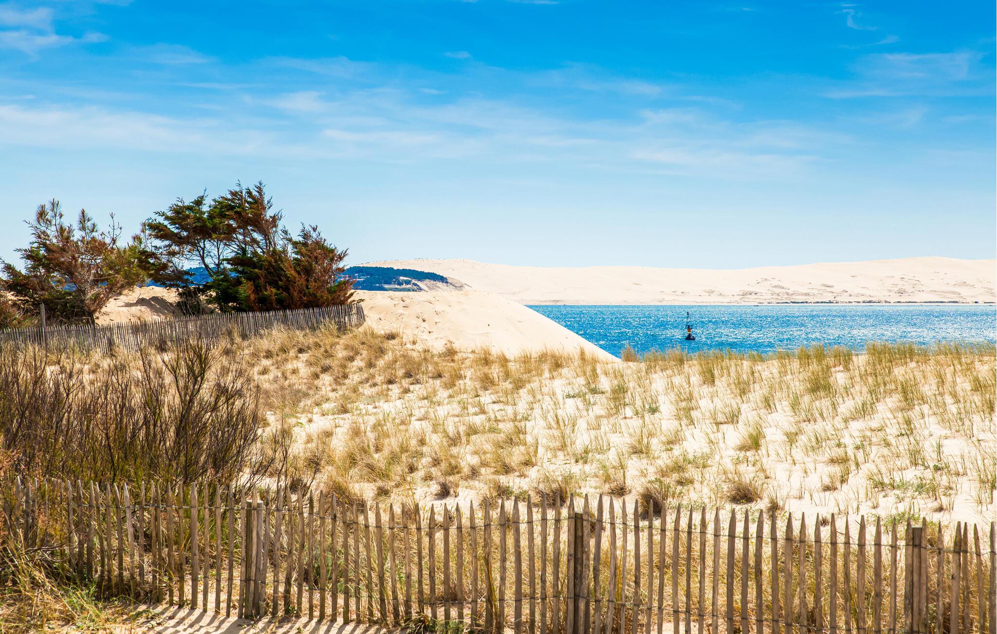 Slentr til stranden, udforsk Atlanterhavskysten med båd, og beundr den berømte klit Arcachon. Besøg forlystelsesparken Parc I Four, tag Cap Ferret-sporvognen og udforsk undervandsverdenen, mens I snorkler eller dykker. Kombiner en ridetur med en picnic, smag friske østers i Gujan-Mestras eller Andernos-les-Bains, og oplev kultur, arkitektur og gastronomi i Bordeaux.