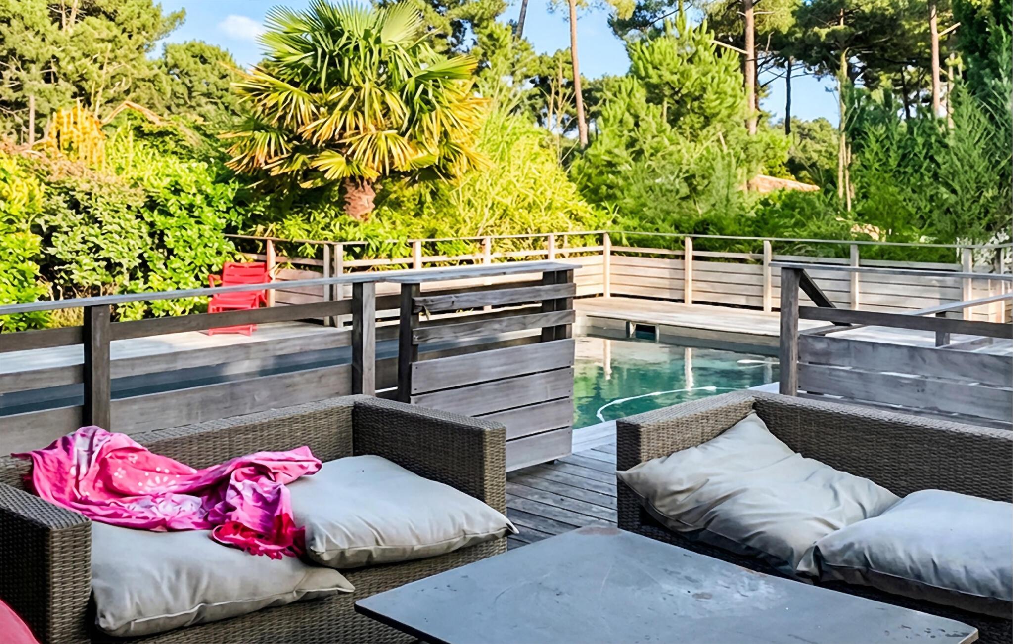 Nyd en hyggelig ferie nær stranden i dette komfortable feriehus med pool.