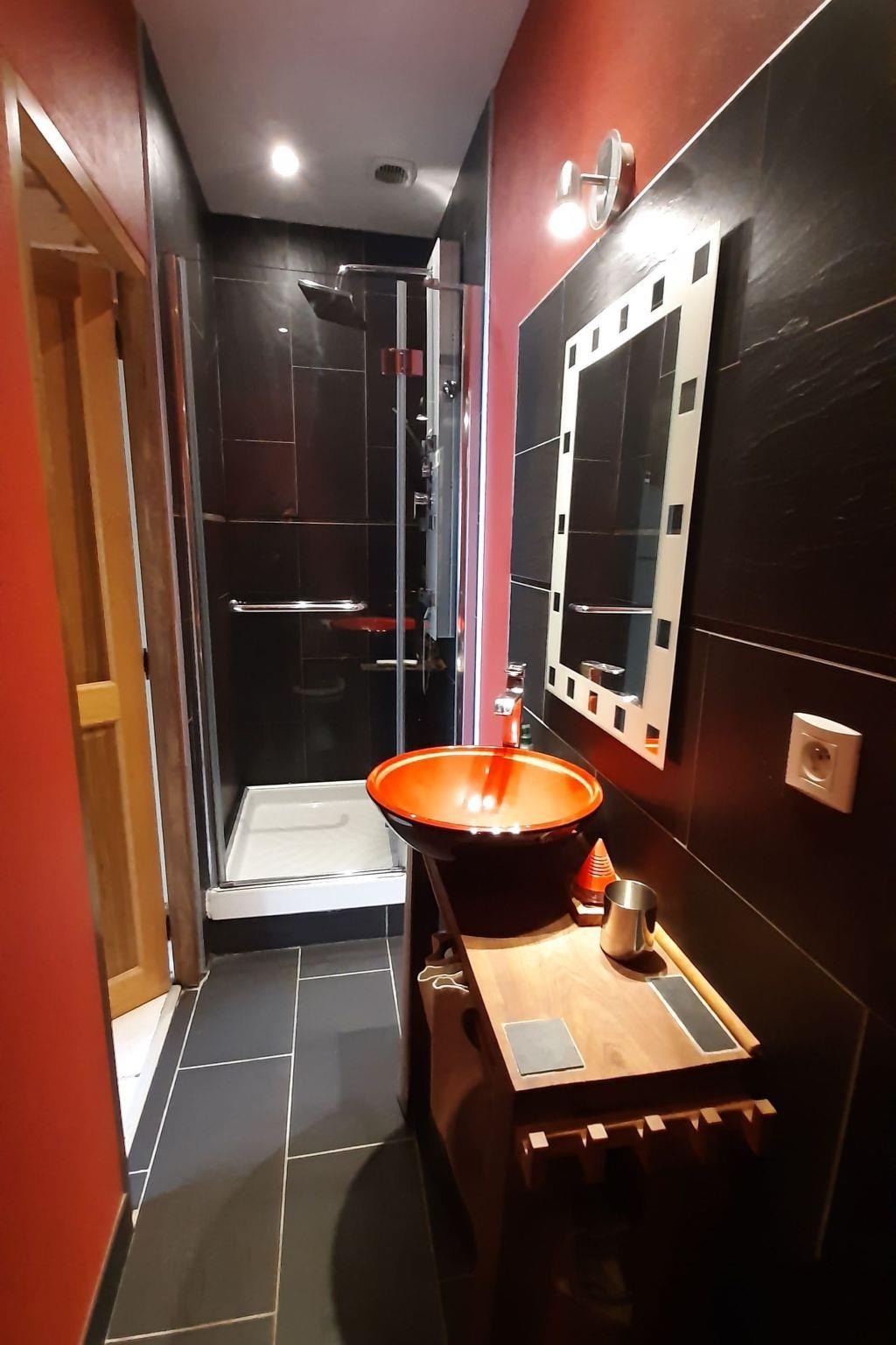 On the ground floor, there is a fully equipped kitchen (dishwasher, washing machine, oven, hob, fridge, freezer, microwave, food processor and small electrical appliances). The large living room has a fireplace, bar area and television, hi-fi system with DVD player, DIVIX, USB port and photo card reader for viewing photos directly on the television. There is also a bathroom with shower cubicle, washbasin and toilet.