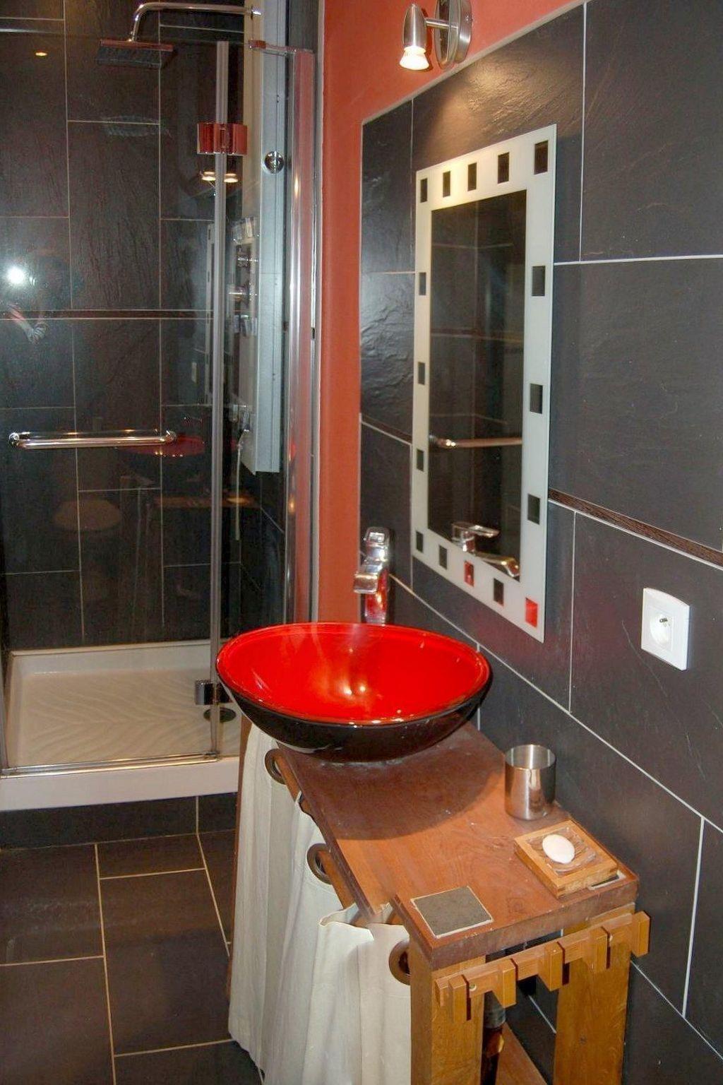 Upstairs, each of the 4 bedrooms has a double bed (140x190) with new bedding and latex mattress. The bathroom has a shower cubicle and washbasin. There is also a separate WC.