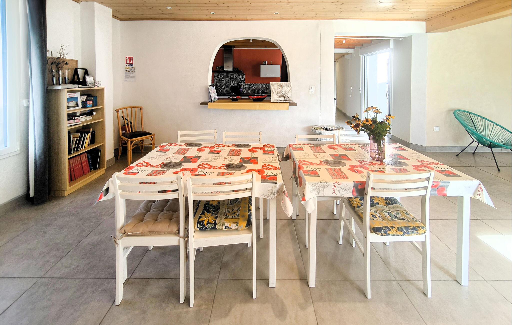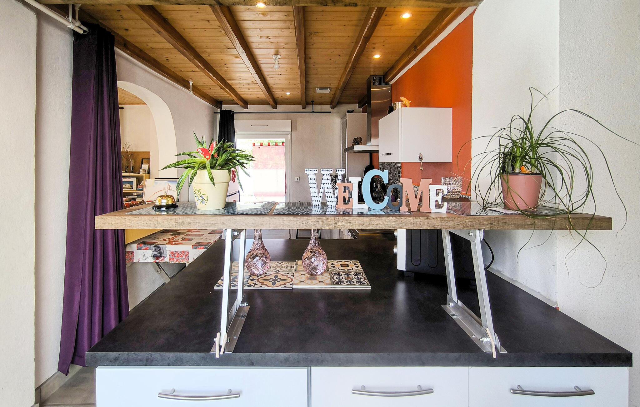 Dette lyse og rummelige feriehus tilbyder den ideelle base for en varieret ferie med jeres familie. Tilbered jeres yndlingsretter, planlæg jeres aktiviteter til afslappede måltider, brug den indbydende spiseplads til hyggelige spilleaftener, eller hyg jer med et glas vin i stuen.