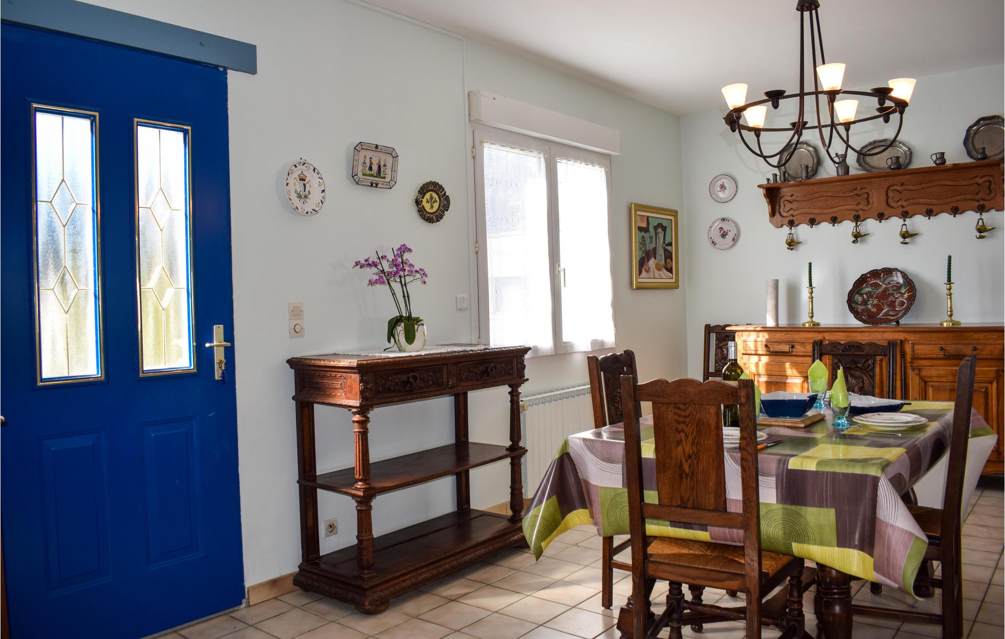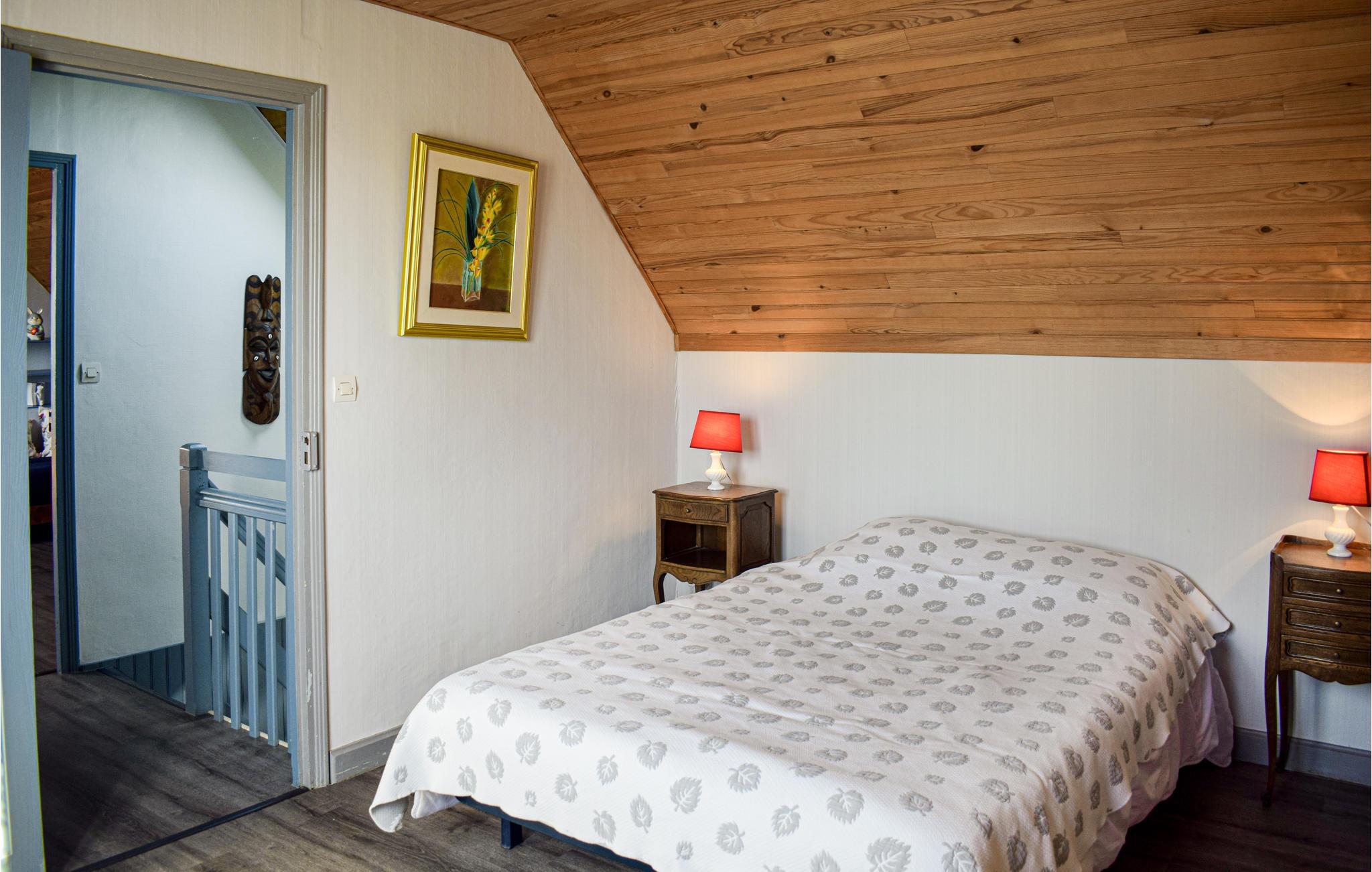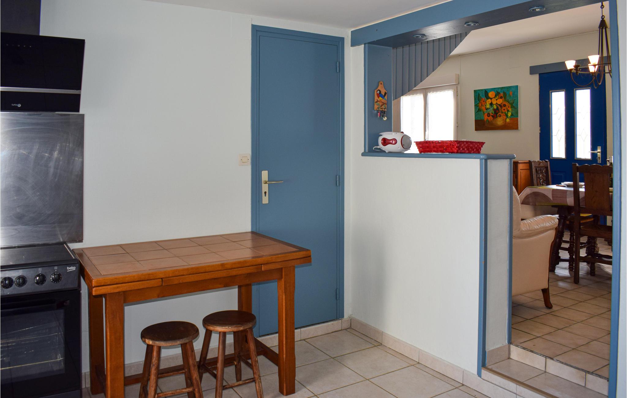 Feriehuset er hyggeligt beliggende på en blind vej. Den ene del af huset er beboet af ejeren. Om aftenen kan du slappe af ved pejsen med et glas vin. Træmøblerne skaber en rustik atmosfære, mens det moderne badeværelse tilbyder masser af komfort. I forhaven kan du starte dagen med en kop kaffe og nyde solen.