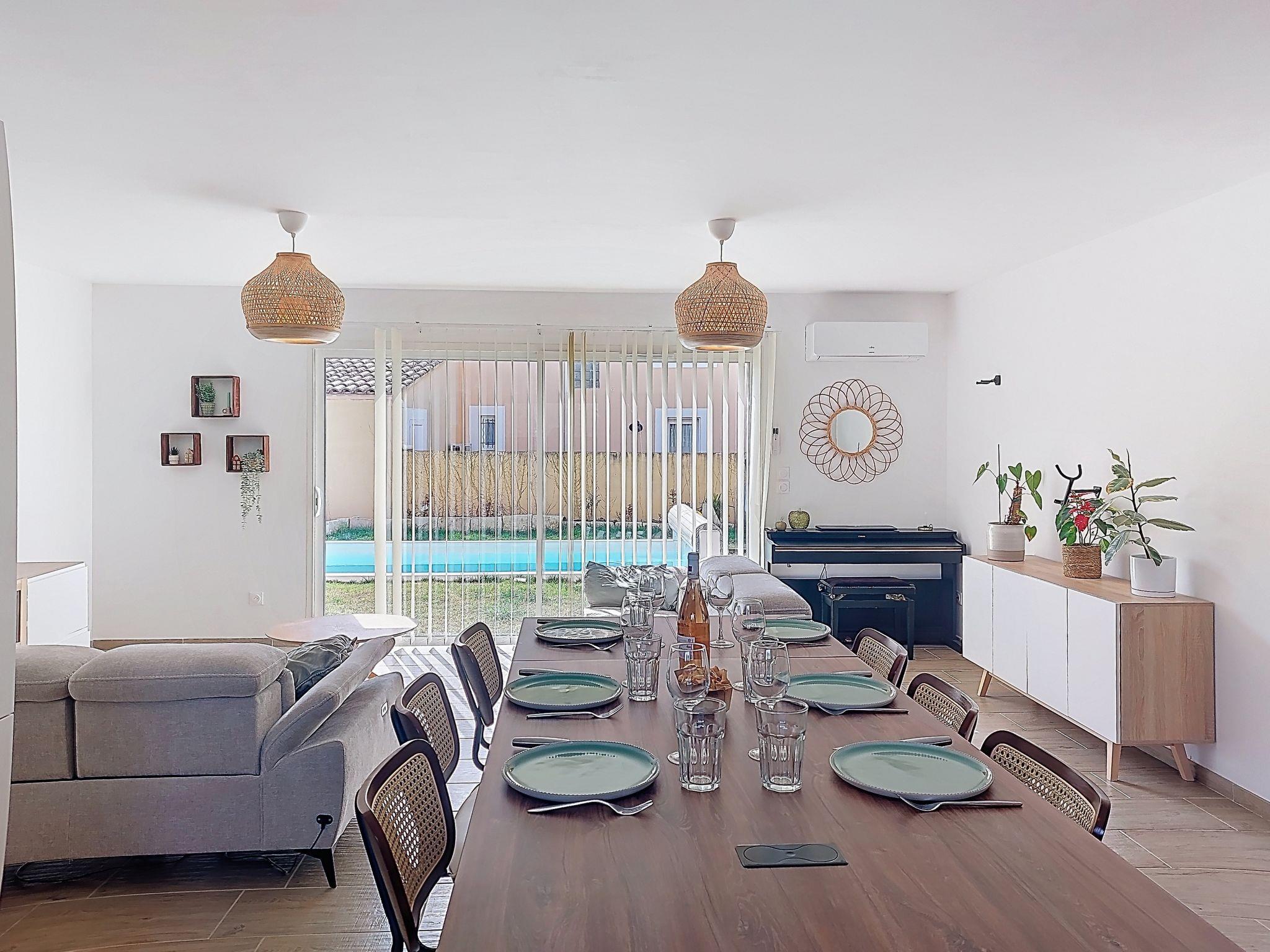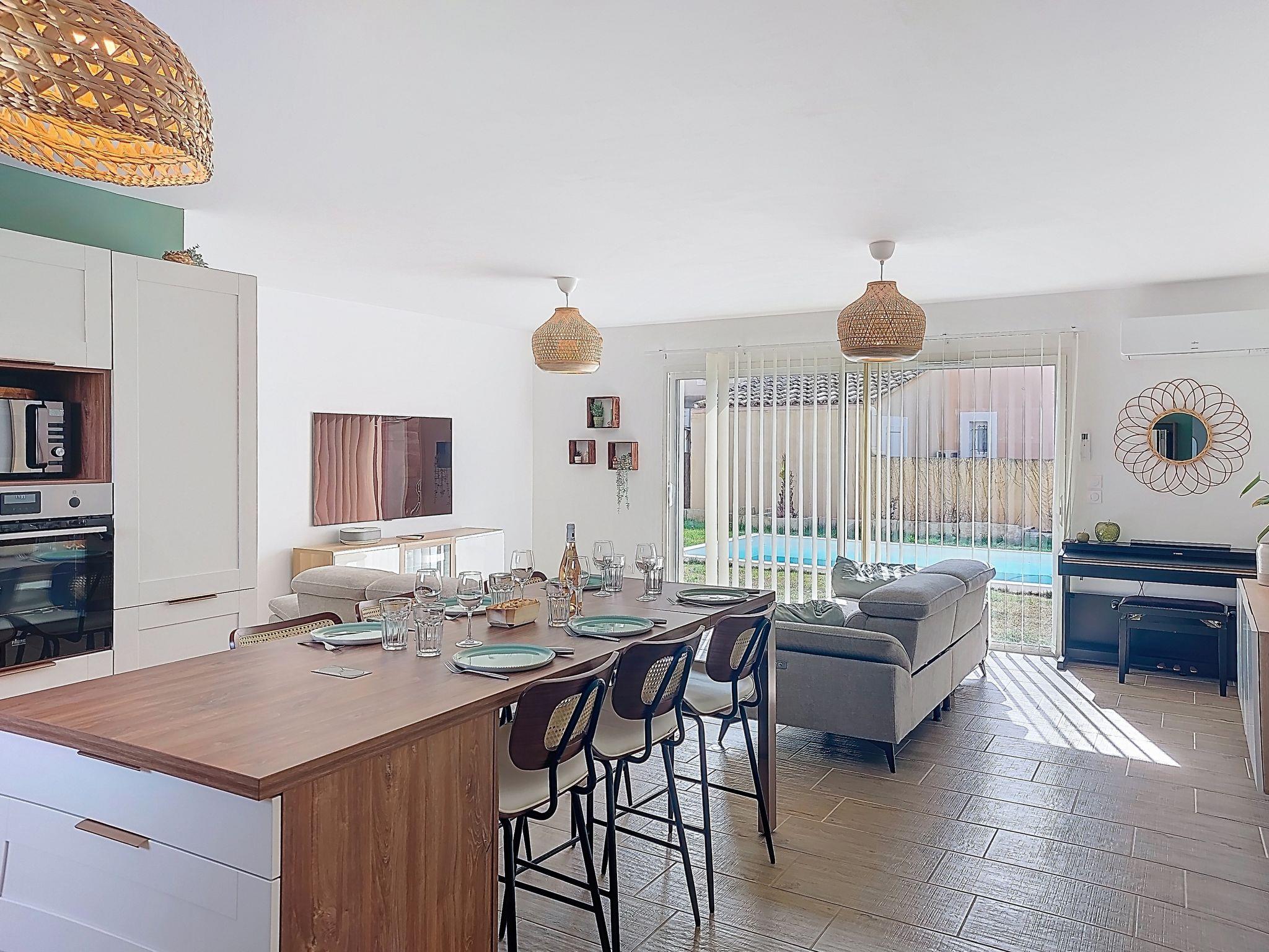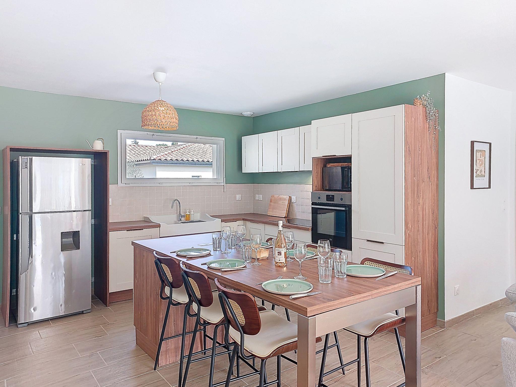 "AQUI SIAN BEN", 4-room villa 120 m2. Comfortable and modern furnishings: large living/dining room with TV (flat screen), air conditioning. Exit to the terrace. 1 room with 1 french bed (160 cm, length 200 cm), separate WC, shower, double hand-basin and TV (flat screen), air conditioning. Exit to the terrace. 1 room with 1 pull-out bed (2 pers. 2 x 80 cm, length 190 cm). 1 room with 1 french bed (140 cm, length 190 cm). Open kitchen (oven, dishwasher, 5 induction hot plates, toaster, kettle, microwave, freezer, electric coffee machine, cooking island) with dining table. Bathroom, sep. WC, double hand-basin. Electric heating. Terrace 40 m2, south facing position. Terrace furniture, barbecue, deck chairs (6). Facilities: washing machine, iron, baby cot for up to 3 year olds, hair dryer. Internet (WiFi, free). Please note: non-smoking house. Maximum 1 pet/ dog allowed. The pool mentioned in the description is for private use. Offer by a private individual according to Art. 155, IV of CGI. 840540011307T