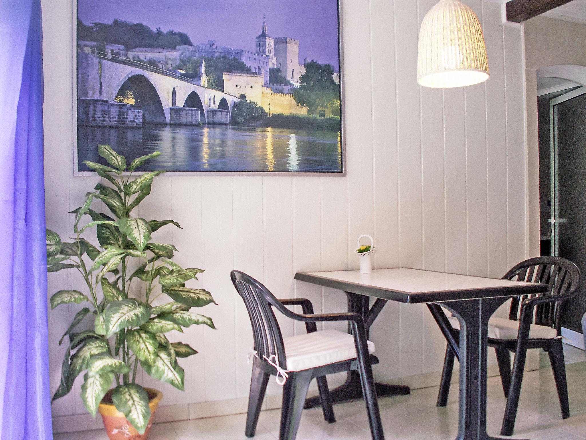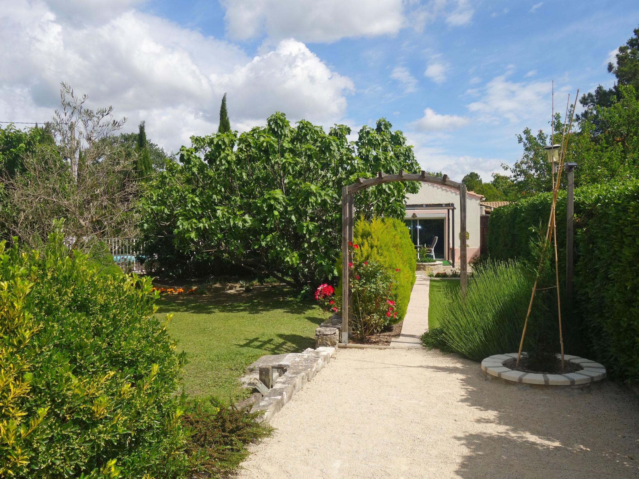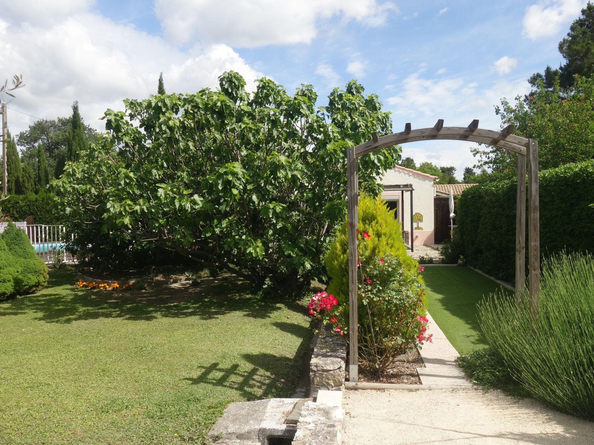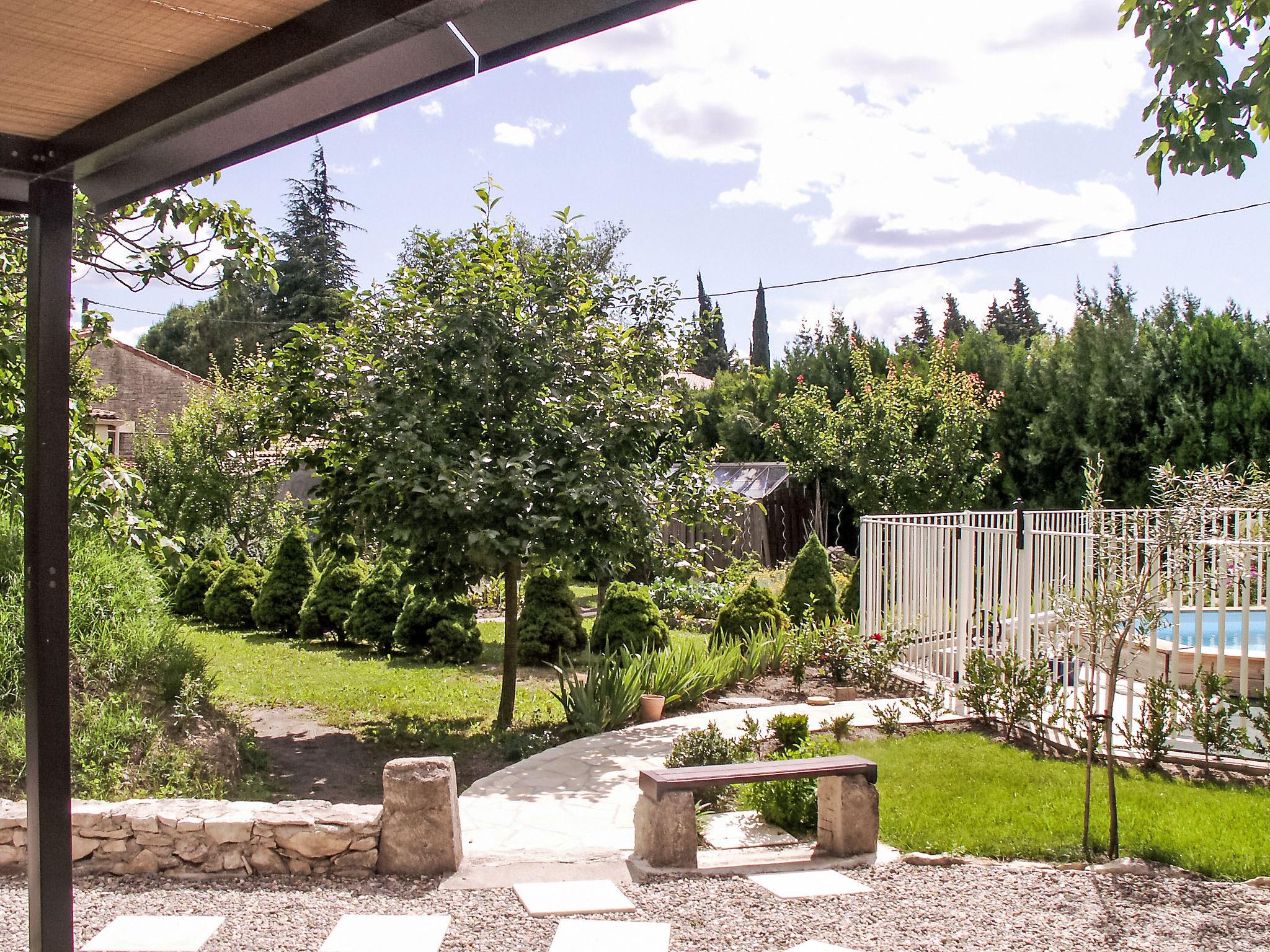 Caumont sur Durance 12 km from l'isle sur la Sorgue: Small single-family house "Haider". For shared use: property 2'500 m2 (fenced). Outdoor shower, pergola. Private: property 1'500 m2 (fenced) with flowers and trees, swimming pool fenced (8 x 4 m, depth 130 cm, seasonal availability: 01.May. - 30.Oct.). Outdoor shower, table tennis, terrace, garden furniture, barbecue, parking on the premises. Shop 1 km, restaurant 1 km, bus stop "Jourdans" 130 m. Golf course (18 hole) 4 km. Please note: the owner lives on the same property. The house is located at the bottom of the garden.
