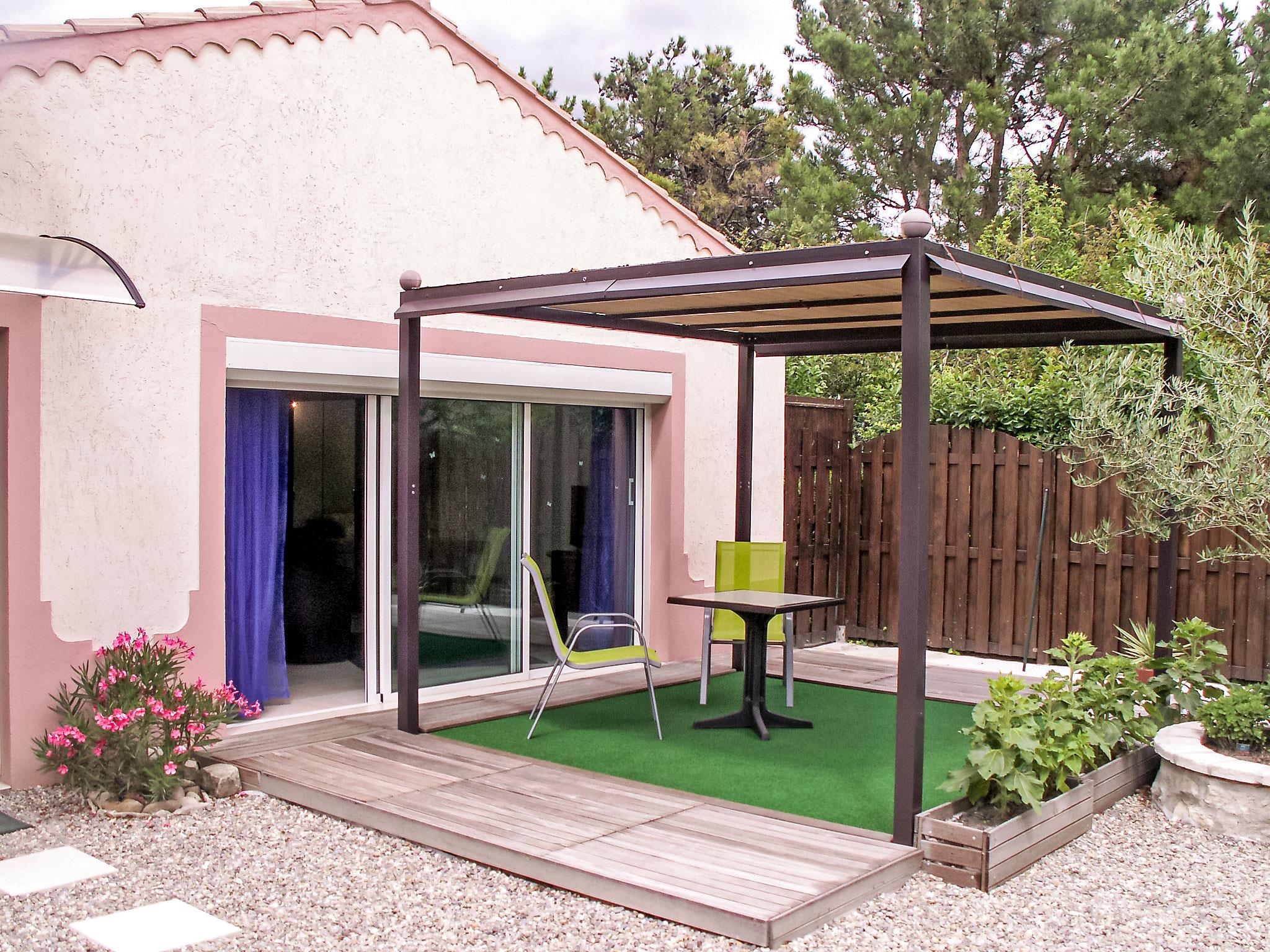 1-room house 42 m2. Living/dining room with 2 beds (80 cm, length 200 cm), dining table and TV (flat screen). Exit to the terrace. Kitchen (1 ceramic glass hob hotplate, microwave, freezer). Shower/WC. Heating. Deck chairs (2). Facilities: washing machine. Internet (WiFi, free). Please note: smoke alarm. Please note: reversible air conditioning. It is possible to join the 2 beds (80 cm each) together.