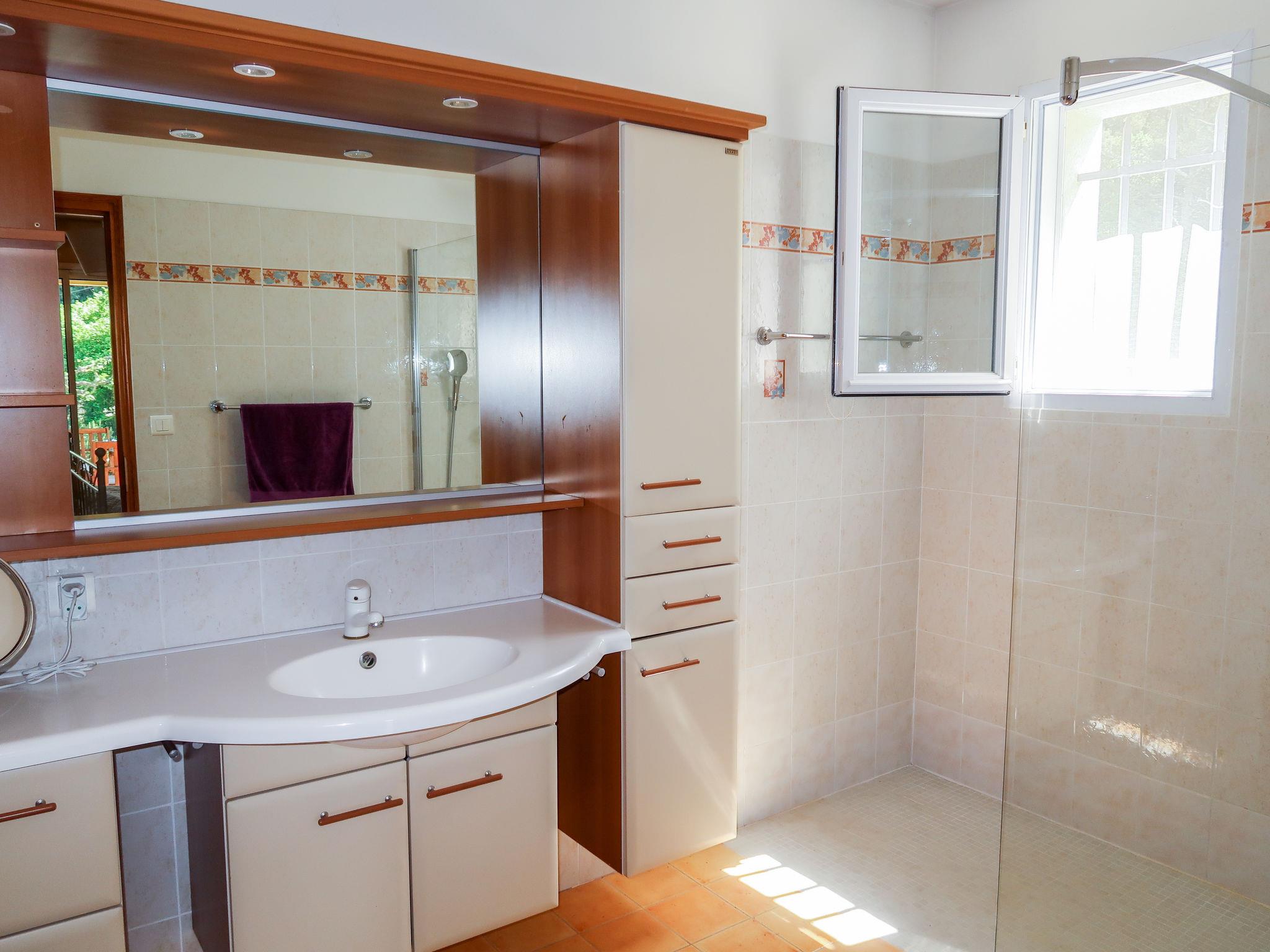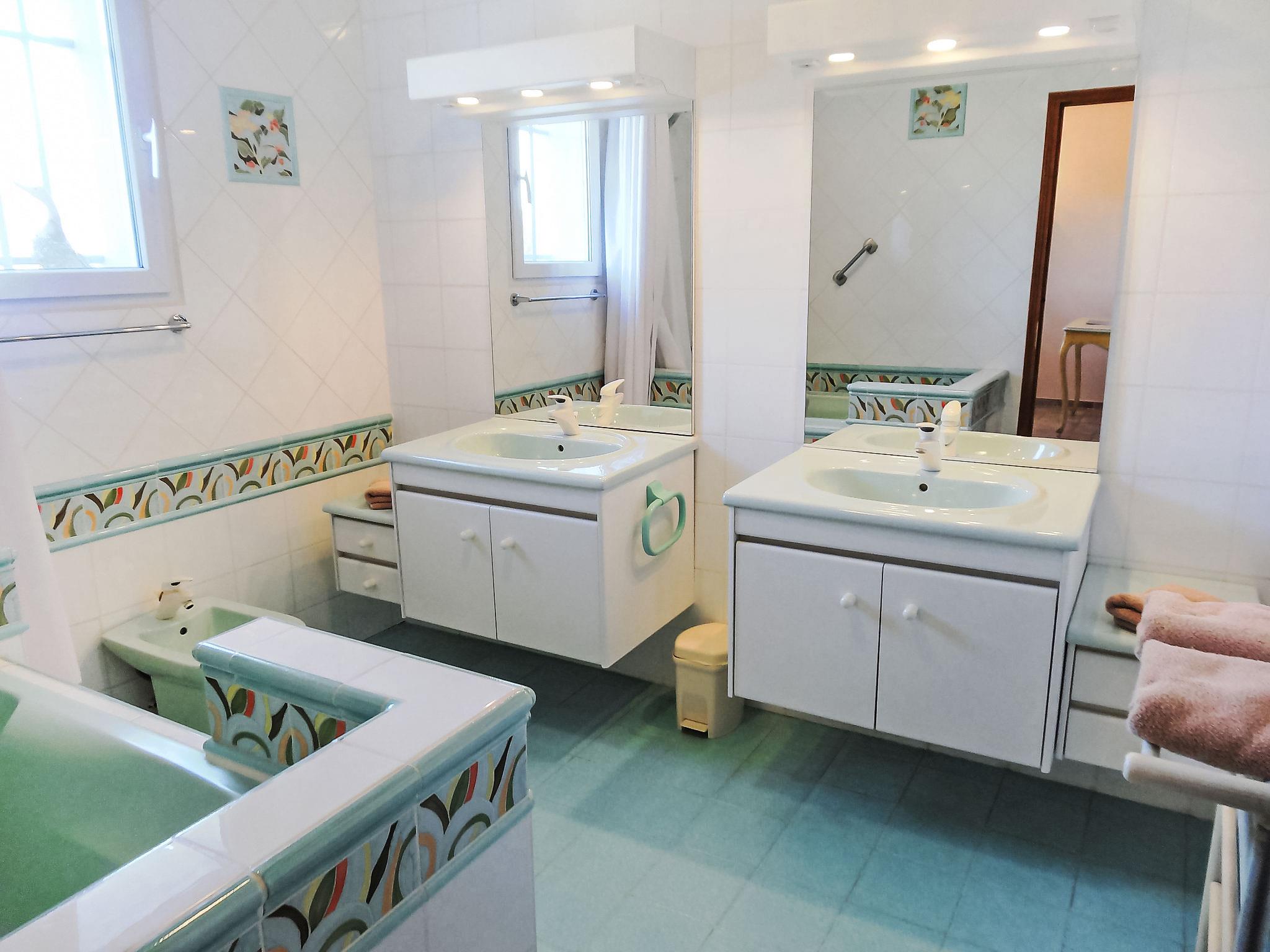 5-room house 255 m2 on 2 levels. Comfortable furnishings: living/dining room 50 m2 with digital TV and DVD. Exit to the terrace. 1 room with 1 french bed, bidet, shower/WC and double hand-basin. Exit to the terrace. 1 room with 1 french bed and shower/WC. Kitchen 35 m2 (oven, dishwasher, 5 induction hot plates, microwave, freezer). Sep. WC. Upper floor: 1 room with 1 french bed. 1 room with 2 beds (90 cm). Bathroom, bidet, sep. WC, double hand-basin. Floor heating. Large terrace 55 m2 partly roofed. Terrace furniture, deck chairs (12). Facilities: washing machine, dryer, children's high chair, baby cot. Internet (WiFi, free). Please note: non-smoking house. "Le Petit Mas" house 55m², 3 rooms, nice layout: dining room 30m², exit to the terrace. 2 bedrooms, each bedroom with a large bed. Kitchenette with 4 hotplates, oven, dishwasher, microwave oven. Bath/WC. Please note: the houses are separated (10m) and independent.