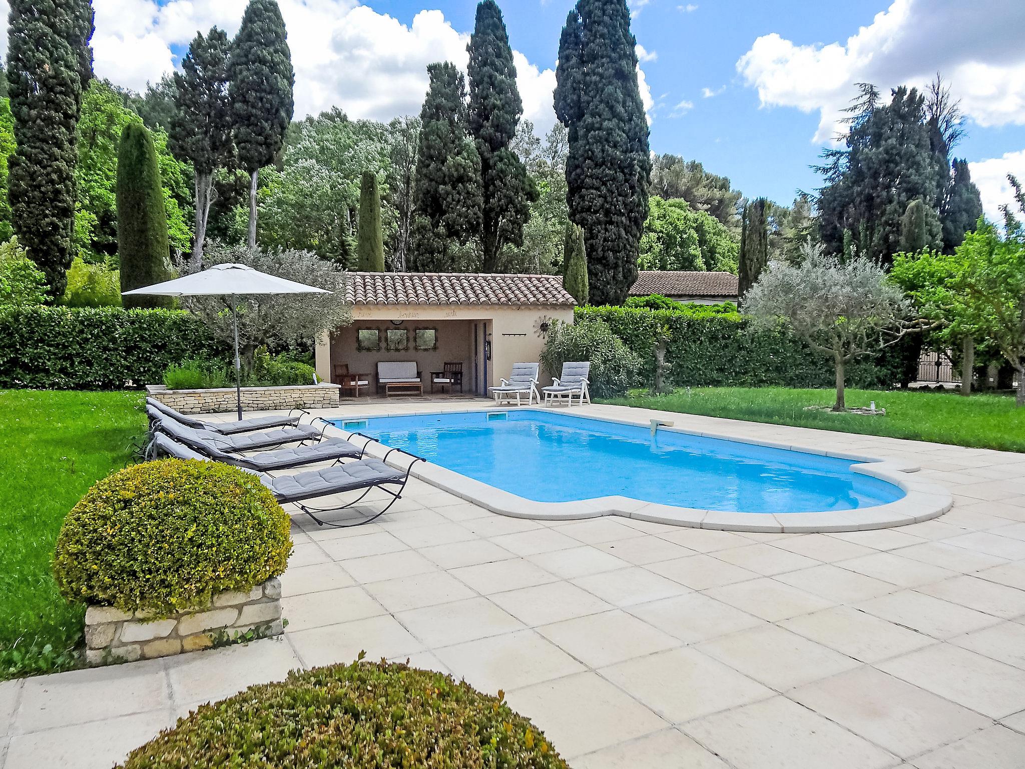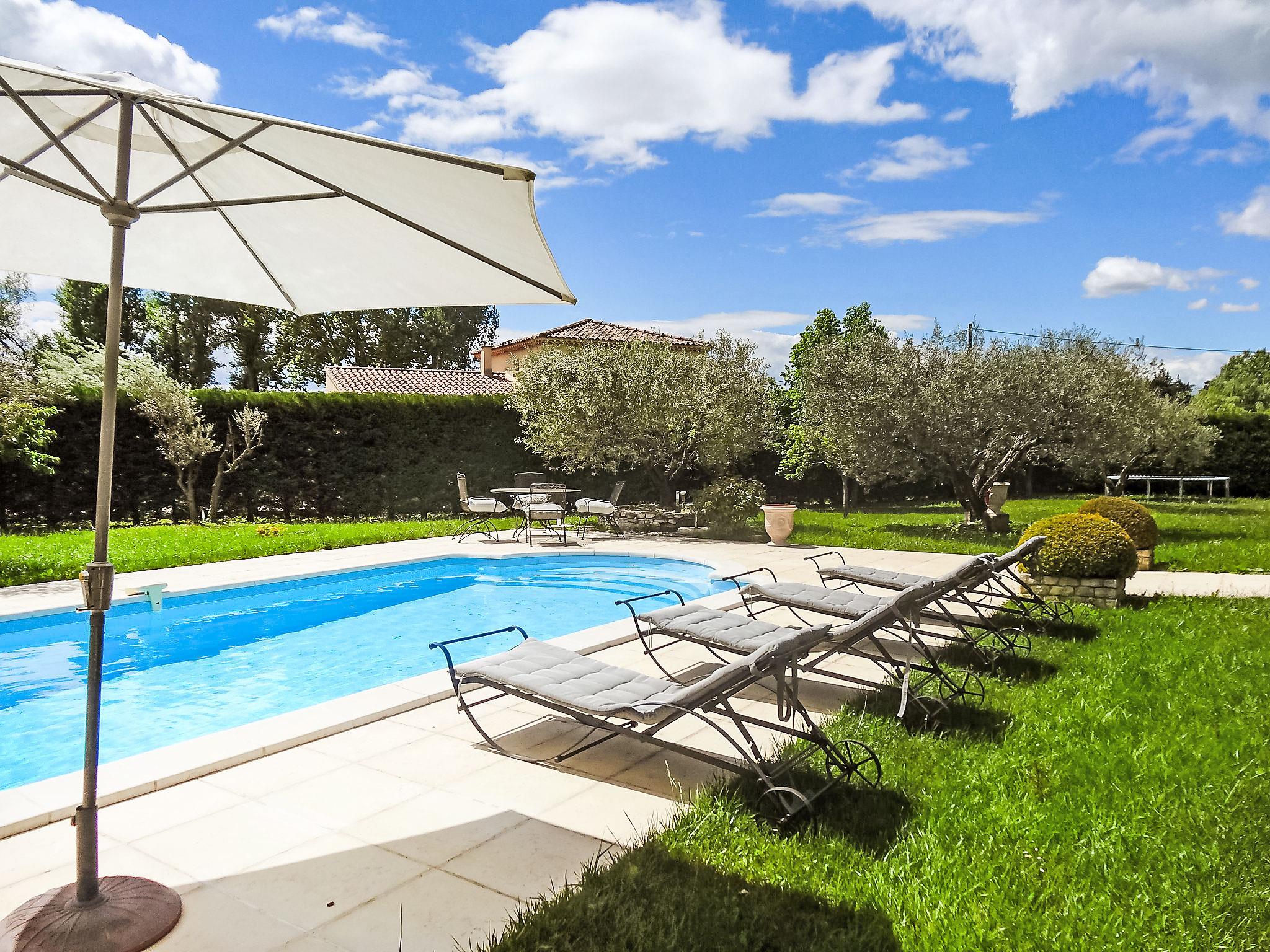 Velleron 5 km from l'Isle sur la Sorgue: Property consists of two houses. Villa "Le Bouloulou". In the residential district. Private: property 8'000 m2 (fenced), swimming pool heated (4 x 8 m, depth 80 - 170 cm, seasonal availability: 01.Apr. - 30.Sep.) with internal staircase and alarm system. Pool house, tennis, garden furniture, barbecue, parking on the premises. Shop 2 km, restaurant 2 km, bus stop "La grangette" 170 m. Golf course (18 hole) 4 km. Nearby attractions: Golf de Saumane de vaucluse 4 km, Fontaine de Vaucluse 7 km, Avignon 27 km, Gordes 30 km. Please note: car recommended. Main road close by. Please note: swimming pool is heated by a heat pump.