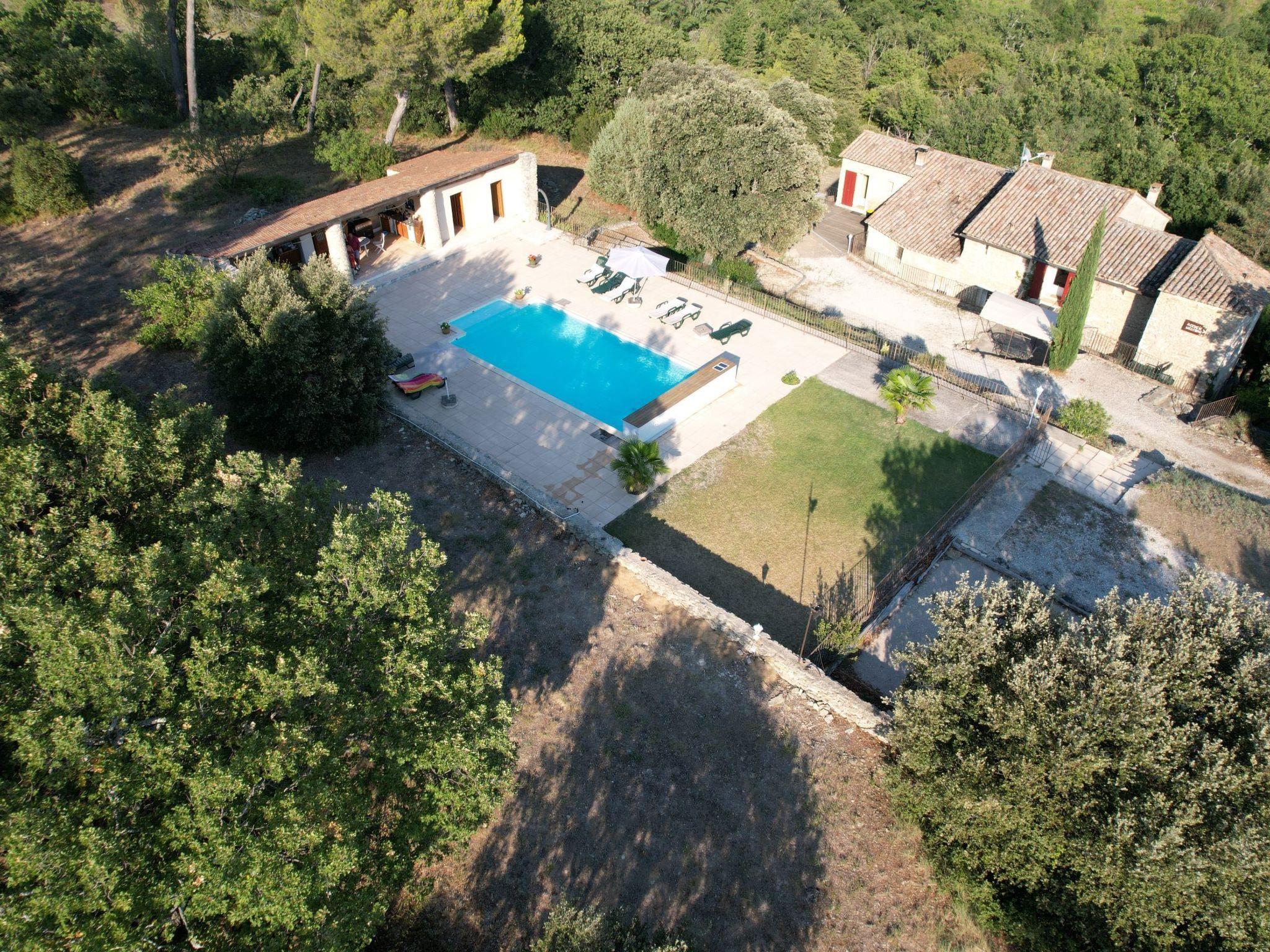 The property has a beautiful outdoor area with a 10 x 5 metre saltwater swimming pool with pool house, which is shared. Sun loungers and parasols are available for guests to use around the pool. There is also an outdoor shower and an outdoor toilet. The boules pitch and darts board will also delight adults. There is also a sandpit for children. The furnished terrace in front of the house is covered with a parasol and invites you to eat al fresco. Guests enjoy a magnificent unobstructed view of the Luberon mountain range and the Vaucluse mountains.