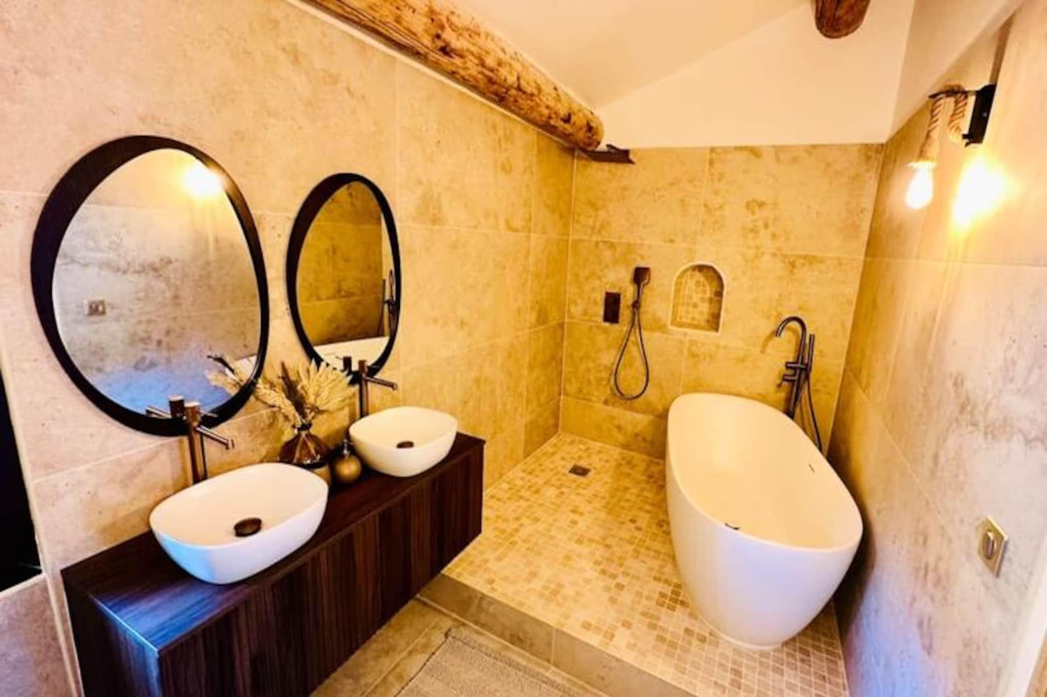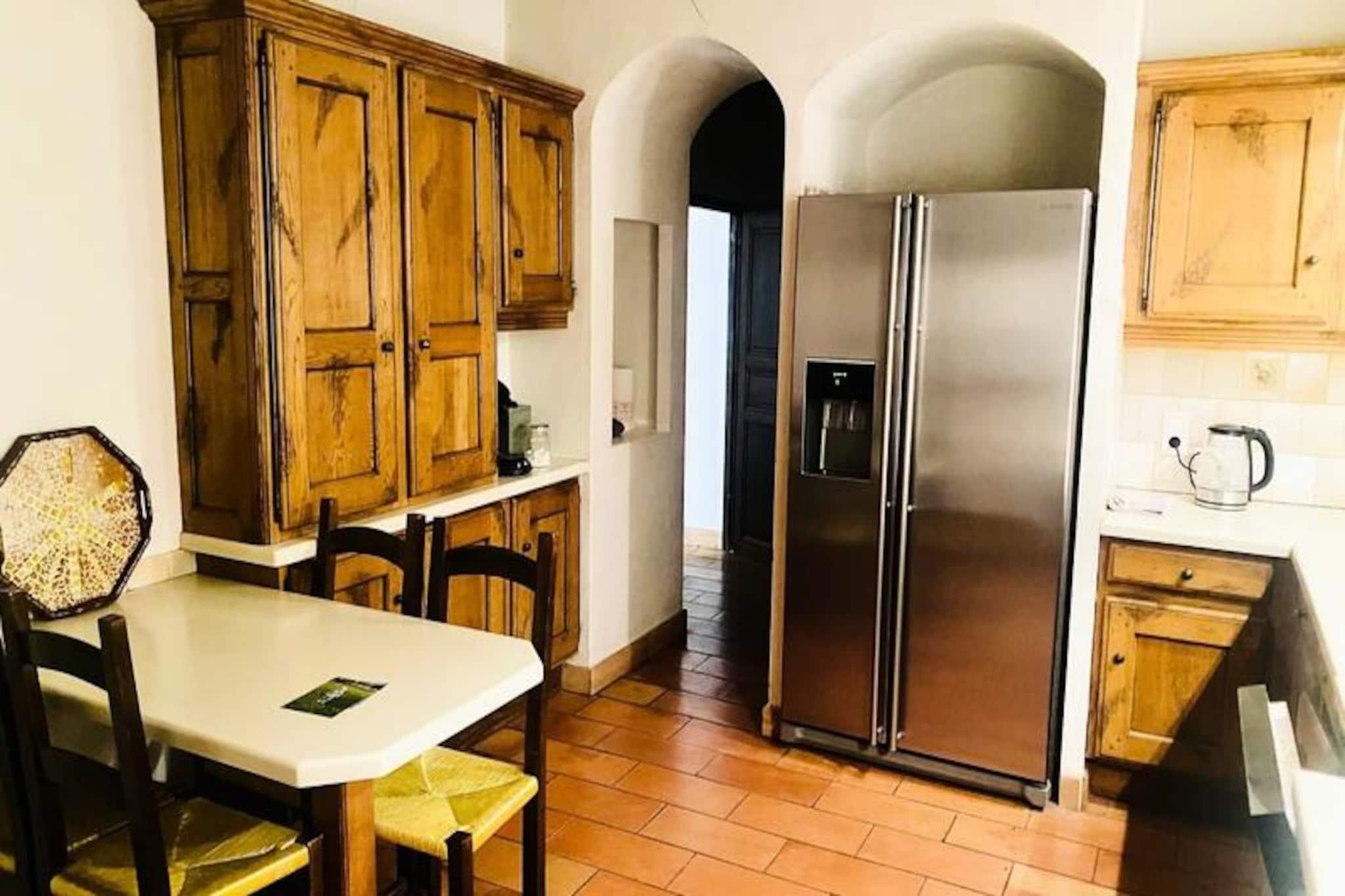 Midt i Provences solbeskinnede landskaber inviterer dette udsøgte bondehus på 300 m² dig til at opleve charmen og roen i det franske landskab. Omgivet af 10.000 m² frodig grund er denne ejendom et paradis for afslapning og rekreation og tilbyder et perfekt tilflugtssted for familier eller vennegrupper, der søger en uforglemmelig ferie. Med sin provencalske indretning og rolige atmosfære udstråler hvert hjørne af dette hjem varme og autenticitet. Indenfor kan bondehuset komfortabelt rumme op til ni gæster fordelt på fire smukt indrettede soveværelser, herunder et med en dobbeltseng og en enkeltseng, ideelt for familier med børn. De rummelige opholdsområder omfatter en hyggelig stue med en stor pejs og hjemmebiograf, en spisestue og et fuldt udstyret køkken med moderne apparater som et amerikansk køleskab, opvaskemaskine og gaskomfur. Ovenpå supplerer to badeværelser soveværelserne, hvilket sikrer komfort og bekvemmelighed for alle gæster. En barneseng og ekstra seng kan leveres efter anmodning, hvilket gør det ideelt for familier med små børn. Træd udenfor for at opdage et privat paradis. En stor 12 x 6 m swimmingpool venter på forfriskende dukkerter, mens flere udendørs spiseområder, komplet med grill og håndvask, sætter scenen for måltider under åben himmel under den provencalske sol. Sportsentusiaster vil nyde tennisbanen og petanquebanen, mens liggestole og æggestole inviterer dig til at slappe af i de fredelige omgivelser. Ejendommen tilbyder også rigelig parkering og privat adgang til alle udendørs faciliteter. Bondegården ligger kun 800 meter fra det maleriske centrum af L'Isle-sur-la-Sorgue og er perfekt placeret til at udforske regionens skatte. Gå en tur gennem de charmerende gader, besøg den kollegiale kirke, eller slentre langs bredden af ??Sorgue-floden. Byen er kendt for sine pulserende markeder og antikvitetsforretninger og er et paradis for både kultur og tilbudsjægere. Uanset om du udforsker de nærliggende Luberon-, Ventoux- eller Alpilles-bjerge, eller blot nyder roen på ejendommen, lover dette provencalske tilflugtssted en uforglemmelig flugt.