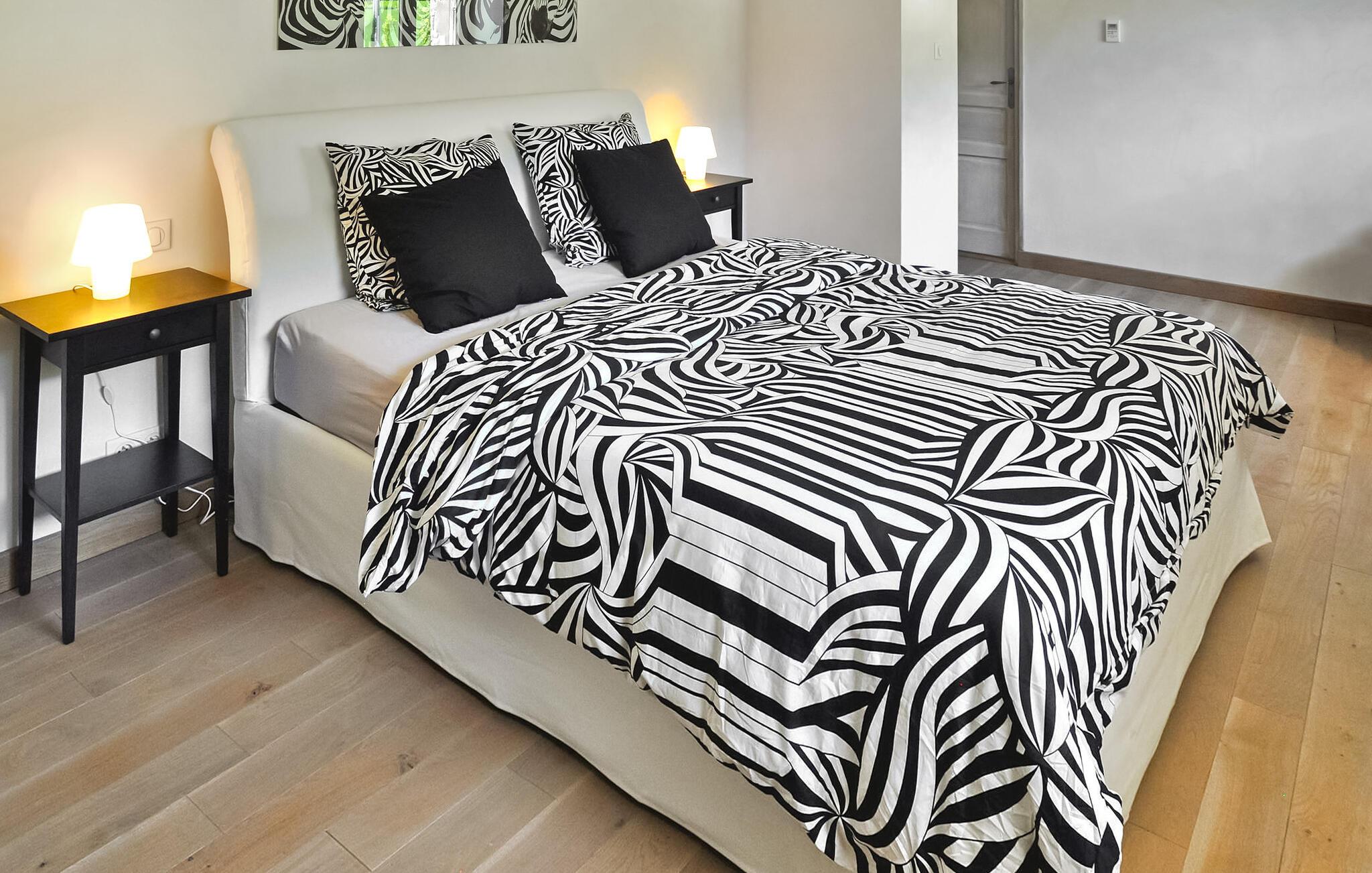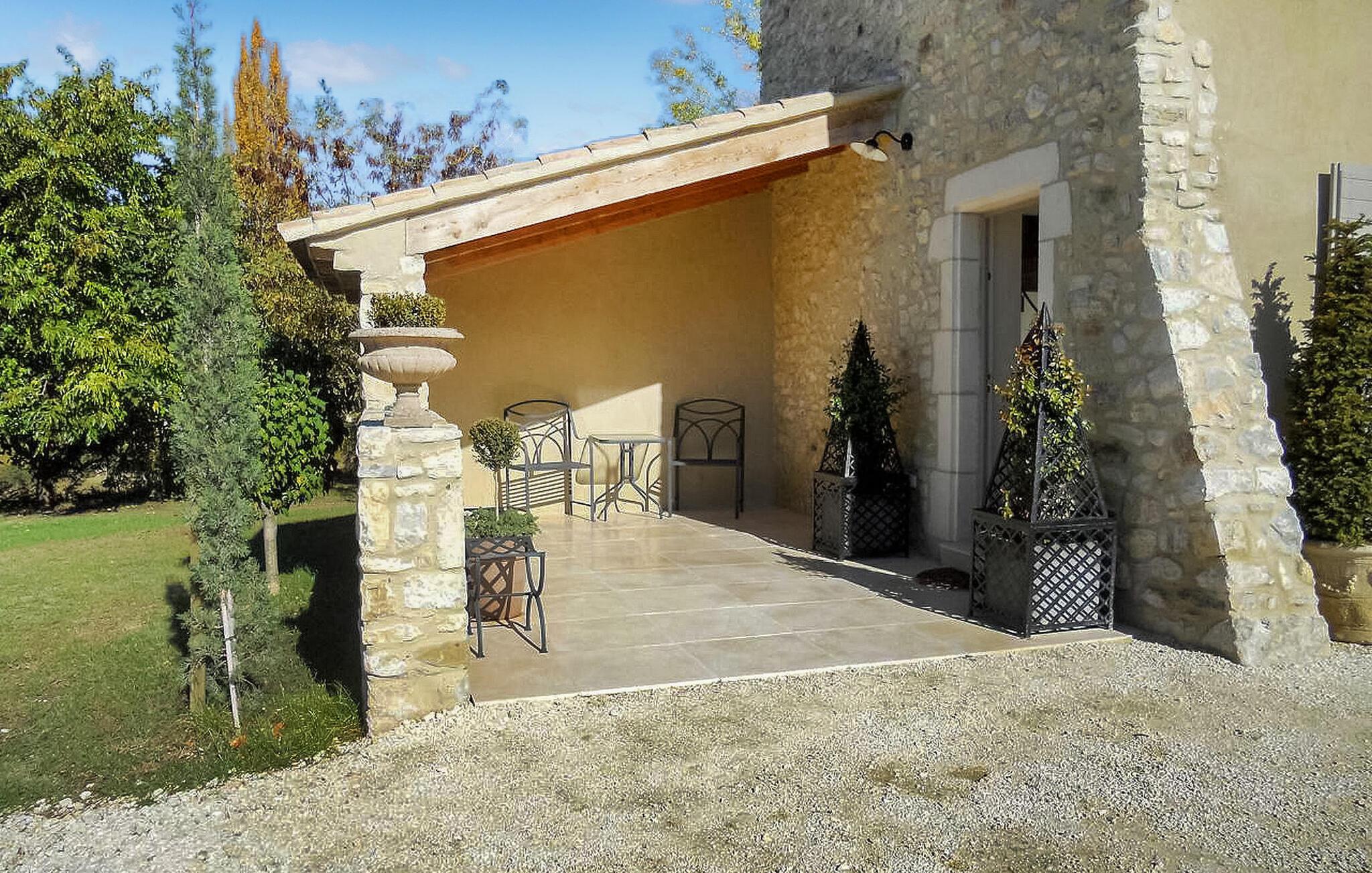 Dette charmerende sommerhus i Souspierre, Drôme, Provence, nær Dieulefit, byder på rolige omgivelser. Dette smukt dekorerede tilflugtssted tilbyder et ideelt sted til en afslappende flugt på landet med venner eller familie. Beliggende i et roligt miljø, fungerer det som en perfekt base for afslappede gåture eller cykeleventyr. Stuehuset har en stueetage med åbent køkken forbundet til spisestuen. Det giver adgang til den anden terrasse. En rummelig spisestue og opholdsområde med fransk vindue giver adgang til haven og udsigt over poolen. Der er også et opholdsområde med sofa og tv. Et soveværelse med aircondition, adgang til poolen og udsigt er i stueetagen. På første sal er de resterende soveværelser. Udendørs faciliteter supplerer det fredfyldte indendørs rum med omfattende grunde med en anlagt have, parkering og en lille sti, der fører til "le Jabron"-floden under ejendommen. Den private pool er sikret med et elektrisk sikkerhedsafdækning (coverseal type) og en poolalarm. Poolstørrelsen er 10 m X 5 m, med en maksimal dybde på 1m 80. Sommerhuset er beliggende på landet, ved siden af den lille flod "Jabron". De nærmeste butikker ligger i landsbyen La Bégude de Mazenc omkring 3 km. Souspierre er en meget charmerende lille landsby på +/- 10 km fra Dieulefit. Ideelt udgangspunkt for vandre- og cyklister. Nyd din ferie i en bondegård i Drôme i Provence.