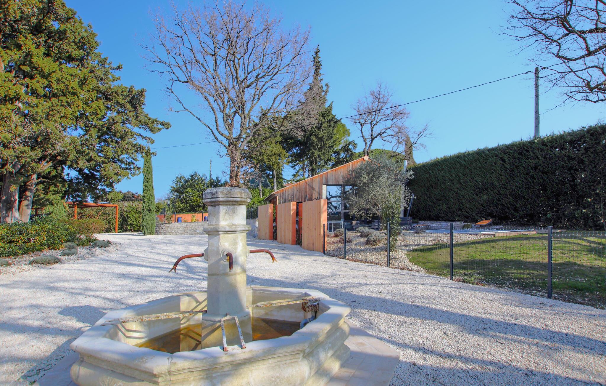 Oplev afslapning og provencalsk charme i dette komfortable feriehus midt i en drømmehave.