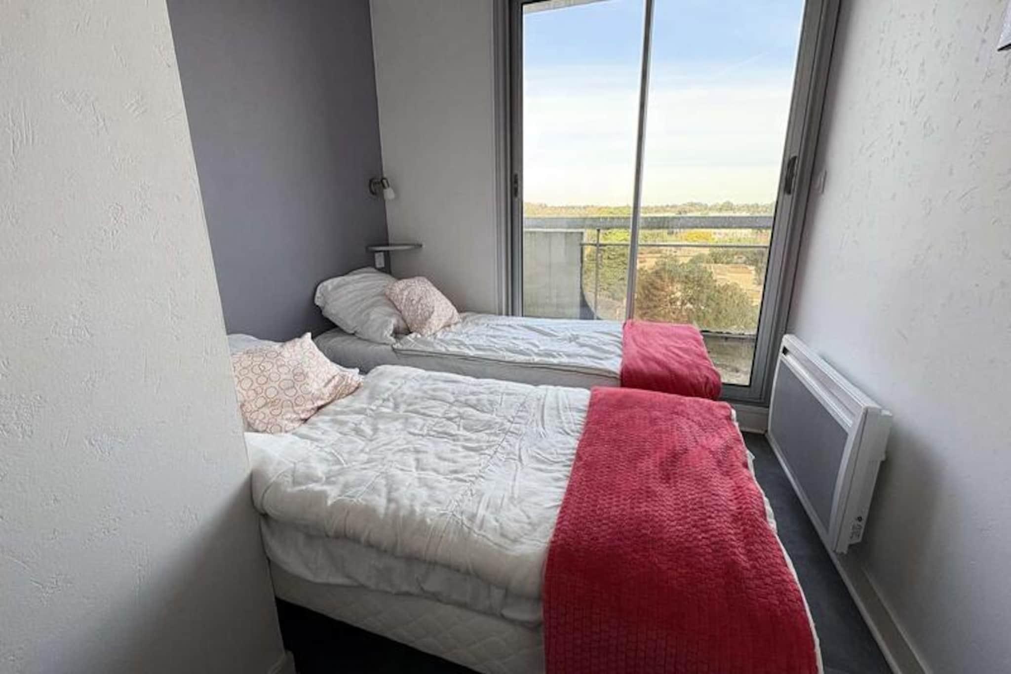 Forestil dig at vågne op til den beroligende lyd af bølger og den endeløse blå horisont, der strækker sig foran dig. Denne fantastiske lejlighed ved havet i La Baule tilbyder en uovertruffen kystferie, beliggende på ottende sal med betagende panoramaudsigt over Atlanterhavet. Den lyse, sydvendte stue er badet i naturligt lys med et karnapvindue, der åbner ud til en privat terrasse, hvor du kan nyde din morgenkaffe eller slappe af med et glas vin, mens solen går ned over havet. Lejlighedens moderne design og perfekte stand gør den til en sand perle for dem, der søger komfort og elegance ved kysten. Dette gennemtænkte rum på 58 m² omfatter et fuldt udstyret åbent køkken, der flyder problemfrit ind i det primære opholdsrum og skaber en indbydende atmosfære til afslapning eller underholdning. Ejendommen har to hyggelige soveværelser: et med to enkeltsenge og et andet med en praktisk udtræksseng, ideel til familier eller små grupper. Et stilfuldt brusebadeværelse med havudsigt og et separat toilet bidrager til bekvemmeligheden. Lejligheden kan prale af ikke én, men to terrasser – en forterrasse med en fantastisk havudsigt og en bagterrasse til et mere privat tilflugtssted. En sikker garage i kælderen sikrer problemfri parkering. Beliggende i hjertet af La Baule, befinder du dig kun få skridt fra den pulserende promenade, sandstrande og charmerende lokale butikker og restauranter. Uanset om du udforsker de nærliggende saltmarske i Guérande, cykler langs de naturskønne kyststier eller forkæler dig selv med regionens udsøgte fisk og skaldyr, placerer denne lejlighed dig i centrum af det hele. Perfekt til en romantisk ferie eller en familieferie, lover denne ejendom uforglemmelige minder ved havet.