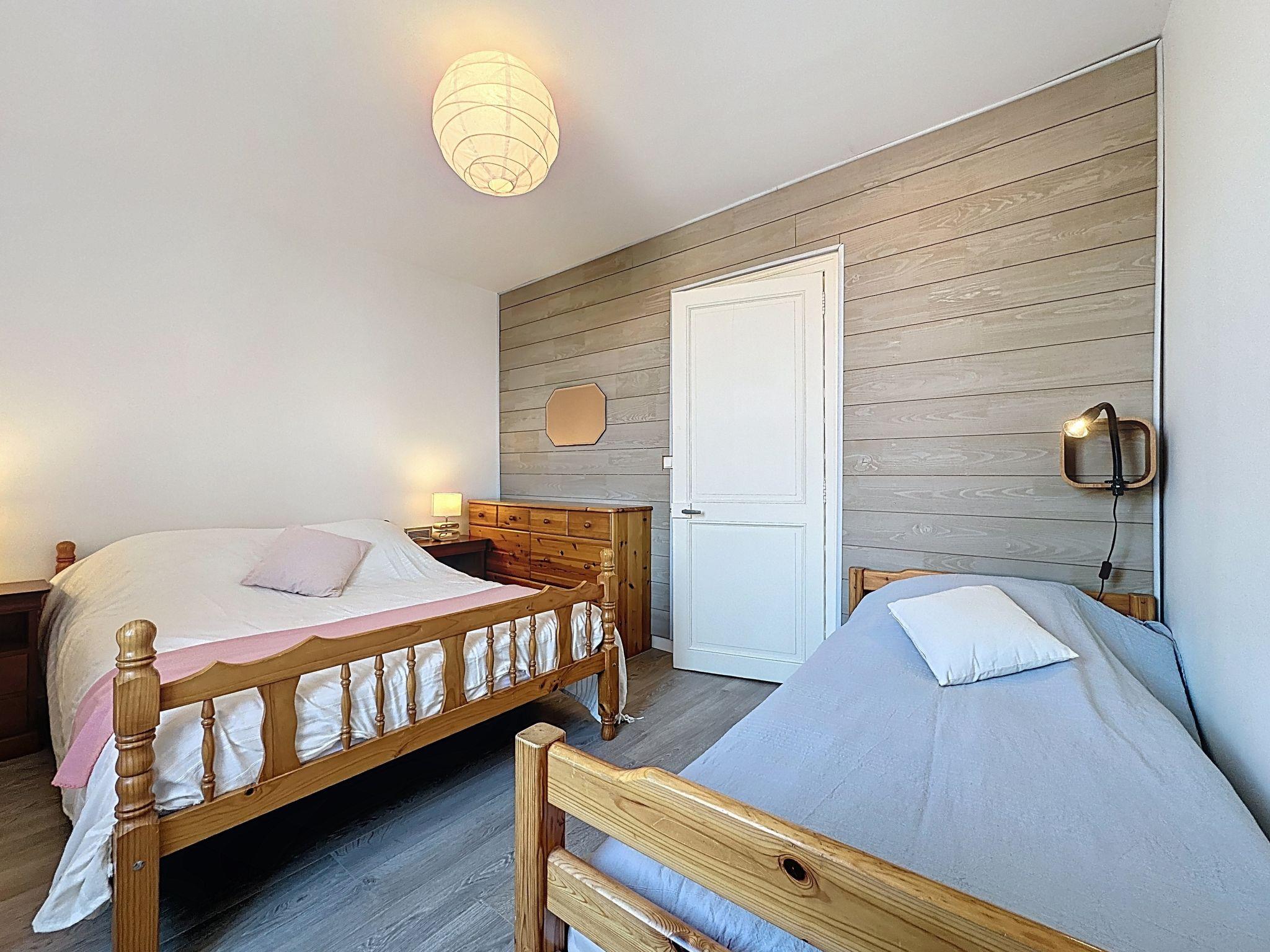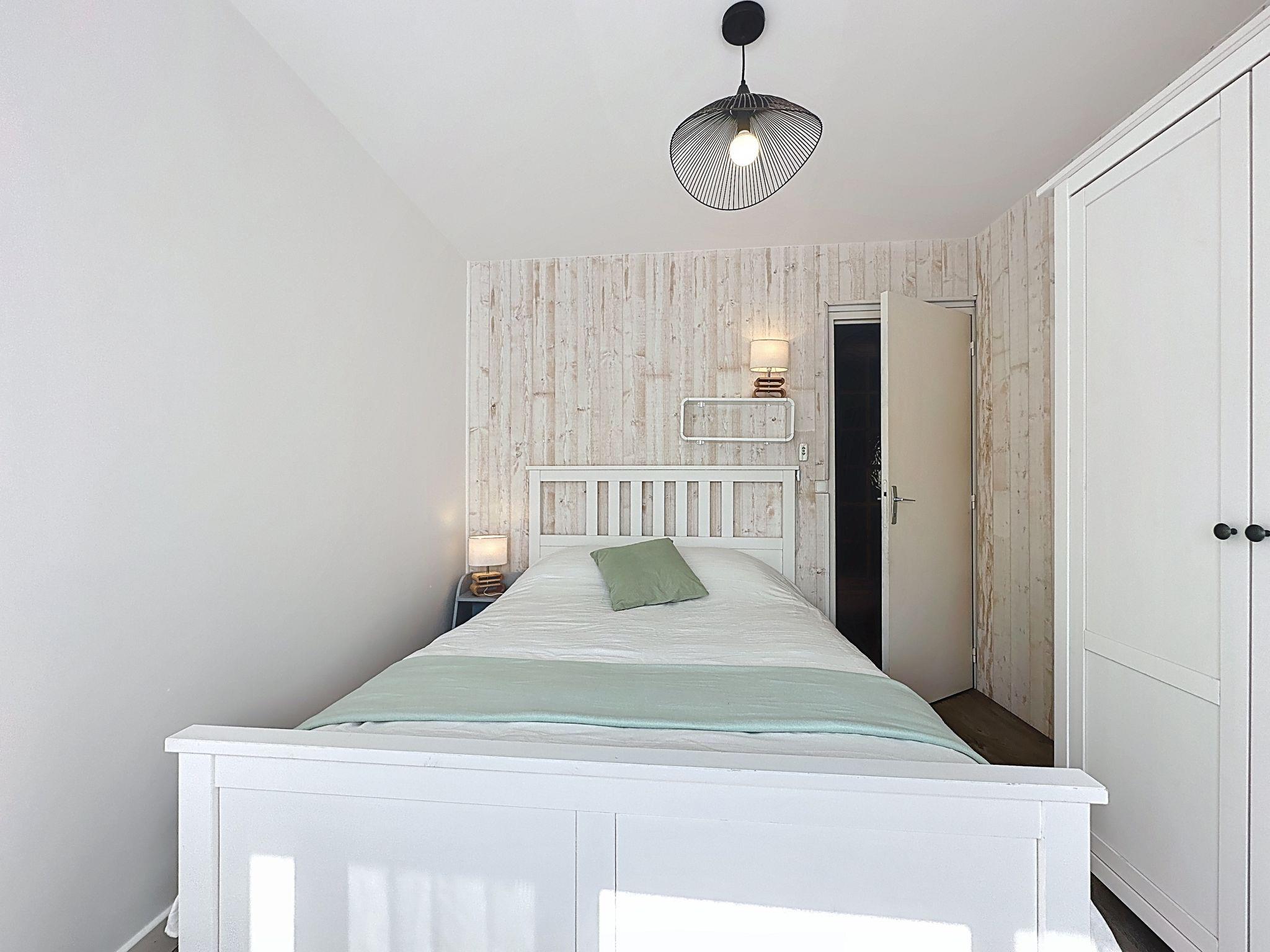 "Les Dunes", 3-room terraced house 76 m2 on 2 levels, west facing position. Living/dining room with TV (flat screen). 1 room with 1 french bed (1 x 140 cm, length 190 cm). Large, open kitchen (oven, dishwasher, 4 ceramic glass hob hotplates, microwave, freezer, electric coffee machine). Shower, sep. WC. Upper floor: gallery with 1 x 2 bunk beds (90 cm, length 190 cm). 1 room with 1 bed (90 cm, length 190 cm), 1 french bed (1 x 140 cm, length 190 cm). Terrace, west facing position, small patio, west facing position. Terrace furniture, barbecue. Facilities: iron, children's high chair, baby cot, hair dryer. Internet (WiFi, free). Please note: non-smoking house, no parking. Maximum 1 small pet/ dog allowed. Smoke alarm. Offer by a private individual according to Art. 155, IV of CGI. 44012000257RR