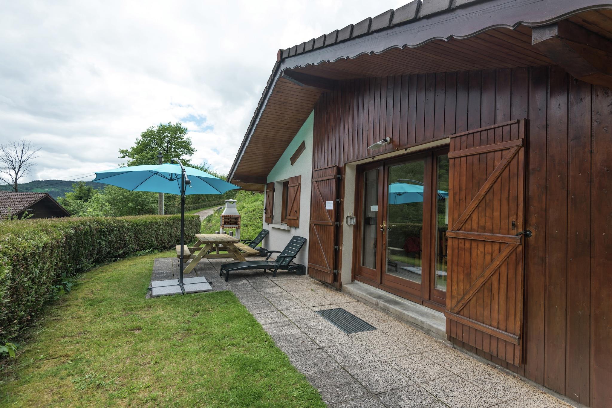 På kanten af et populært feriested kaldet La Bresse ligger denne træhytte i et chalet deveelopment. De hyggeligt indrettede hytter er rummeligt indrettede og har en terrasse på forsiden og siden af boligen, havemøbler og grill.