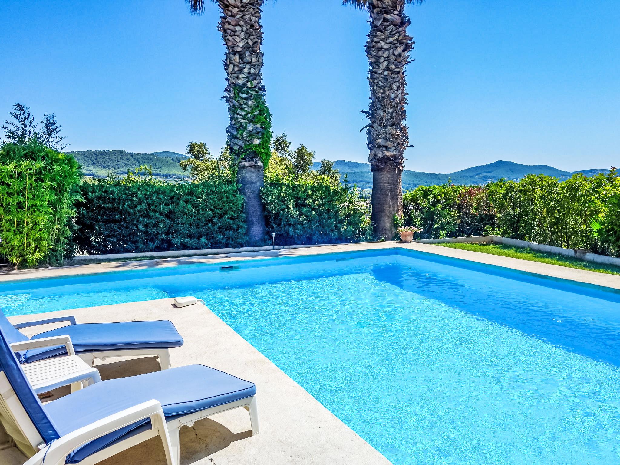 4-room house 130 m2. Spacious and bright, comfortable and beautiful furnishings: living/dining room with TV and DVD. Exit to the terrace, to the swimming pool. 2 rooms, each room with 1 french bed (1 x 160 cm, length 200 cm). Open kitchen (oven, dishwasher, 3 induction hot plates, microwave, freezer, electric coffee machine, Capsules for coffee machine (Senseo) extra) with bar. Shower/WC. Air-conditioning. Upper floor: 1 room with 1 french bed (140 cm, length 190 cm), shower/WC, air conditioning and forced-air heating. Exit to the balcony. Balcony 6 m2, south-west facing position, terrace 30 m2 partly roofed, south-west facing position. Terrace furniture, barbecue. Beautiful view of the sea and the countryside. Facilities: washing machine, iron. Internet (WiFi, extra). Please note: TV only FR. Smoke alarm. Offer by a private individual according to Art. 155, IV of CGI.