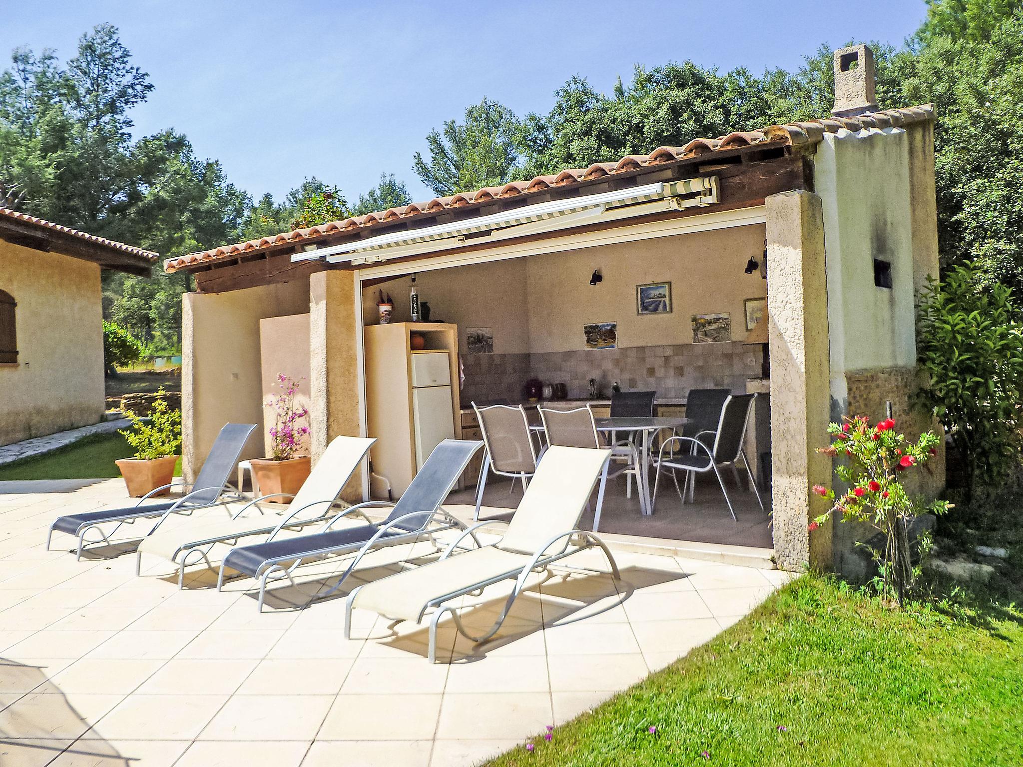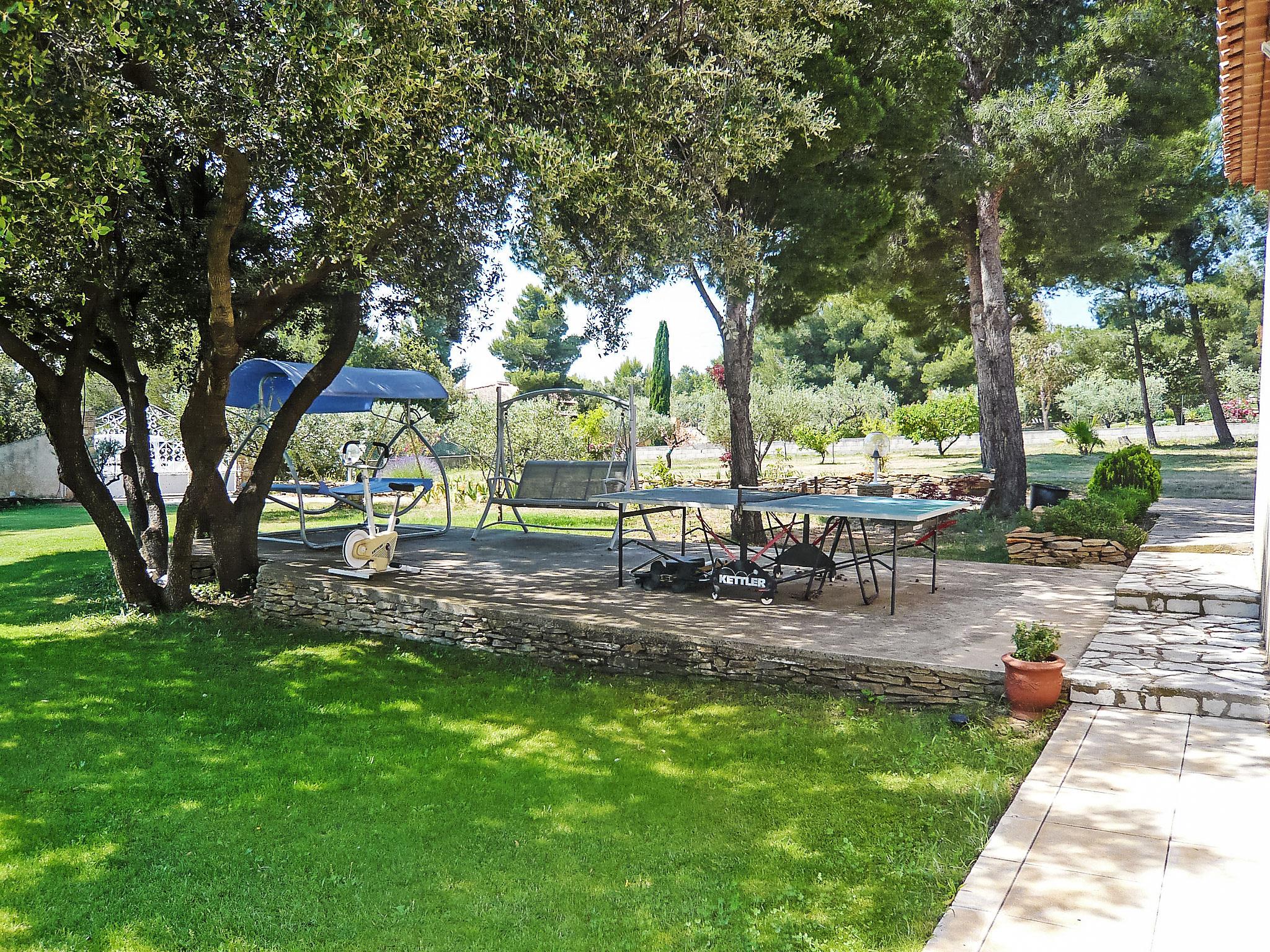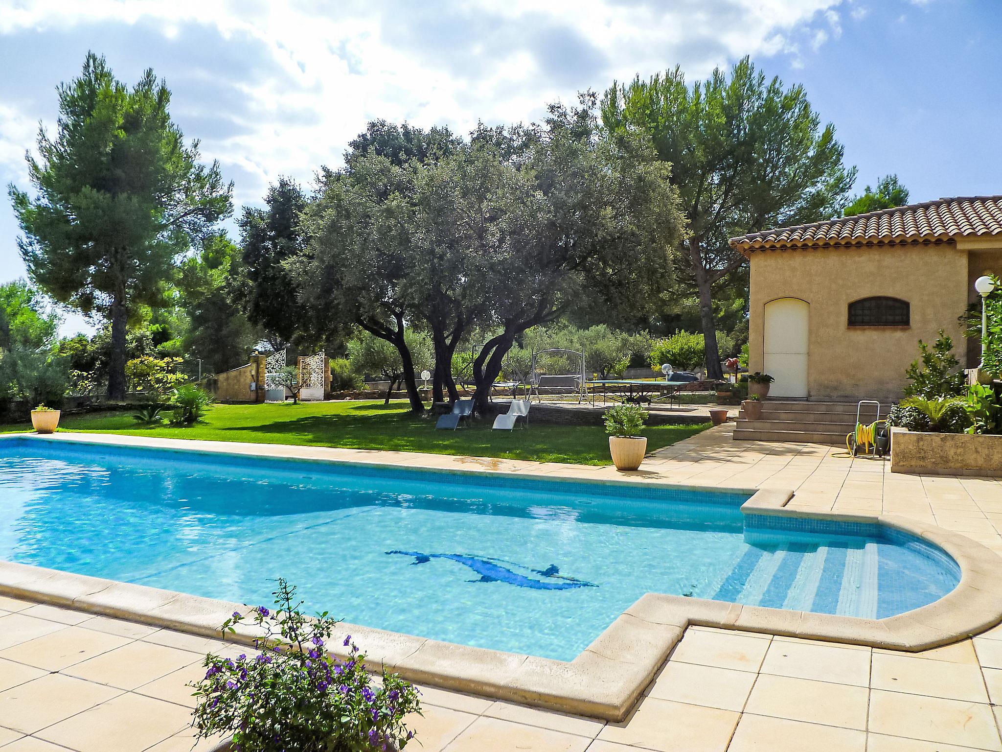 6 km from La Cadière d'Azur: Single-family house "La Péguière". In a quiet position in the residential district, 4 km from the sea. Private: property 5'000 m2 (fenced) with lawn 1'000 m2, beautiful garden to relax, swimming pool (12 x 7 m, depth 150 - 325 cm, seasonal availability: 19.Jun. - 04.Sep.) with alarm system. Pool house with fridge, shower, WC and cooking stove, boules, fireplace. Shop 6 km, supermarket 4 km, restaurant 6 km, café 6 km, bus stop "La Malissone" 4 km, railway station "Saint Cyr Sur Mer/ La Cadière" 3 km. Sports harbour 5 km, golf course (18 hole) 8 km. Hiking paths: Sainte Baume et Sainte Victoire, Calanques Port-Cros, Porquerolles, Ile verte, Embiez, Figuerolles, Cassis. Please note: car recommended.