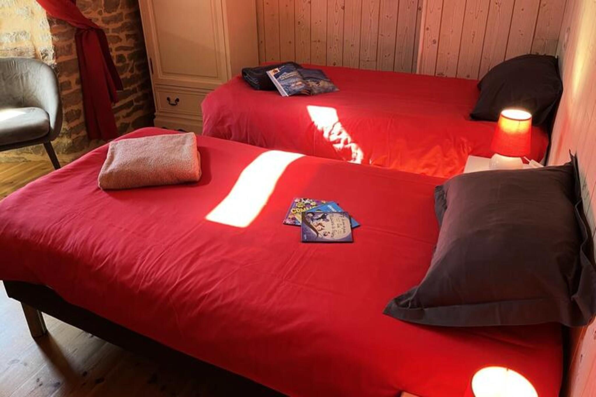Dette charmerende feriehus har to hyggelige gîtes, ideel til små familier eller grupper. Gîte "La Prairie" tilbyder 1 soveværelse med en 140 cm seng, eget badeværelse og et selvstændigt toilet. Anden sal har en 140 cm seng og to 90 cm enkeltsenge. Ejendommen er kæledyrsvenlig og tillader op til to små dyr uden ekstra beregning. Det giver alle nødvendige faciliteter, herunder et tv, klaver og adgang til en privat gårdhave med havemøbler. Der er privat parkering i nærheden. Beliggende nær La Canourgue i det fredfyldte Montet-område, er ejendommen omgivet af rolig natur, hvilket gør den perfekt for dem, der søger fred. Gæsterne kan nyde nærliggende attraktioner såsom lokale caféer, restauranter og markeder. Selvom der ikke er nogen autocamperparkering, er der en ladestation til elbiler placeret i nærheden i La Canourgue. Gîten har et fuldt udstyret køkken med vaskemaskine, mikroovn, køleskab, opvaskemaskine, induktionskomfur og ovn. Andre faciliteter omfatter en trækedelplade til opvarmning og en fælles swimmingpool kun 500 meter væk. Sengelinned, håndklæder og rengøring er alle inkluderet i prisen, hvilket sikrer et behageligt og problemfrit ophold.