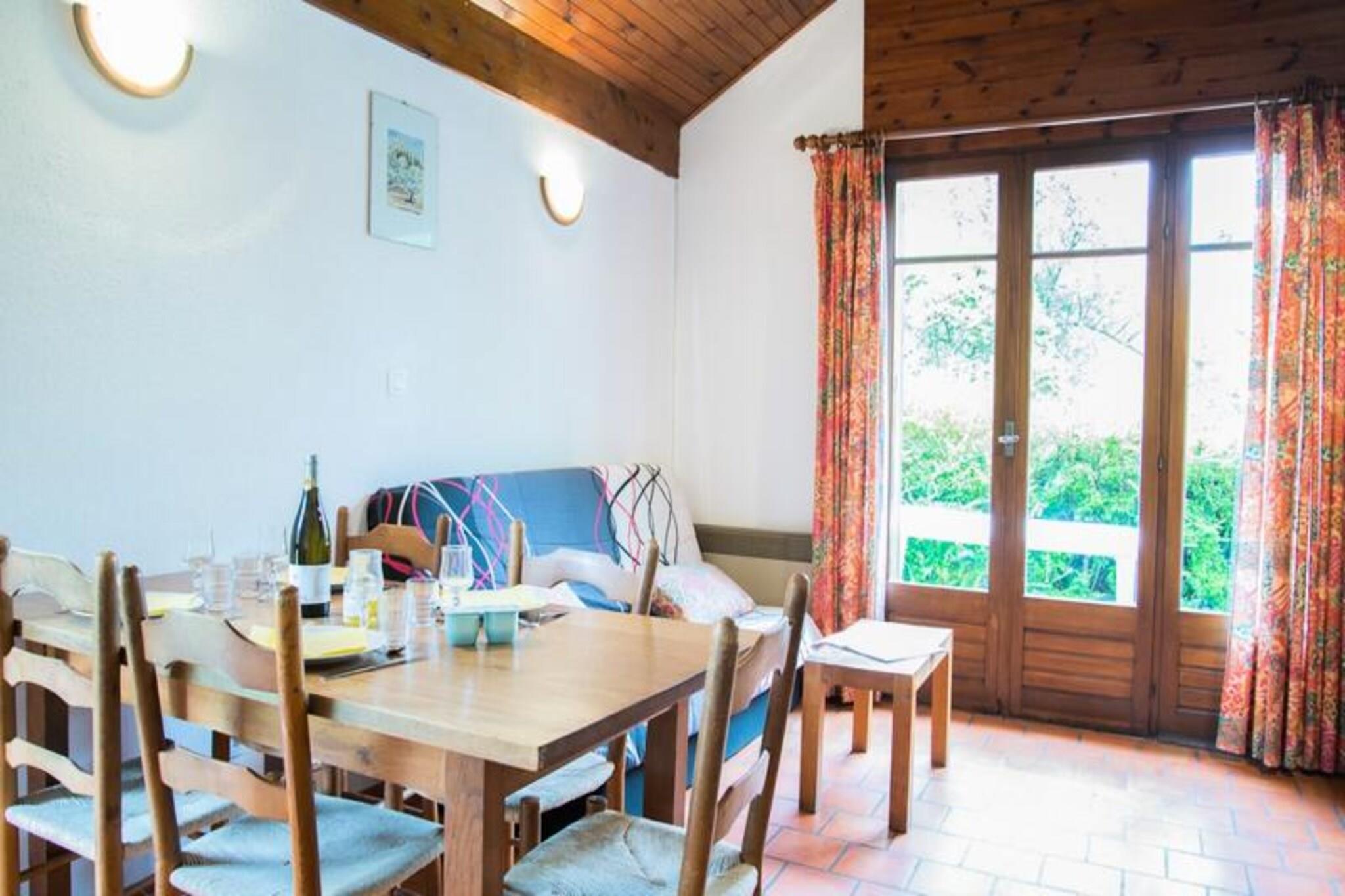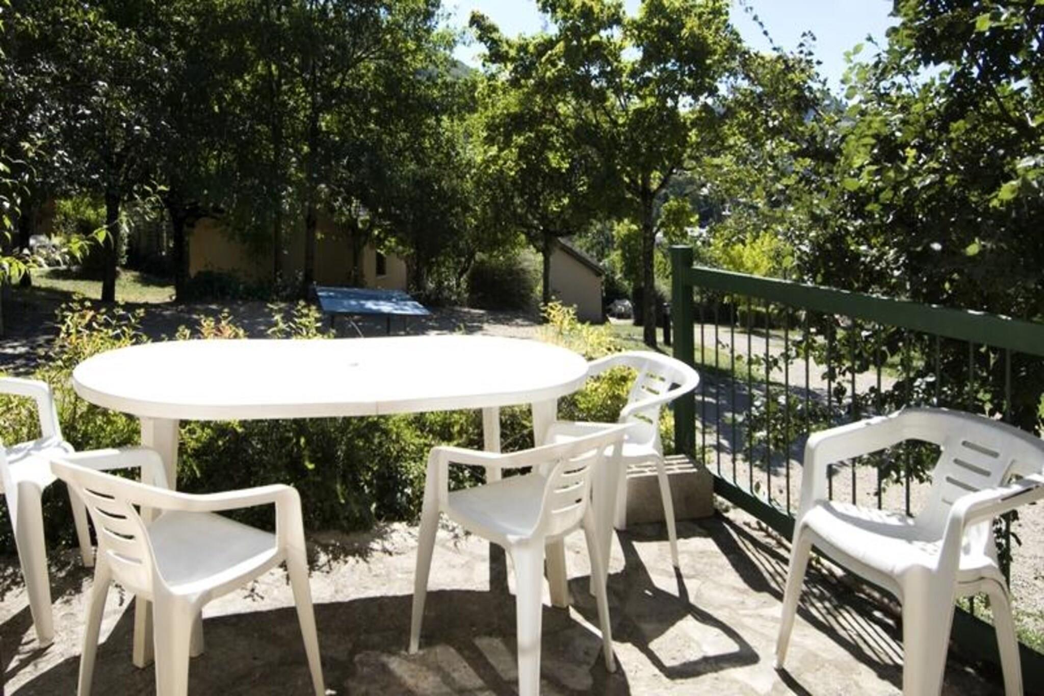 Midt i Lozères bølgende bakker tilbyder denne charmerende ferielandsby en fredfyldt tilflugtssted omgivet af frodigt grønt og rolige landskaber. Kun en kort gåtur væk ligger den maleriske landsby La Canourgue, kærligt kendt som "Lozères lille Venedig", hvor brostensbelagte gader, kanaler og pulserende ugentlige markeder skaber en fortryllende atmosfære. Uanset om du søger afslapning eller eventyr, tilbyder denne destination den perfekte balance mellem begge dele. \n\nIndkvarteringen er omhyggeligt designet til komfort og tilbyder 38 m² plads, der er ideel til 4 til 6 gæster. Indenfor finder du et fuldt udstyret tekøkken med moderne apparater, herunder køleskab med fryser, opvaskemaskine, ovn og mikrobølgeovn, hvilket gør det nemt at tilberede måltider. Stuen har en hyggelig dobbeltsovesofa, mens de to soveværelser tilbyder fleksible sovepladser med en dobbeltseng og enten enkeltsenge eller køjesenge. En privat terrasse eller balkon med havemøbler inviterer dig til at slappe af og nyde de fredelige omgivelser. \n\nFaciliteterne på stedet inkluderer en forfriskende swimmingpool, en legeplads og rigelige grønne områder til afslappende gåture eller picnics. I nærheden tilbyder La Canourgue et væld af aktiviteter såsom tennis, golf, fiskeri og en trætop-eventyrpark. For naturentusiaster kan den omkringliggende Lozère-region prale af betagende vandrestier, floder og naturskønne udsigter. \n\nUanset om du planlægger en familieferie eller en romantisk oase, kombinerer denne ferielandsby moderne komfort med den tidløse charme i Sydfrankrig og lover et uforglemmeligt ophold i hjertet af naturen.