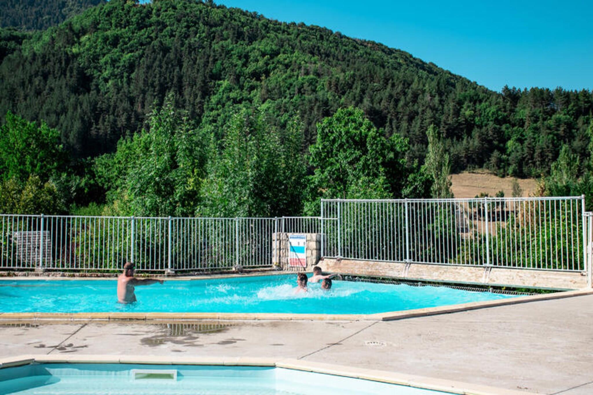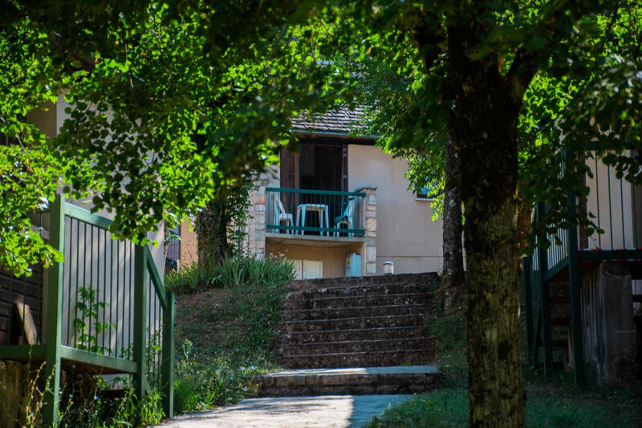 Denne charmerende ferielandsby, der ligger midt i Lozères bølgende bakker, tilbyder en rolig oase omgivet af frodigt grønt og fredfyldte landskaber. Ejendommen er perfekt til både familier og par og kombinerer naturens skønhed med moderne komfort og skaber et indbydende tilflugtssted for afslapning og eventyr. Den nærliggende landsby La Canourgue, kærligt kendt som "Lozères lille Venedig", tilføjer et strejf af charme med sine kanaler, ugentlige markeder og pulserende lokalkultur. Uanset om du slentrer gennem de maleriske gader eller nyder en dag med fiskeri, tennis eller golf, er der noget for enhver smag her. \n\nHver bolig er omhyggeligt designet for at sikre komfort og bekvemmelighed. Lejlighederne, der spænder fra hyggelige 25 m² store rum til to personer til større enheder til fire gæster, har et fuldt udstyret tekøkken med køleskab med fryser, opvaskemaskine, kogeplader, ovn, mikrobølgeovn og kaffemaskine. Stuen har en dobbelt sovesofa, mens soveværelset har en komfortabel dobbeltseng. En privat terrasse eller balkon med havemøbler inviterer dig til at slappe af og nyde de fredelige omgivelser. Yderligere faciliteter såsom varme og sengelinned er inkluderet, med mulighed for tv-udlejning og håndklædeservice efter anmodning.\n\nGæsterne kan nyde den fælles swimmingpool, kun 2 kilometer væk, eller udforske den nærliggende trætop-eventyrpark for en spændende oplevelse. Regionen er et paradis for friluftsentusiaster og tilbyder vandrestier, cykelruter og en betagende udsigt over det omkringliggende landskab. Med sin blanding af naturlig skønhed og lokale attraktioner er denne ferielandsby den perfekte base for at skabe uforglemmelige minder i hjertet af Lozère.
