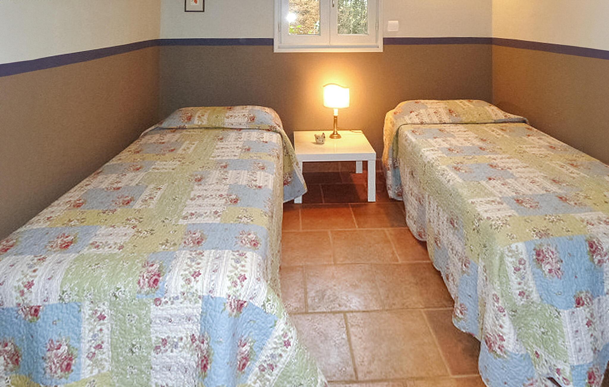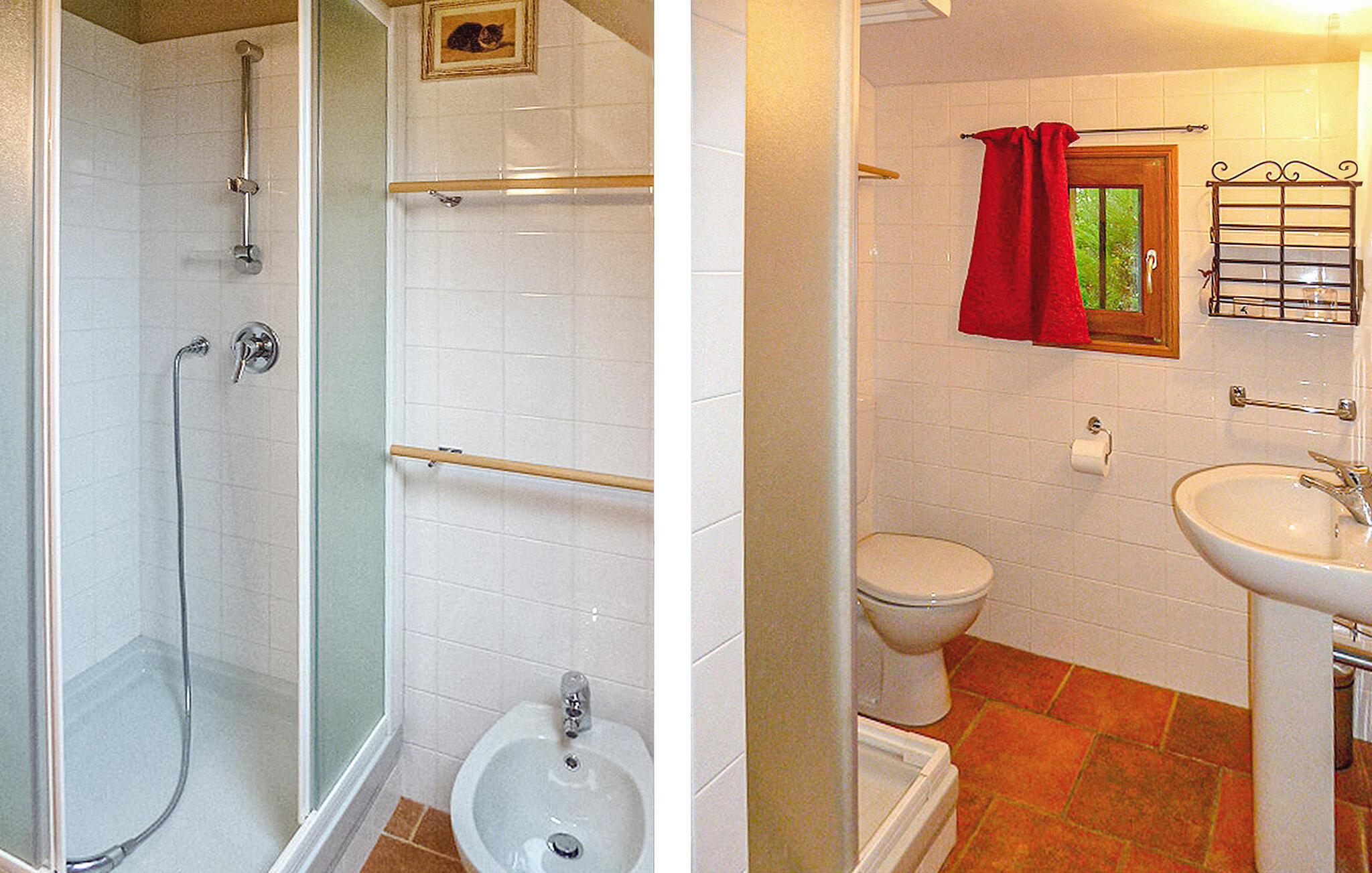 Dette rummelige feriehus ligger på landet i hjertet af Perigord, Dordogne på en skovklædt 2 hektar stor grund. Den lyse entré med karnapper giver udsigt over landskabet. Opholdsstuen omfatter køkken og opholdsområde, hvor du kan slappe af, mens du ser en film. Der er et soveværelse og badeværelse i stueetagen, mens de øvrige værelser er på første sal. Gå udenfor for at udforske de skovklædte grunde og græsplænen, eller bare udforske nogle udendørs spisning på grillen. Feriehuset ligger ca. 1 km fra landsbyen La Chapelle Aubareil, hvor du finder bager, restaurant og tennisbane. Bemærk venligst: Ejerne bor på stedet i et selvstændigt hus tæt på lejeboligen. En anden feriebolig (6 sovepladser, med pool) ligger 20 m væk. Ejerne tilbyder to madlavningslektioner per ophold (Italia pr. favor) og mere efter anmodning. Nyd din ferie i Dordogne i Quercy - Périgord.