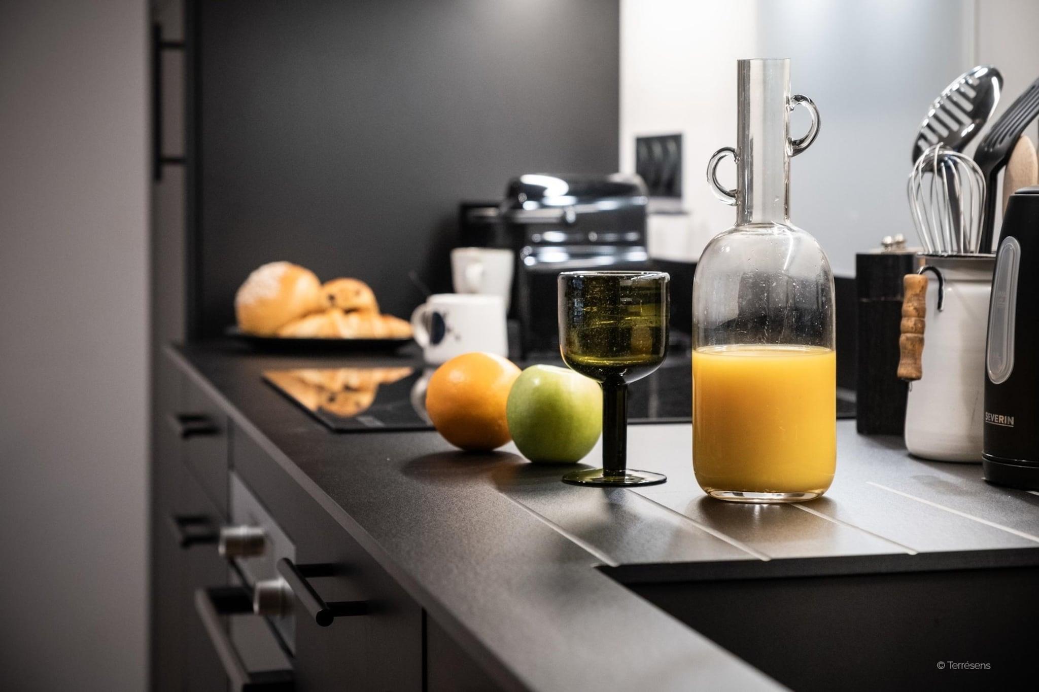 Stue(dobbeltsovesofa(140 x 200 cm), Fjernsyn(fladskærm), sofahjørne), åbent køkken(kogeplade(glaskeramisk), elkedel, brødrister, kaffemaskine, ovn, mikrobølgeovn, opvaskemaskine , køleskab, ), soveværelse(dobbeltseng(160 x 200 cm)), soveværelse(enkeltseng(80 x 200 cm), enkeltseng(80 x 200 cm)), badeværelse(badekar eller bruser), toilet(toilet), balkon
