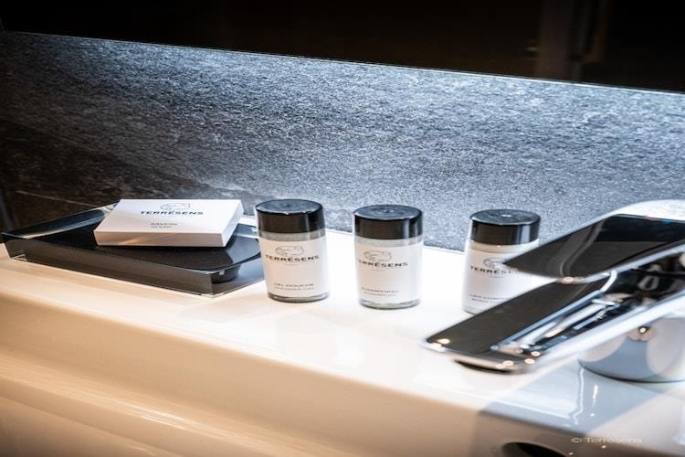Stue(dobbeltsovesofa(140 x 200 cm), Fjernsyn(fladskærm), sofahjørne), åbent køkken(kogeplade(glaskeramisk), elkedel, brødrister, kaffemaskine, ovn, mikrobølgeovn, opvaskemaskine , køleskab, ), soveværelse(dobbeltseng(160 x 200 cm)), soveværelse(enkeltseng(80 x 200 cm), enkeltseng(80 x 200 cm)), Hytte(køjeseng(80 x 200 cm)), badeværelse(badekar eller bruser), badeværelse(badekar eller bruser), toilet(toilet), balkon eller terrasse