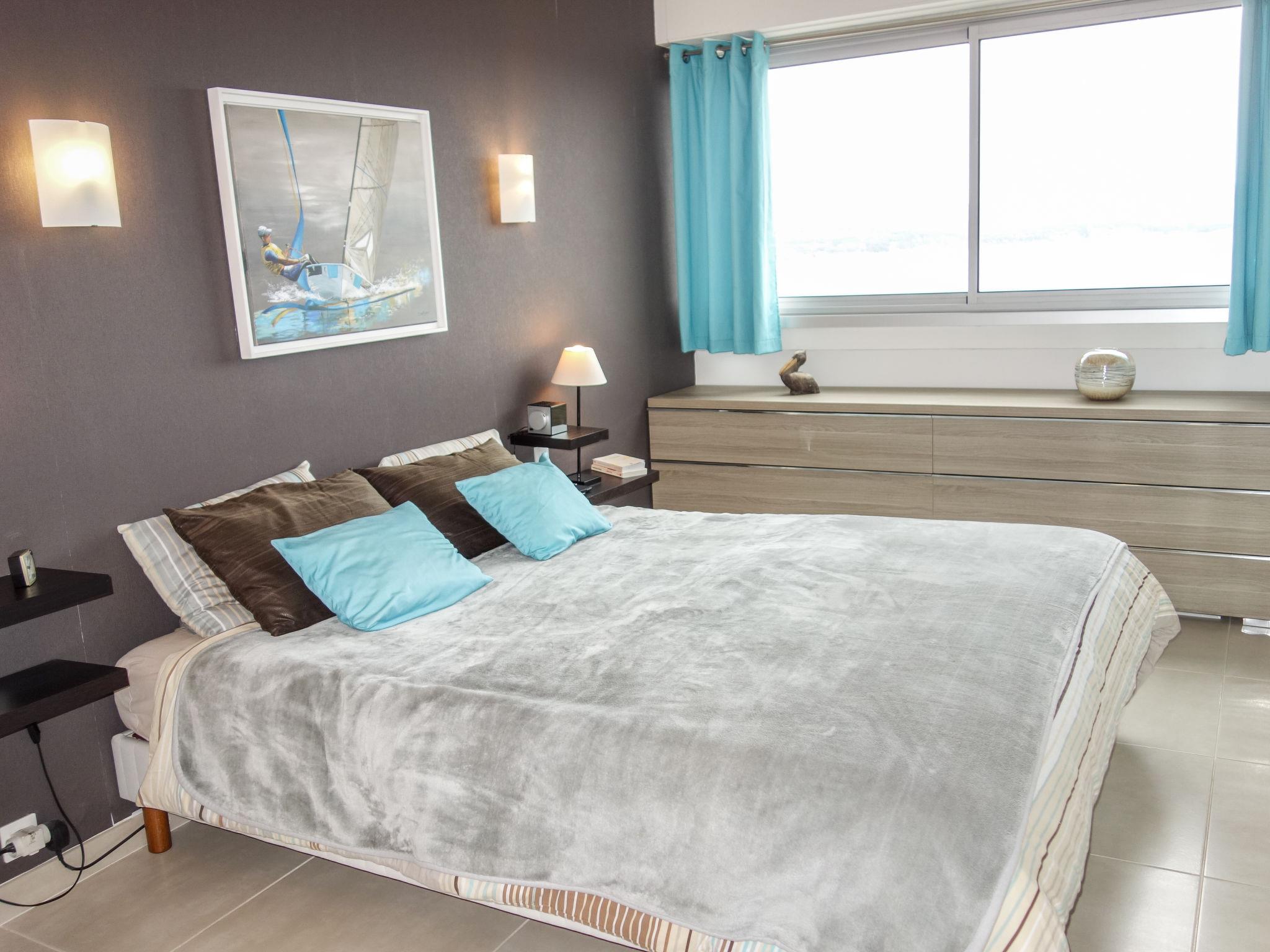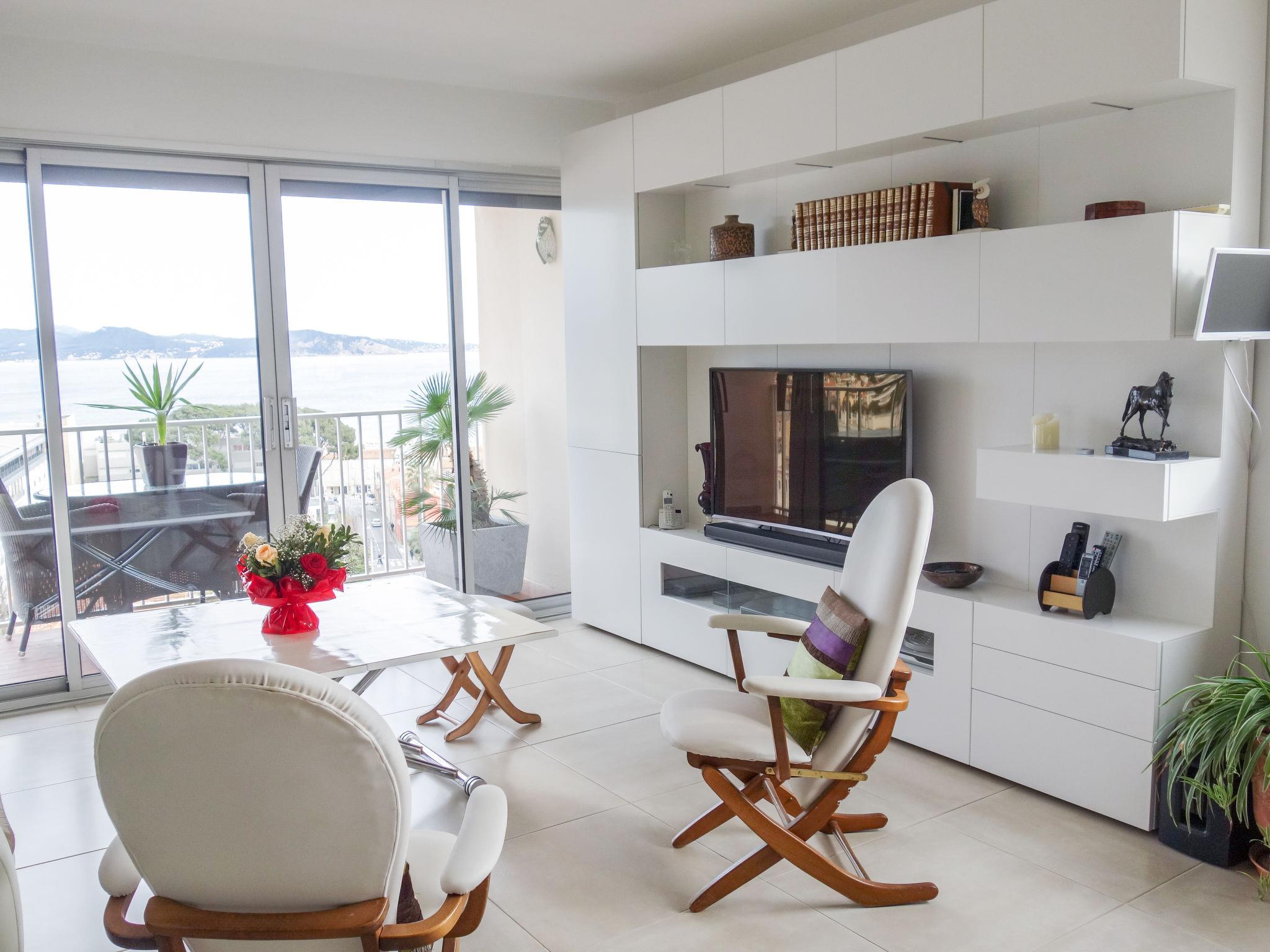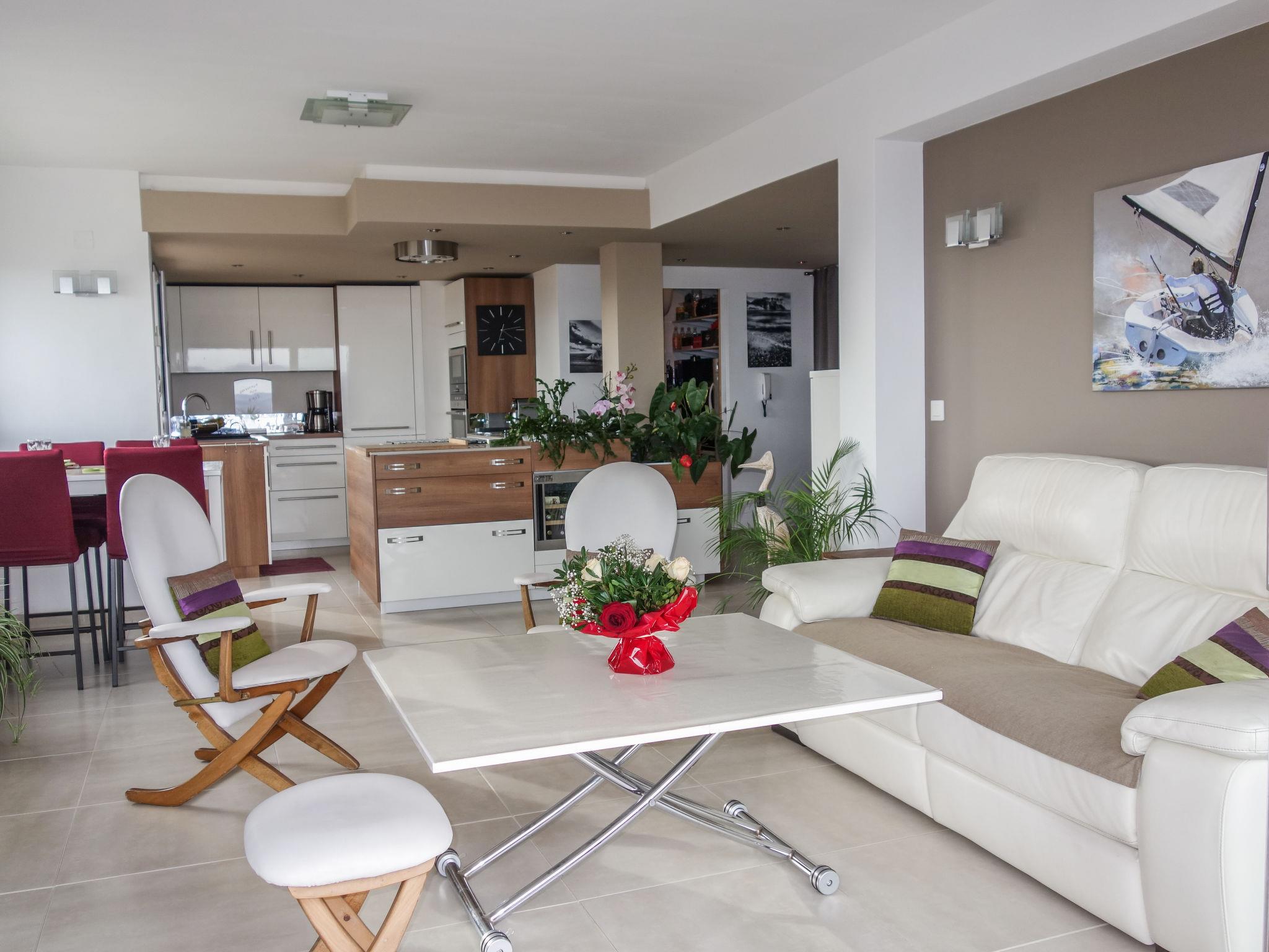 3-room apartment 80 m2 on 9th floor. Beautiful and modern furnishings: living/dining room with TV (flat screen), air conditioning. Exit to the terrace. 1 room with 1 double bed (2 x 80 cm, length 200 cm), TV. 1 room with 2 beds (90 cm, length 200 cm). Open kitchen (oven, dishwasher, 4 induction hot plates, toaster, kettle, microwave, freezer, electric coffee machine, Capsules for coffee machine (Nespresso) extra). Shower, sep. WC. Forced-air heating. Terrace 7 m2, roofed, east facing position. Terrace furniture. Marvellous panoramic view of the sea. Facilities: washing machine, dryer, iron. Internet (WiFi, free). Parking space n 7. Please note: TV only FR. Smoke alarm. 13028 000644 FA