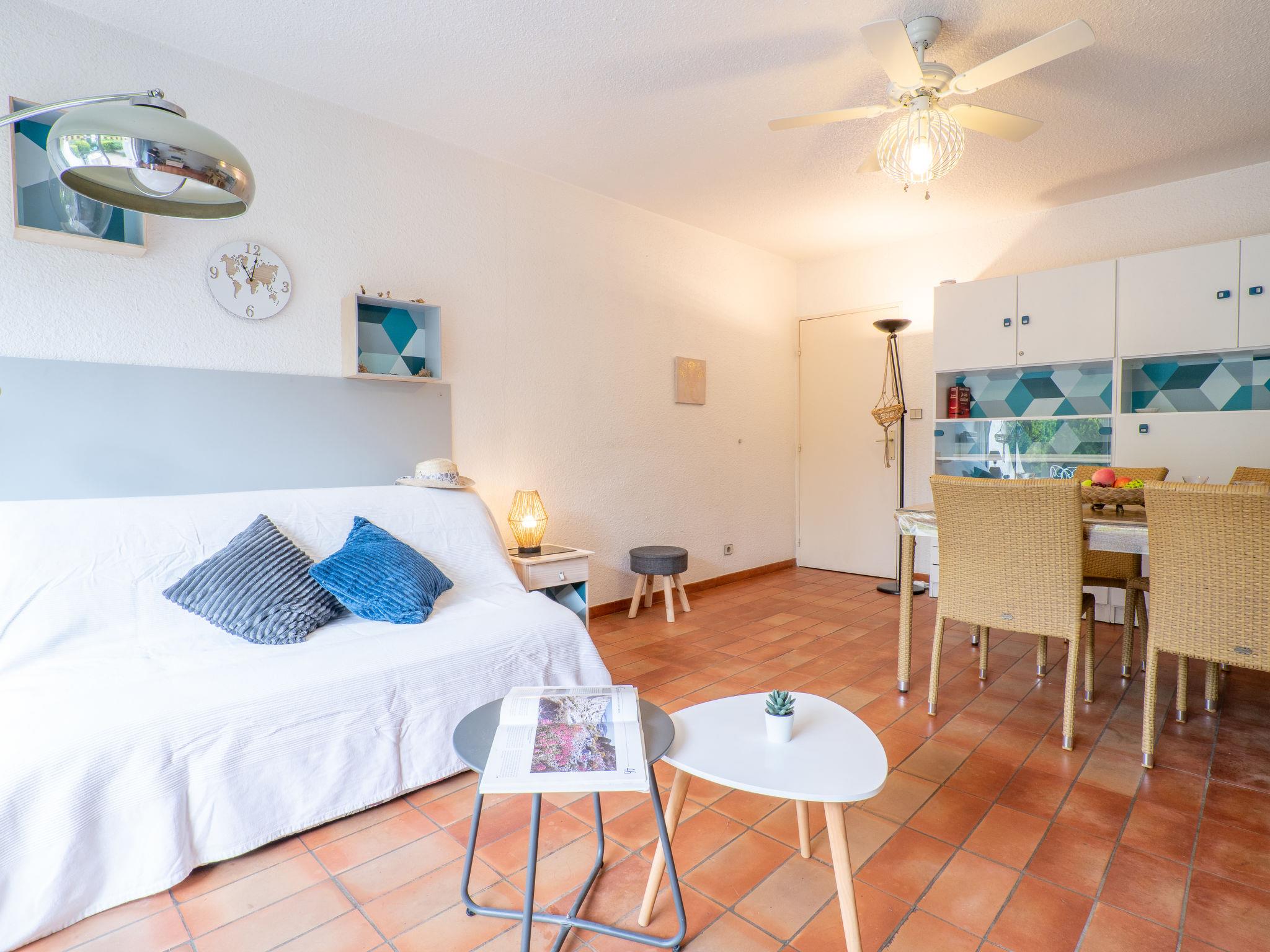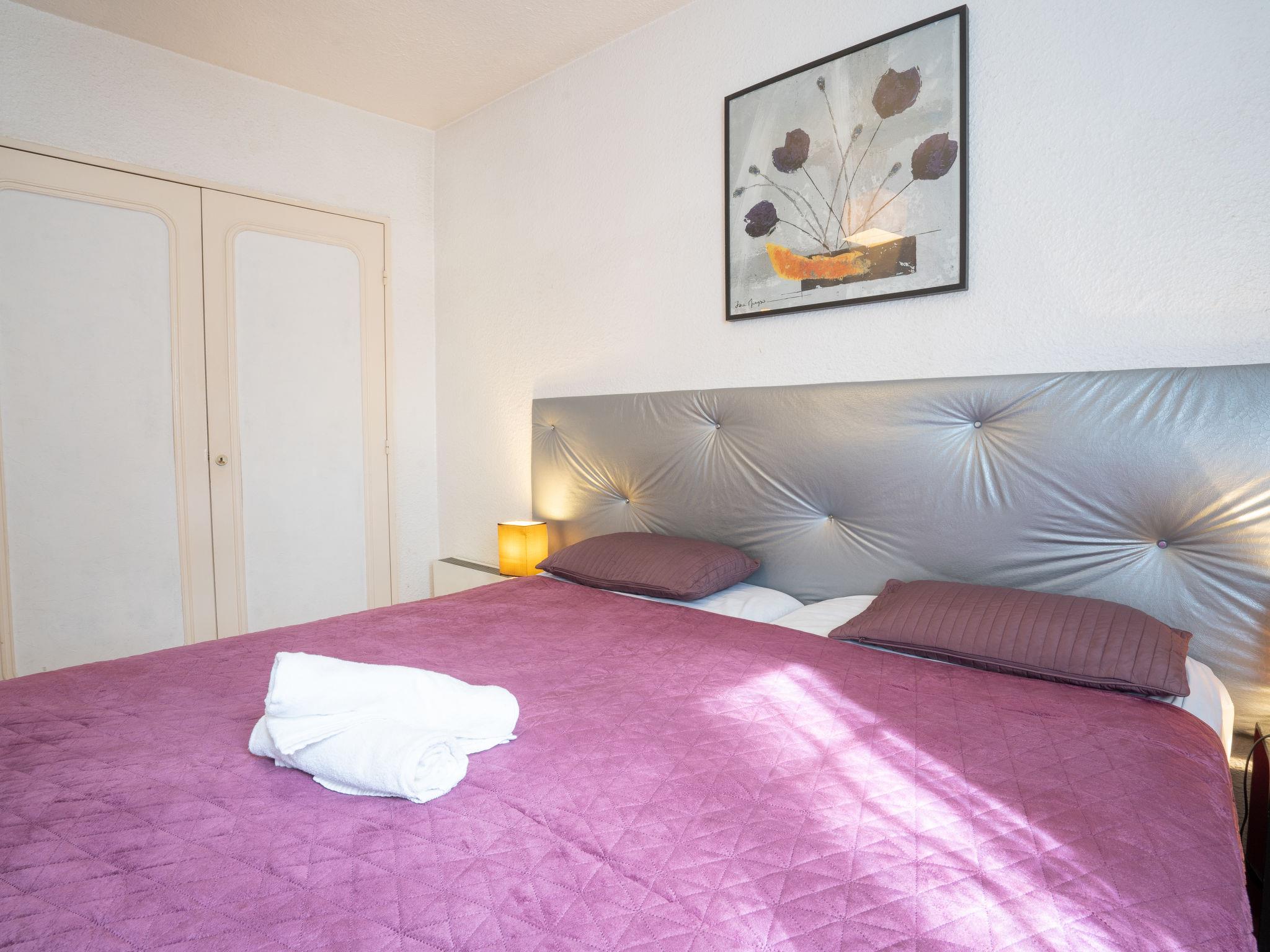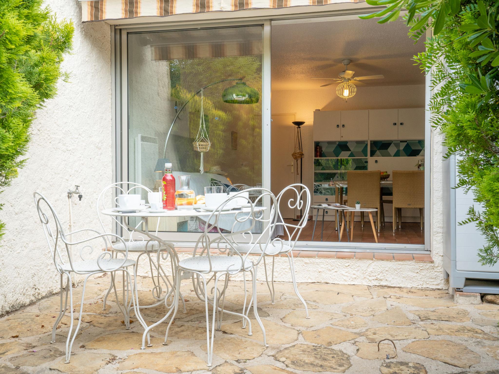 2-room apartment 46 m2, on the ground floor. Beautiful furnishings: living/dining room with panoramic window with 1 double sofabed (160 cm, length 190 cm), TV (flat screen), DVD. Exit to the terrace. 1 room with 2 beds (90 cm, length 190 cm). Small kitchen (oven, dishwasher, 2 induction hot plates, toaster, kettle, microwave, electric coffee machine). Bathroom, sep. WC. Electric heating. Terrace 15 m2, patio 15 m2, south facing position. Terrace furniture. Facilities: washing machine. Internet (WiFi, free). Parking space n 24. Please note: 1 small pet/ dog allowed. TV only FR. Smoke alarm. 13028000478SW