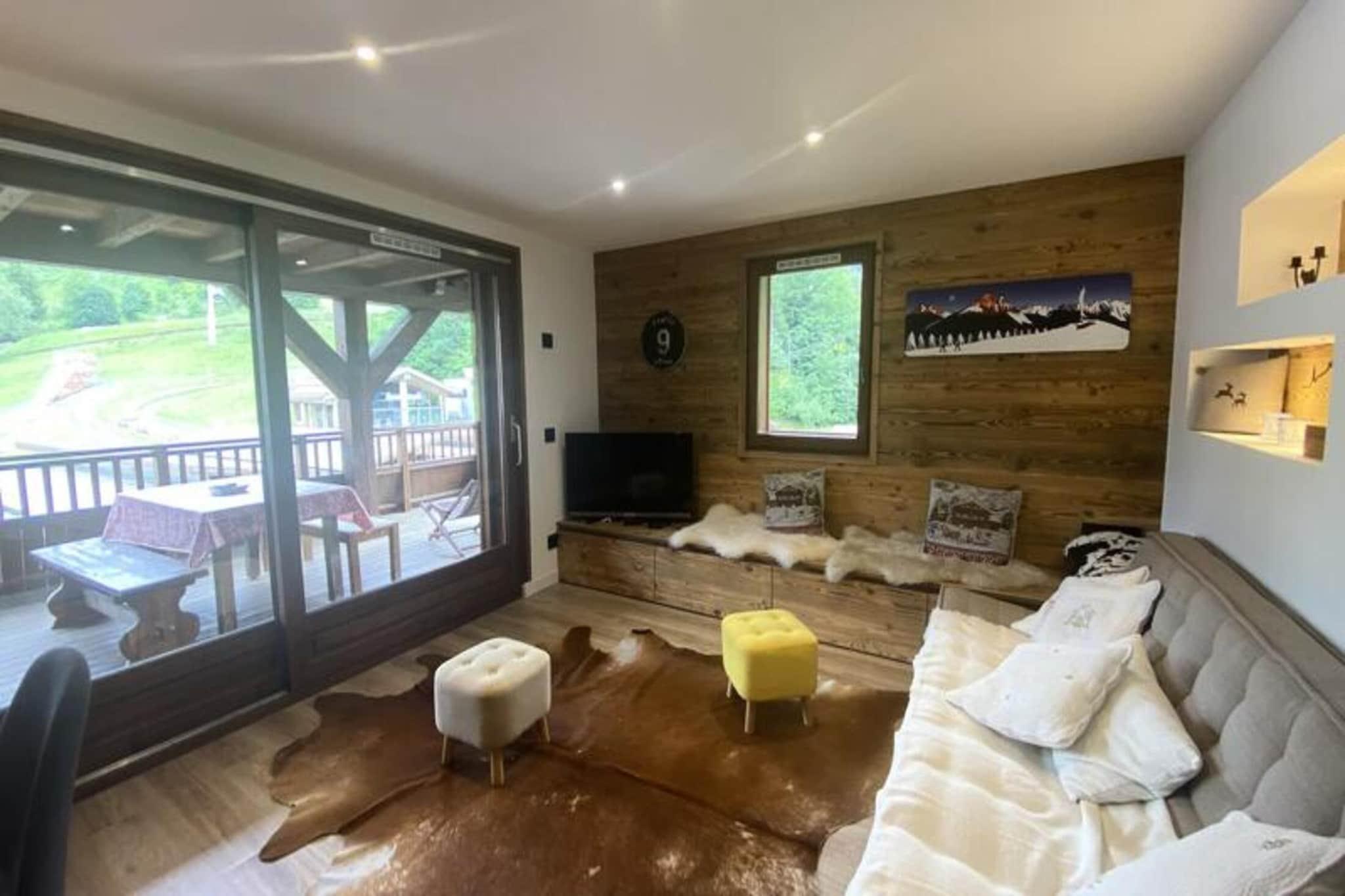 Ejendommen tilbyder sammen med dens moderne bekvemmeligheder en rummelig lejlighed på 64 m² ideel til op til 7 gæster. Stuen er indrettet med sofa, fladskærms-tv og brændeovn, hvilket skaber en hyggelig atmosfære. En stor sydvendt terrasse på 32 m² med udendørsmøbler giver gæsterne mulighed for at slappe af, mens de nyder udsigten over landsbyen og de nærliggende pister. Lejligheden indeholder tre soveværelser, hvoraf to er indrettet med dobbeltsenge, og et tredje værelse med en enkeltseng og to køjesenge. Yderligere faciliteter såsom vaskemaskine, tørretumbler og Wi-Fi tilbydes, men kæledyr er ikke tilladt. Lejligheden er ikke-ryger, og lagner og linned kan lejes mod et tillægsgebyr. Beliggende i hjertet af landsbyen giver denne bolig direkte adgang til Champ Giguet-skiløjperne, kun få skridt fra ESF-skiskolen og skøjtebanen. Gæster kan nemt få adgang til nærliggende butikker og restauranter, hvilket øger beliggenhedens bekvemmelighed. Busstationen ligger kun 300 meter væk, og den nærmeste SNCF-togstation ligger 32 kilometer væk, hvilket sikrer bekvemme rejseforbindelser til de omkringliggende områder. Lejligheden tilbyder den perfekte base for både vintersportsentusiaster og dem, der ønsker at udforske regionens naturlige skønhed. Lejlighedens køkken er fuldt udstyret med moderne apparater, herunder induktionskomfur, ovn, køleskab med fryser, mikroovn, opvaskemaskine og en Nespresso-maskine. Et spisebord i træ giver plads til måltider, og opholdsstuen har en stor karnap med udsigt over landsbyen og bjergene. Yderligere funktioner inkluderer en privat overdækket parkeringsplads, et fælles skirum til opbevaring af udstyr og elektrisk gulvvarme, hvilket sikrer komfort under dit ophold. Ejendommen er også udstyret med et fælles skirum for nemheds skyld.
