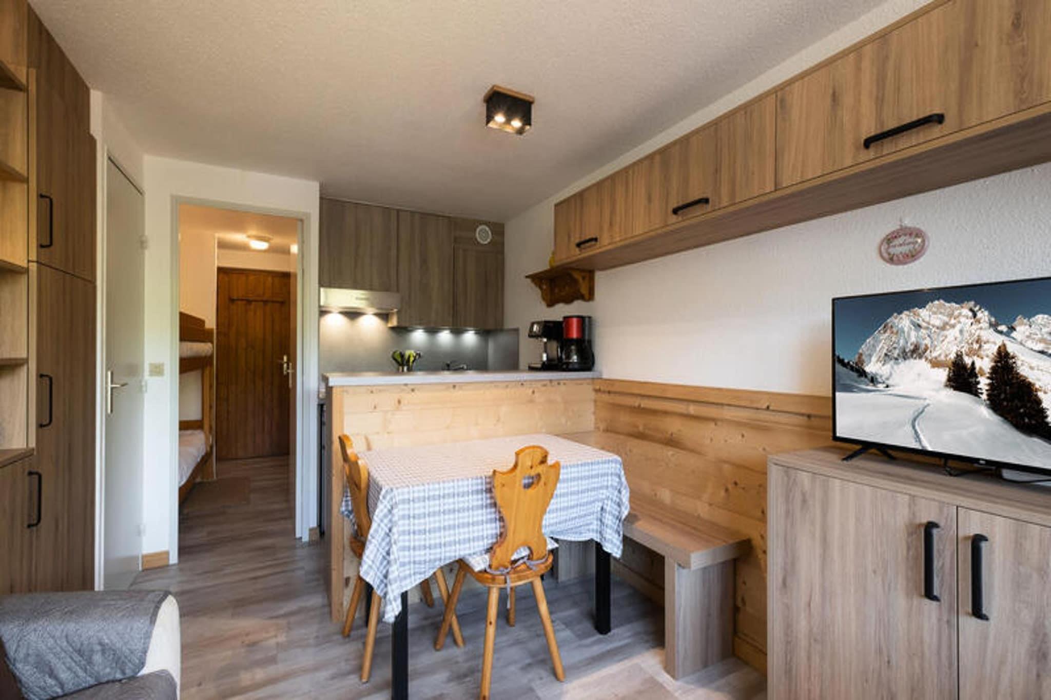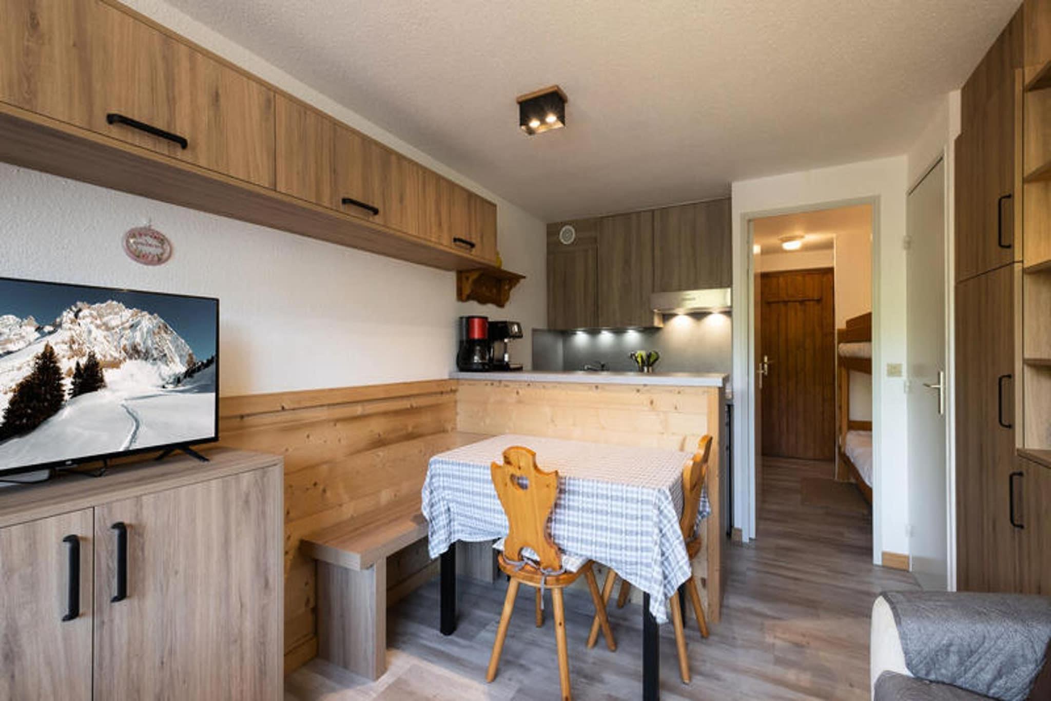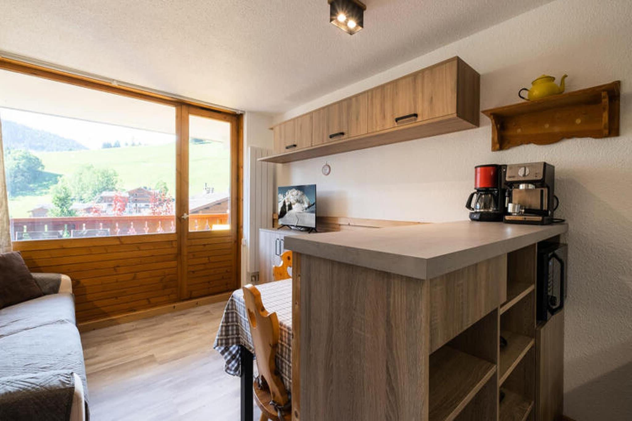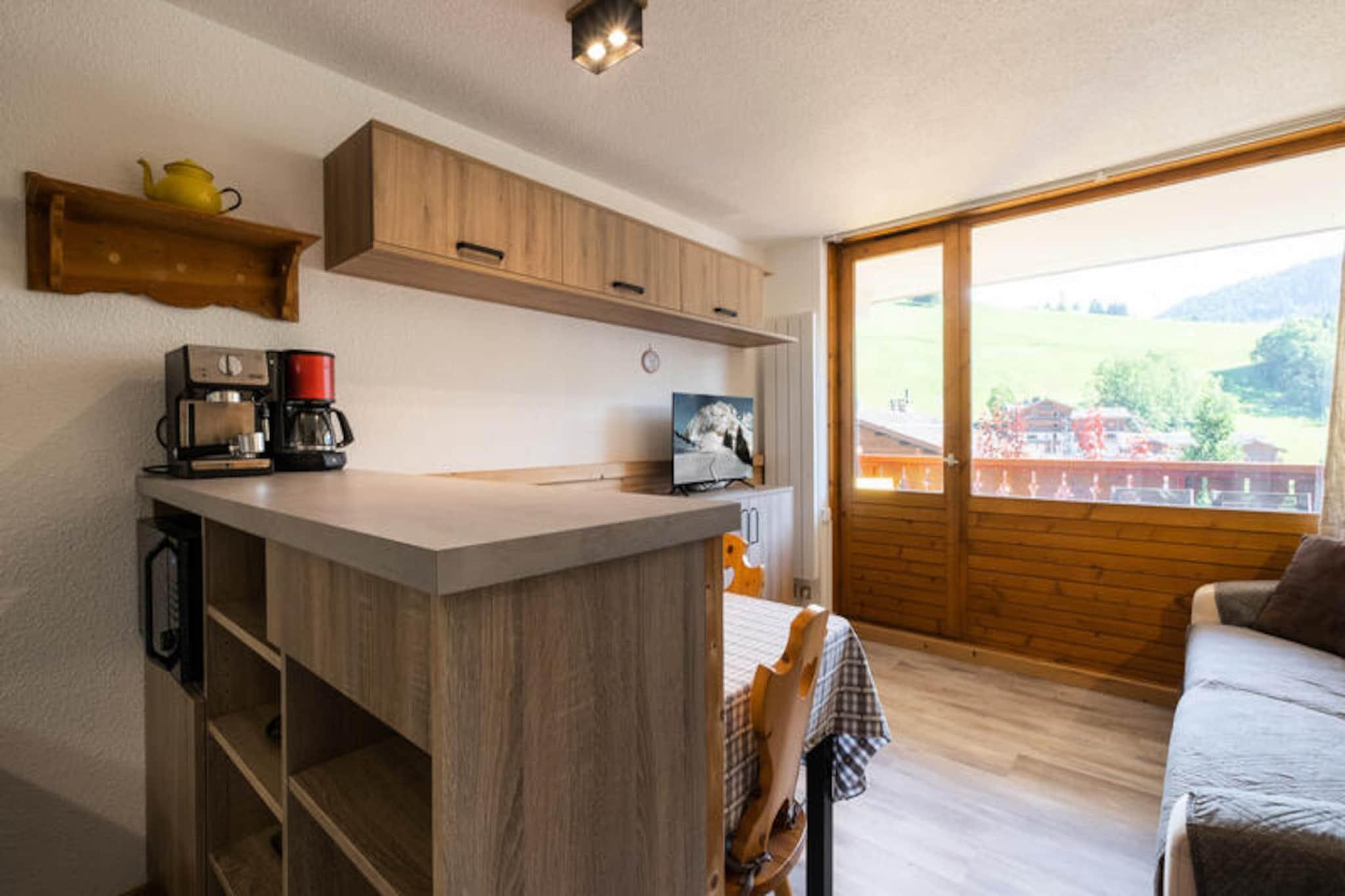Dette charmerende studie med et sovehjørne er ideelt for 2 til 4 rejsende og tilbyder et hyggeligt 21m² stort rum på første sal i en bolig beliggende øverst i landsbyen. Lejligheden har et sovehjørne med to køjesenge (for børn over 6 år), et badeværelse med badekar og et separat toilet. Tekøkkenet er veludstyret med køleskab, mikrobølgeovn, keramiske kogeplader og opvaskemaskine. I stuen er der en rapido-sovesofa, fladskærms-tv og en spiseplads med adgang til en sydvendt balkon, der byder på en fantastisk udsigt over bjergene og masser af solskin. Sengetøj, inklusive dynebetræk, lagner og pudebetræk, er til rådighed. Lejligheden er ikke-ryger, og kæledyr er ikke tilladt. Boligen har en fremragende beliggenhed, kun 250 meter fra Bossonnet Telemix, stoleliften og skiløjperne (baneafgang for skiskoler), hvilket gør den perfekt for skientusiaster. Det nærliggende busstoppested giver nem adgang til andre dele af landsbyen, med et stop direkte foran boligen om vinteren og 240 meter væk om sommeren. Boligen er også i gåafstand til lokale butikker, hvilket øger dens bekvemmelighed. Yderligere faciliteter inkluderer en privat garageplads (Garage A 15), et skiskab og elvarme med gulvvarme for komfort. Bygningen har elevator, og boligen er opført i 1989, bestående af 43 lejligheder. Ejendommen er ikke egnet til personer med nedsat mobilitet. Nærliggende transportmuligheder omfatter Annecy SNCF-togstation, 3 km væk, og La Clusaz-busstationen, som ligger 1,05 km fra boligen. Der kræves et refunderbart depositum på EURO500.