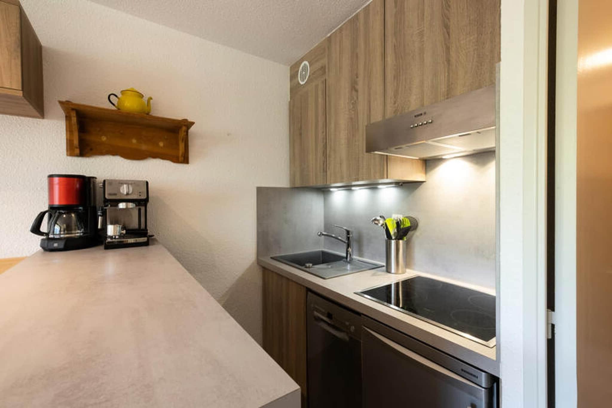 , Stue(dobbeltsovesofa, Fjernsyn, spisebord), Køkken(elkedel, brødrister, kaffemaskine, mikrobølgeovn, opvaskemaskine , køleskab, ), soveværelse(køjeseng), badeværelse(spisebord, håndvask), skiopbevaring, Parkering, balkon, varme, strygebræt, føntørrer, Pladegrill