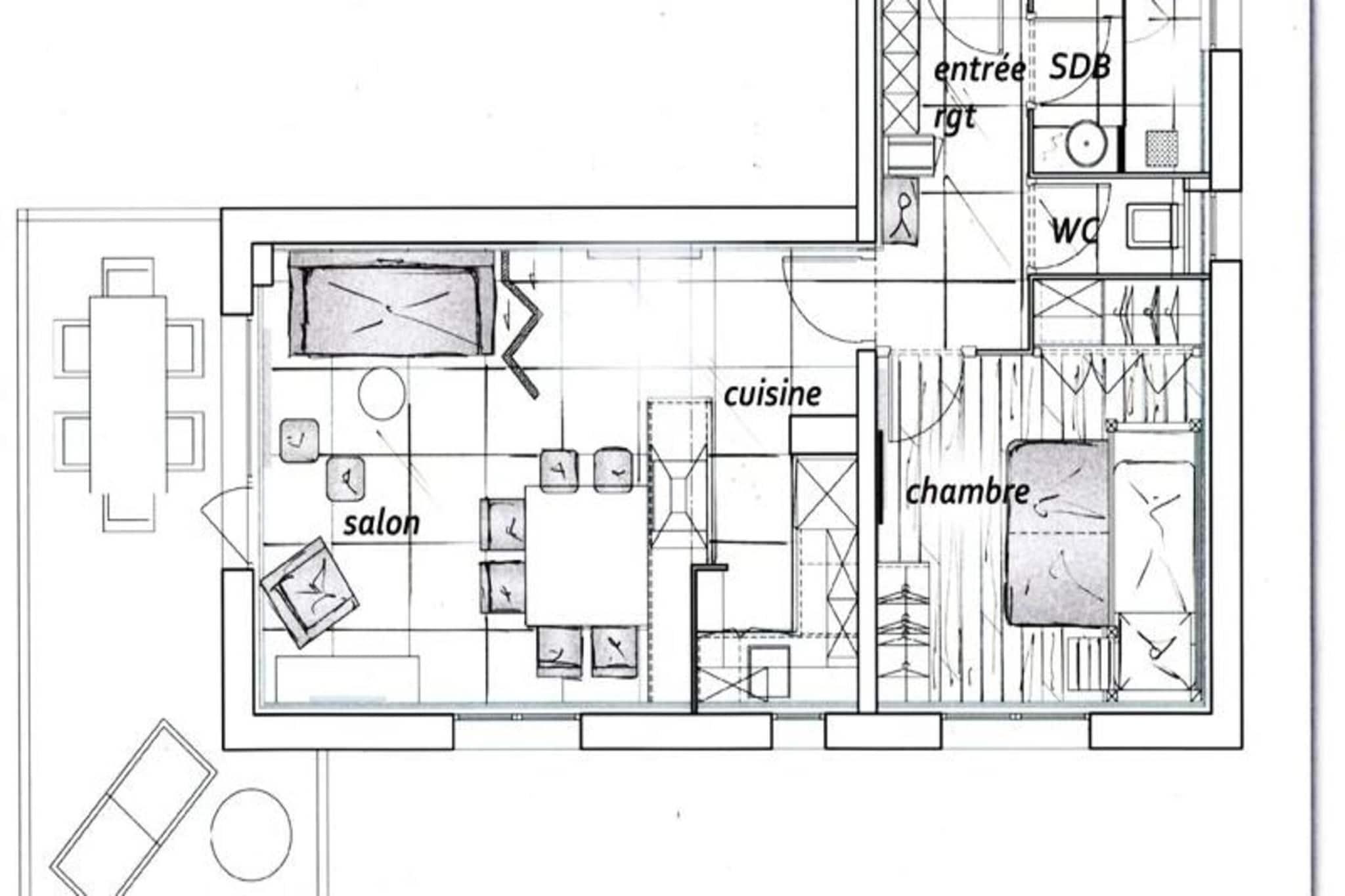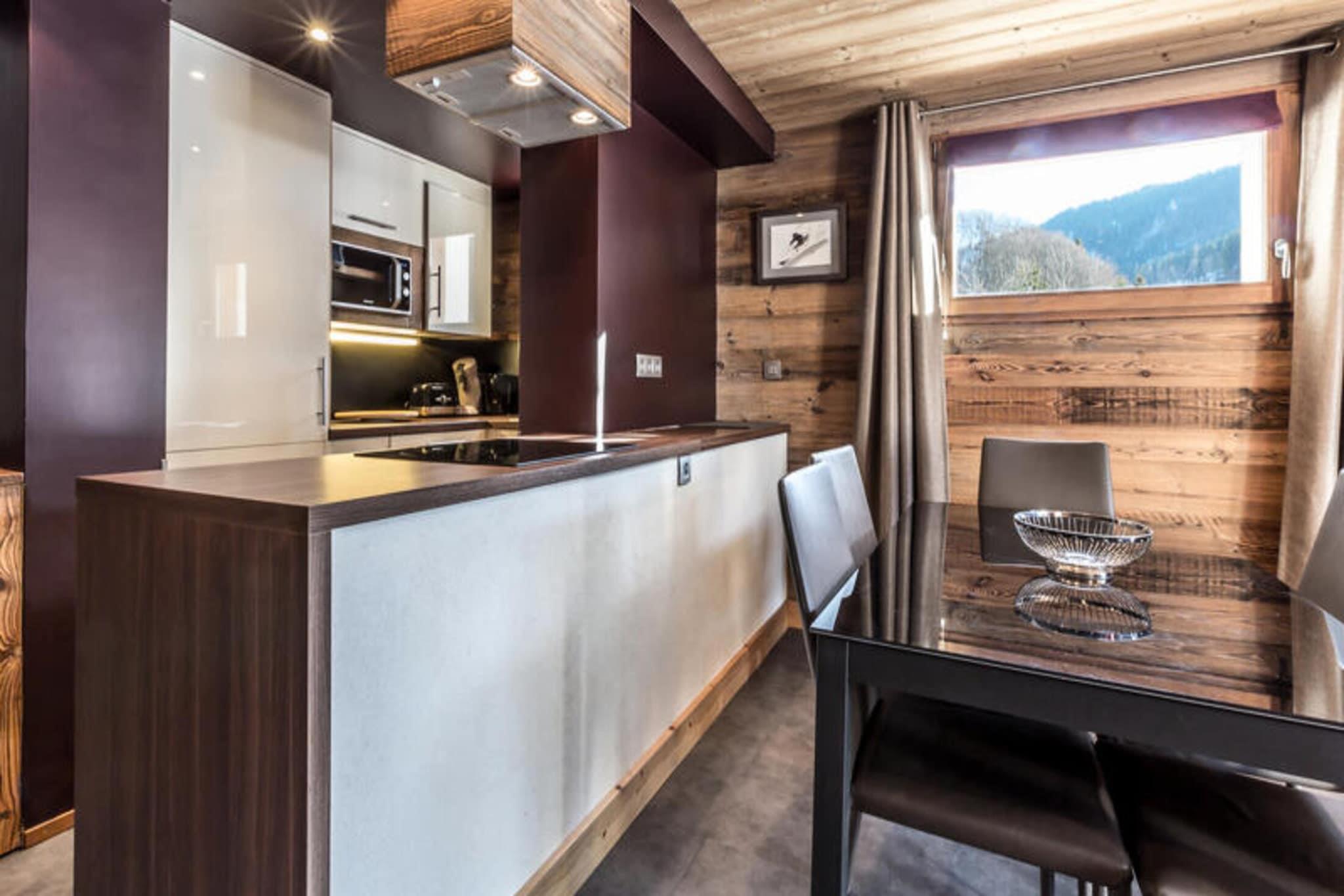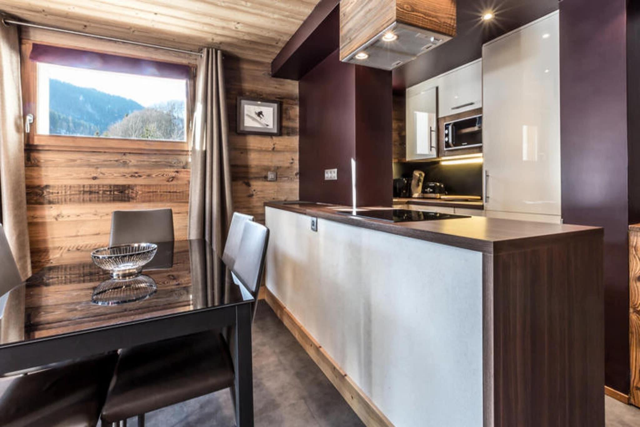 Denne smukt renoverede lejlighed på 42 m², beliggende i Aravis-dalen, tilbyder direkte adgang til Ruade-skibakken, hvilket gør den til et ideelt valg for vintersportsentusiaster. Lejligheden ligger 1,4 km fra landsbyen og kun 250 meter fra et shuttlestoppested og er en bekvem base for at udforske området. Gæsterne vil nyde yderligere faciliteter såsom gratis Wi-Fi, et skiskab og parkering ved boligen. Ejendommen er røgfri og ikke tilgængelig for bevægelseshæmmede. Beliggende kun 34 km fra Annecy og 1,75 km fra La Clusaz busstation, er boligen perfekt placeret for nem adgang til lokale attraktioner. Om vinteren kan du udforske de nærliggende skiløjper, mens du om sommeren kan nyde vandreture og udendørsaktiviteter i de naturskønne Aravis-bjerge. Det har et hyggeligt soveværelse med to enkeltsenge, en mezzaninseng og et fladskærms-tv. Den rummelige stue har spiseplads, dobbelt sovesofa og balkon med en fantastisk udsigt over de omkringliggende bjerge og grønne områder. Tekøkkenet er fuldt udstyret med moderne apparater, herunder køleskab, ovn, mikroovn, opvaskemaskine og Nespresso kaffemaskine. Lejligheden indeholder også et brusebad, separat toilet og en skistøvletørrer til op til fem par støvler.